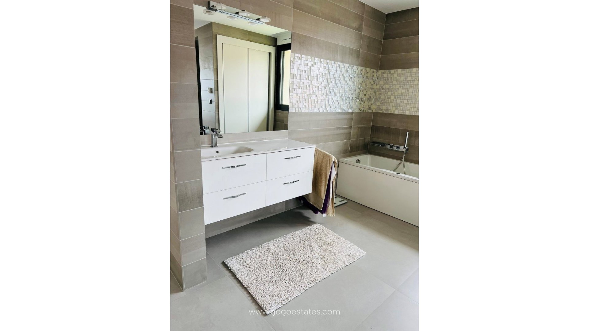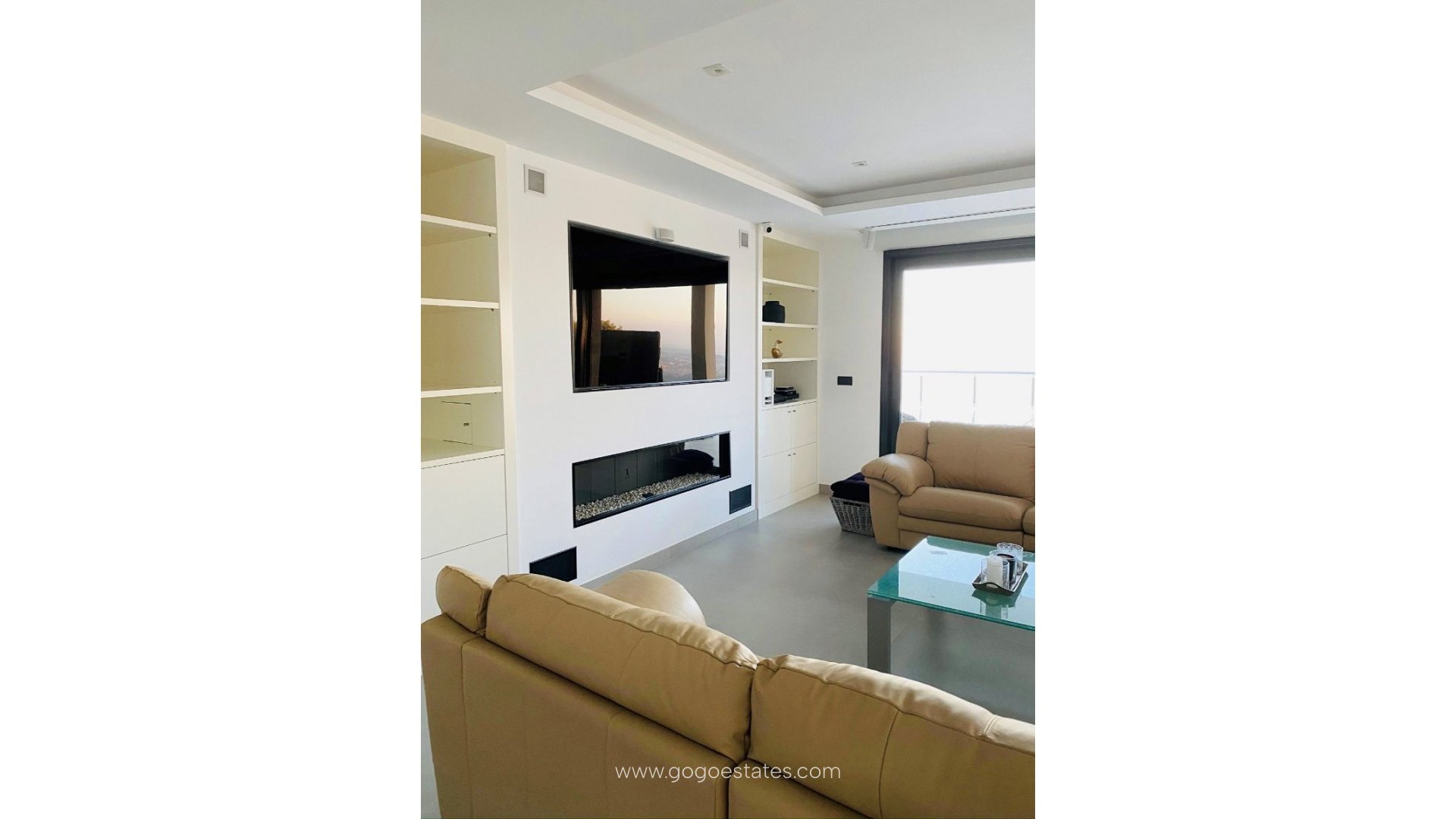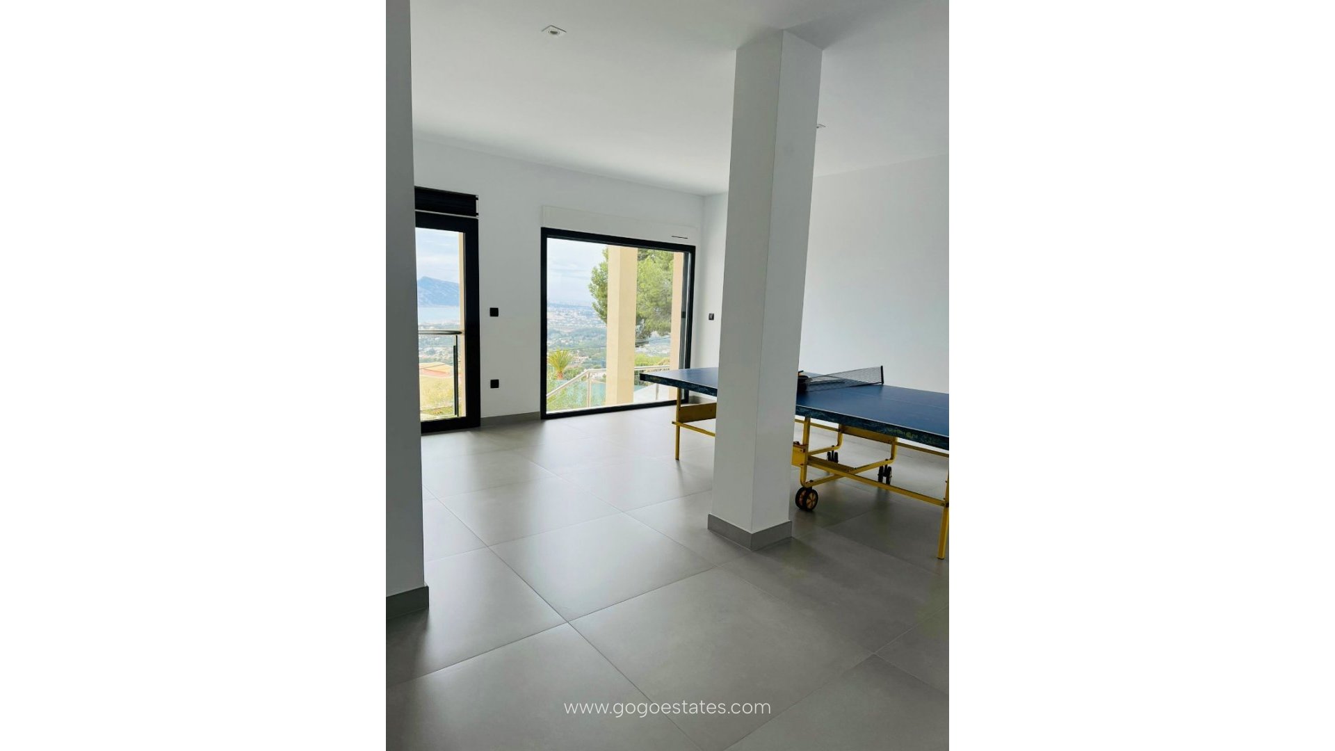 De villa is gebouwd op een perceel van 1680m2 en het pand bestaat uit 1120m2 waarvan 680m2 bruikbaar en verdeeld over twee verdiepingen. Op de eerste verdieping is er een zeer grote woon-eetkamer van 190m2 met een open keuken van 80m2 die een gevoel van grote ruimtelijkheid geeft. Er is ook een wasruimte van 16m2 en een toilet. Op deze verdieping bevindt zich ook de hoofdslaapkamer van 32m2 met een complete kleedkamer van 12m2 en een badkamer en suite van 22m2 met bad en douche. Deze slaapkamer heeft ook directe toegang tot het terras van 240m2 waar we een ruimte vinden voor de jacuzzi, het grote buitenzwembad van 10mx4m met prachtig uitzicht en de buitenkeuken 16m2. Op de begane grond vinden we een woonkamer van 30m2, 4 slaapkamers en 2 badkamers, een speelkamer met tafeltennis, bioscoop, wijnkelder, koelruimte en een zeer grote garage voor 5 grote auto's. Buiten hebben we een kunstgrasveld, fruitbomen en 4 parkeerplaatsen naast de ingang van het huis. Deze villa is gelegen in een exclusieve omgeving en op zeer korte afstand van de stad Altea la Vella en de golfbaan Don cayo golfclub. Op 10 minuten rijden van het strand en de snelweg.