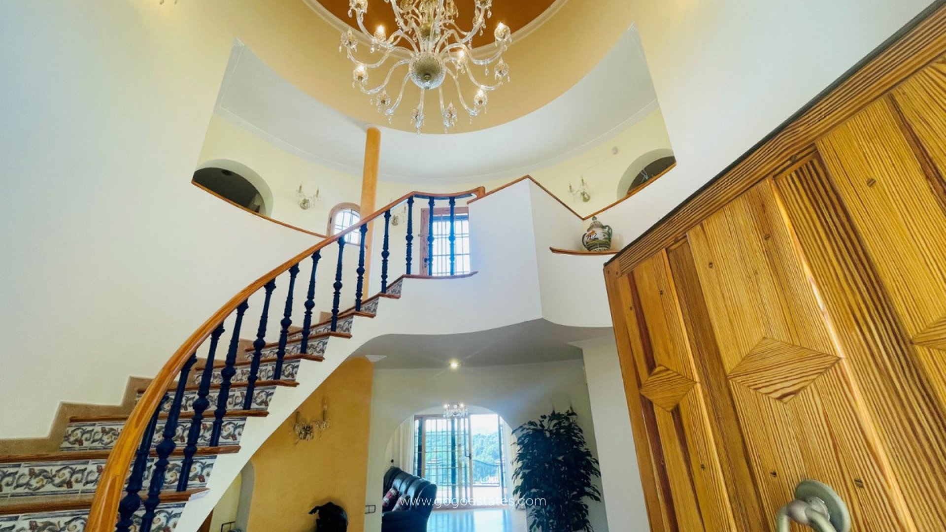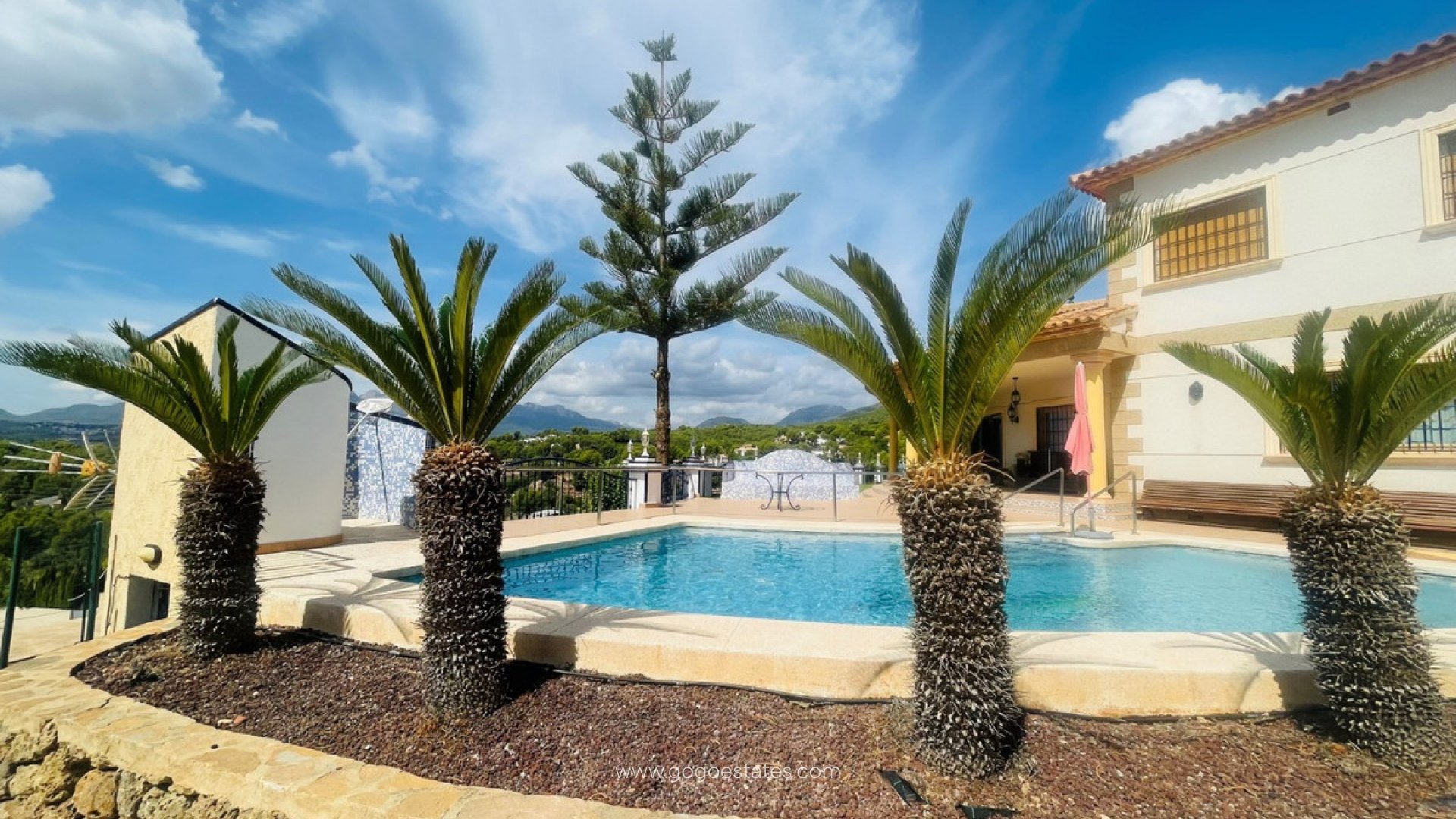 Deze juweel van een villa, met zijn indrukwekkende koepel op maat gebouwd door de eigenaar, op twee indrukwekkende percelen van 3534m2. Het pand heeft een woonoppervlakte van 541m2, een garage van 140m2 met capaciteit voor 4 voertuigen. De structuur boven de garage is voorbereid om te beginnen met de bouw van een appartement van 140m2, de woonoppervlakte van de hoofdwoning is 490m2 die als volgt zijn verdeeld. De verdeling is verdeeld over twee verdiepingen: op de bovenste verdieping zijn er 4 slaapkamers en 3 badkamers, een grote kleedkamer, een kantoorruimte, een mooi en ruim terras met een spectaculair uitzicht. Op de begane grond is er een ruime keuken, eetkamer, grote woonkamer, 2 slaapkamers en 2 badkamers, een speelruimte die gebruikt kan worden als fitnessruimte. Op dezelfde verdieping is er een verwarmd zwembad uitgerust met hydromassage jets, een douche met een trap gebouwd met traditionele handgemaakte tegels. Vanuit dezelfde woonkamer is er toegang tot het grote terras, dat een zwembad, fonteinen en een prachtige tuin heeft. In dit gedeelte bevinden zich ook de twee gesloten garages en de barbecueplaats met eigen keuken. In het onderste gedeelte bevindt zich nog een constructie die door de eigenaar is ontworpen als gastenappartement. De gebruikte materialen zijn van de hoogste kwaliteit en de structuur met roosters biedt een onvergelijkbare veiligheid. De villa ligt in de Sierra de Altea, op 1,5 km van Altea la Vella met zijn golfclub Don Cayo, op 3,5 km van de stad Altea en op 70 km van de luchthaven van Alicante.