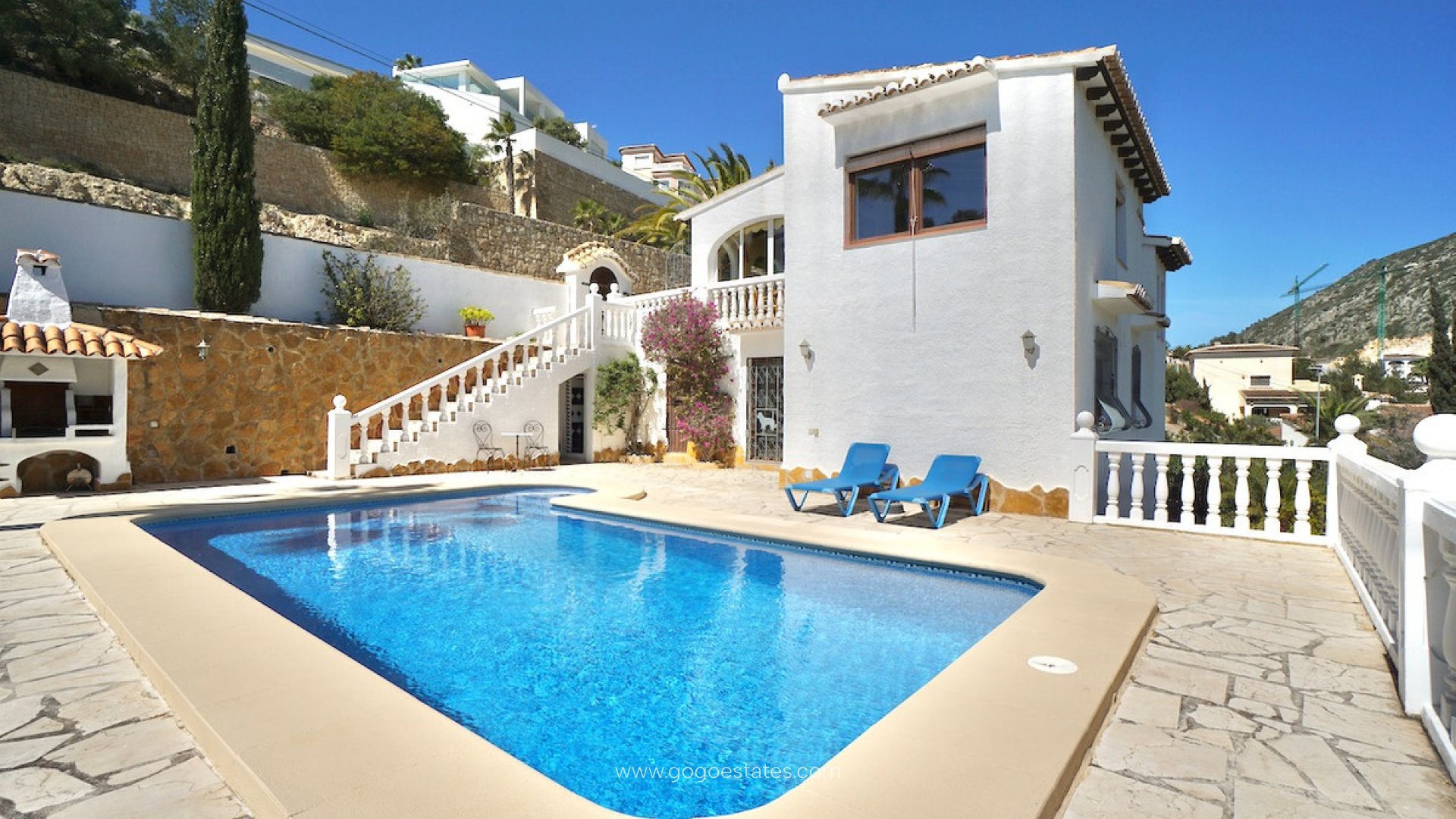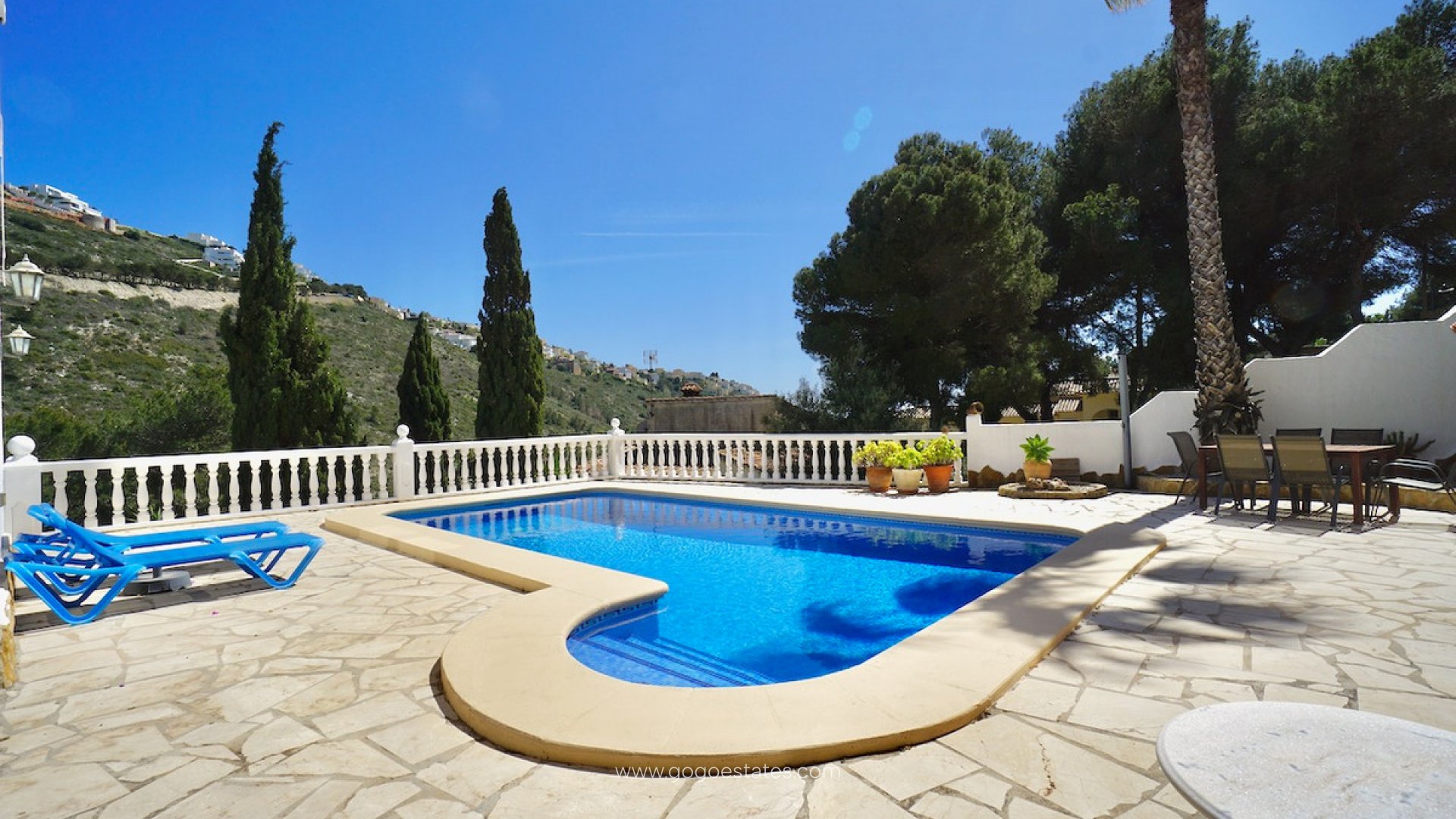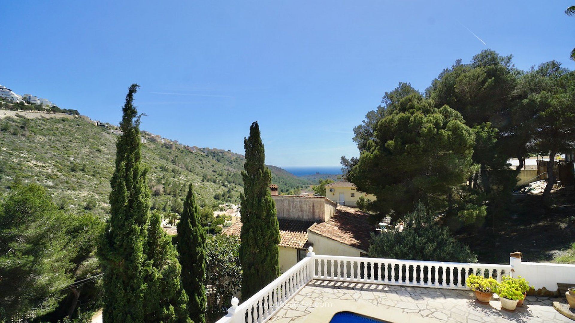 Deze sfeervolle villa met vier slaapkamers ligt in een rustige wijk van Valle del Portet en combineert traditionele details met modern comfort. Op slechts een paar minuten rijden van winkels en voorzieningen, en slechts 9 minuten van de stranden en het gezellige centrum van Moraira, is dit een ideale woning voor permanent verblijf of als vakantiehuis. De woning ligt op een verhoogd perceel op het zuiden, met prachtig vrij uitzicht over de vallei en zelfs een glimp van de zee. Binnen vind je een lichte, open woonruimte met houten balken, een gezellige open haard en een moderne keuken. Alle slaapkamers bevinden zich op de benedenverdieping, inclusief een ruime master met een kleedkamer of thuiskantoor. Buiten is het heerlijk vertoeven: een privézwembad van 8 x 4 m, een zonnig terras, buitendouche en ingebouwde barbecue bieden alles voor ontspanning en gezelligheid. Of je nu je dag begint met een koffie in de zon of afsluit met een diner onder de sterren, hier geniet je volop van het mediterrane leven. Belangrijkste kenmerken: Verhoogd en zuidgericht perceel met uitzicht op de vallei en zeePrivézwembad van 8 x 4 m in Romeinse stijl en ruim zonneterrasVier slaapkamers, inclusief master met kleedkamer/kantoorAuthentieke details zoals houten balken en open haardAirconditioning, centrale verwarming, isolatie en dubbele beglazing4 kW zonnepanelen voor extra energiezuinigheidParkeerplaats op eigen terrein en ingebouwde barbecueRustige ligging, dichtbij winkels, wandelroutes en de stranden van Moraira Neem vandaag nog contact met ons op om een bezichtiging te plannen!