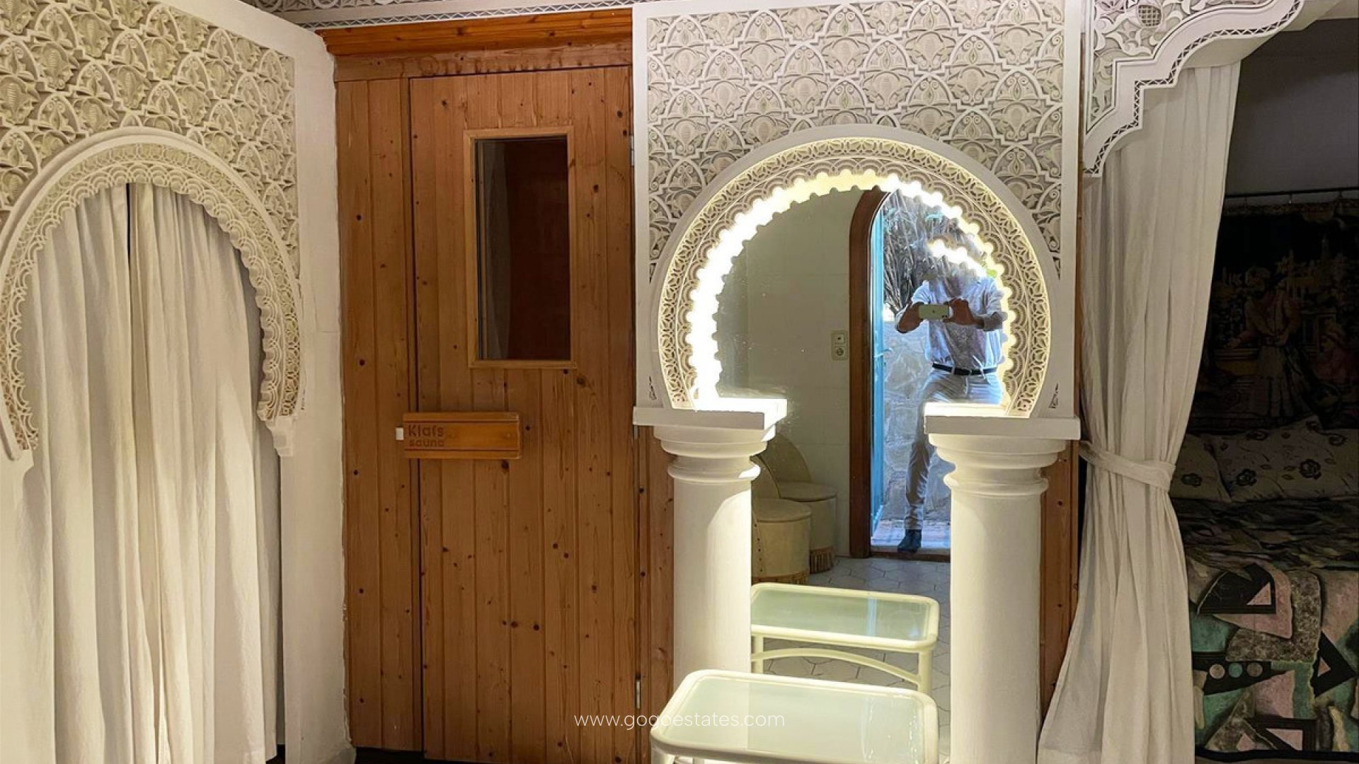 Large villa for sale in Benissa, Costa Blanca, with a private pool, stunning sea views, just 450 m from the beach. This 400 m2 villa is located on a large 1,850 m2 plot, facing southeast, just 450 m from the beautiful coves of Benissa, 600 m from the Aldi supermarket, 5.5 km from Calpe, 8 km from Moraira, and 76 km from Alicante airport. The plot, which boasts sea views from several points, consists of a private pool, a rooftop terrace with a jacuzzi, several terrace and garden areas spread over several levels, a beautiful freshwater lake, a bar, a summer kitchen, a second summer kitchen with a paella pan and barbecue, a banquet area, a covered marquee, a sauna with a shower and relaxation area, parking for 3 vehicles, and a garage for one vehicle. The villa, with stunning sea views, is ideal for someone looking to build a B&B, as it consists of several kitchens, several living rooms, 8 bedrooms, 4 bathrooms, toilets, and wonderful terraces and balconies. Extras: Sauna Jacuzzi Lake Fireplace Bar Banquet Area Call us for a viewing or more information. We're working to help you find the home of your dreams. We'll show you this property if you're interested, or we'll search for you until we find what you're looking for. Afterward, we'll take care of all the necessary paperwork until the keys are delivered![IW]