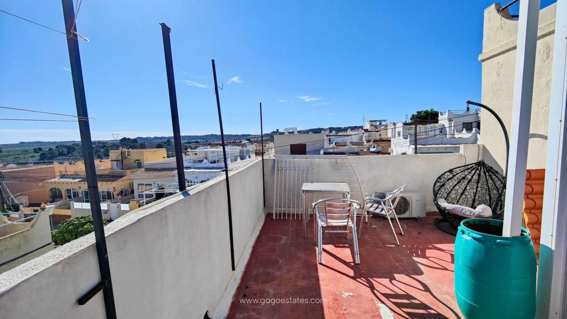 Zuidgerichte half-vrijstaande woning met privé zwembad te koop in San Miguel de Salinas. De woning heeft een ruime woonkamer met een eethoek, een half-open ingerichte keuken, 4 slaapkamers, 2 badkamers, een handige wasruimte en een dakterras. Binnen het grondstuk van 88m2 vinden we een privé zwembad, een barbecueplek en toegang tot een grote onderbouw die momenteel wordt gebruikt als opslagruimte. Deze woning ligt in een rustige buurt, op korte afstand van scholen, supermarkten en het stadscentrum. In de buurt ligt het stuwmeer "La Pedrera" omgeven door een prachtig landschap met citrus- en amandelboomgaarden en het nationale park Sierra Escalona. Hier kan u kilometers wandelen en fietsen. Het dorp beschikt over allerlei voorzieningen en recreatiemogelijkheden zoals een voetbal-en atletiekstadion, tennisbanen, padelbanen, basketbalvelden, petanquebanen etc.. Het dorp heeft ook veel restaurants en barretjes. De wekelijks openluchtmarkt op woensdag is veelzijdig. San Miguel de Salinas beschikt ook over een goede busverbinding naar allerlei bestemmingen. De luchthaven van zowel Corvera en Alicante liggen op ongeveer 45 minuten. Op 10-15 minuten (10km) rijden vindt u de prachtige stranden van Guardamar, Torrevieja, La Mata, Campoamor, Punta Prima en La Zenia. Voor een dagje shoppen moet u in het gerenomeerde shopping center La Zenia Boulevard zijn. Torrevieja is de dichtstbijzijnde kustplaats met een haven en een gezellige boulevard met leuke winkeltjes en terrasjes.