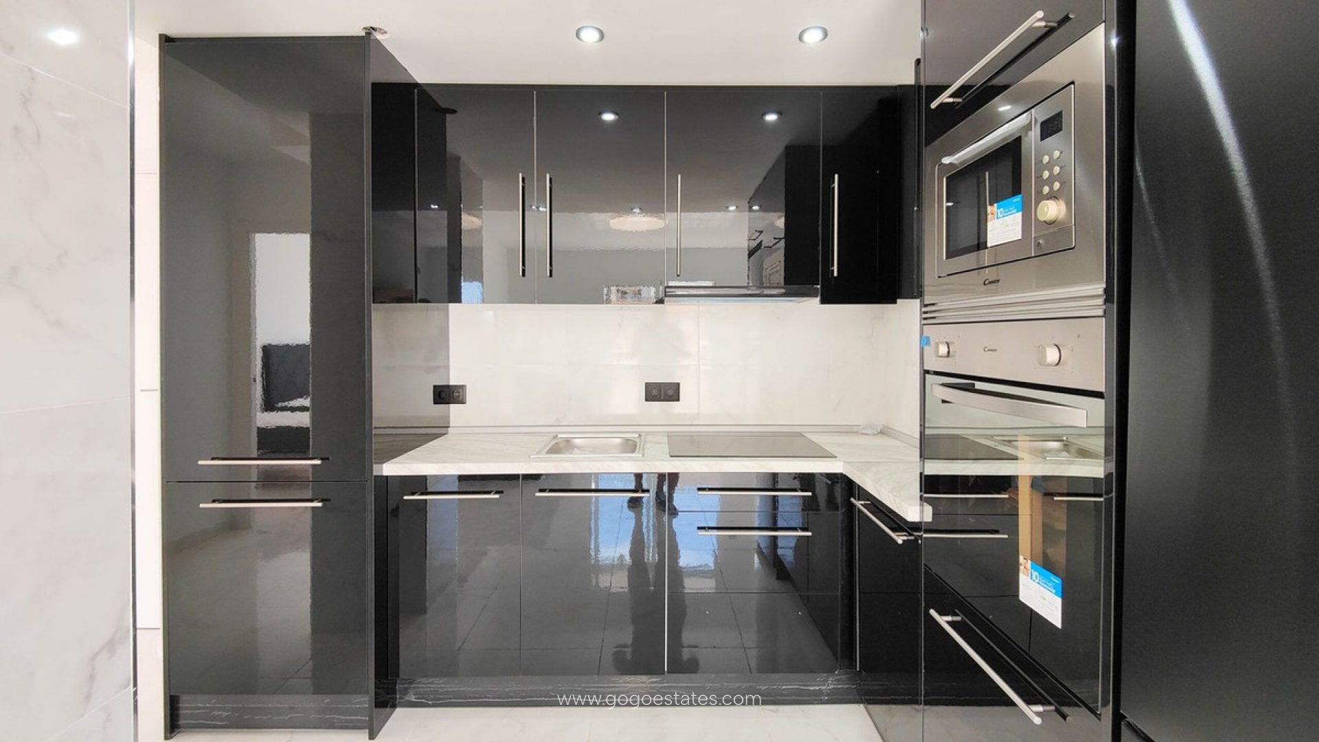 Zuidgericht gerenoveerd appartement te koop met gemeenschappelijk zwembad op 600m van het strand in Punta Prima. Dit volledig gerenoveerd appartement ligt op de 4de verdieping in een gebouw met lift. Het appartement heeft een inkomhal, 2 slaapkamers met inbouwkasten en 2 badkamers, een heldere ruime woonkamer met een geïntegreerde moderne keuken. De woonkamer en de 2 slaapkamers hebben toegang tot het zuid gericht terras met uitzicht op het gemeenschappelijk zwembad. Wordt verkocht zoals op de foto's is te zien. OPTIONEEL is er een afgesloten garagebox in de ondergrondse garage beschikbaar indien gewenst. Het complex beschikt over een gemeenschappelijk zwembad en gemeenschappelijke parkeerplaatsen. Heel dichtbij ligt er een commercieel koopcenter nl. "Punta Marina" met een CONSUM supermarkt, restaurantjes en winkeltjes. Het strand ligt op ongeveer 600 meter, kinderspeeltuin en een restaurant met een waanzinnig uitzicht over de zee en de stad Torrevieja. Bruisende vakantiebuurt met tal van ontspanningsmogelijkheden en recreatiefaciliteiten.