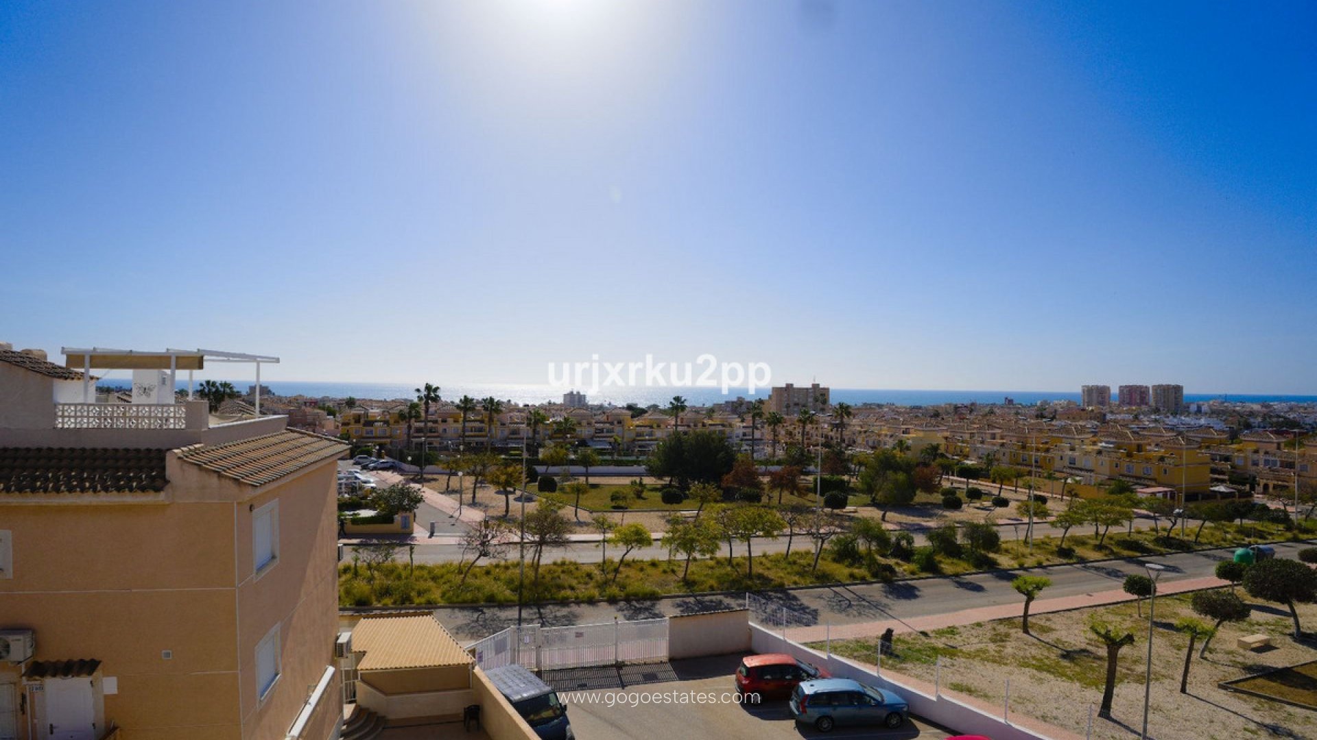 Kijk eens naar dit prachtige huis waar we net in zijn getrokken! Het is op het zuiden gelegen en ligt op een kleine heuvel net buiten het centrum van Torrevieja. Het huis heeft 3 slaapkamers en 1,5 badkamer, 3 ruime balkons en een groot, privé dakterras. Er is een fantastisch uitzicht op de Middellandse Zee, La Manga, het zoutmeer en de stad - inclusief zonsopgang en zonsondergang. Het huis is gelegen in een goed onderhouden, afgesloten urbanisatie met veel Scandinaviërs. De urbanisatie heeft een groot, mooi zwembad en parkeergelegenheid voor de eigenaren binnen het afgesloten terrein. Het huis heeft al sinds de nieuwbouw dezelfde Noorse eigenaren en is goed onderhouden. Het wordt volledig gemeubileerd en uitgerust verkocht, dus u hoeft alleen uw koffer mee te nemen. Als u wilt upgraden naar een modernere stijl, brengen we u graag in contact met bekwame vakmensen. U woont hier centraal met goede busverbindingen in de omgeving, maar ook op comfortabele loopafstand van zowel het strand, de boulevard, het stadscentrum, diverse supermarkten, restaurants, cafés, parken, apotheken, enz. enz. Op korte rijafstand vinden we ook diverse gerenommeerde golfbanen zoals La Marquesa, La Finca, Las Ramblas, Villamartin enz. De luchthaven van Alicante ligt op ongeveer 40 minuten rijden met de auto. Torrevieja is een populair gebied voor wie wil genieten van het fantastische klimaat aan de Costa Blanca. Hier vindt u alles van geweldige sportfaciliteiten, winkels, de populaire vrijdagmarkt die elke week wordt gehouden en vele leuke evenementen het hele jaar door. Neem contact met ons op om een bezichtiging te regelen! We organiseren ook bezichtigingsreizen van 3-5 dagen om u huizen te laten zien die passen bij uw wensen en budget. Als u niet in de gelegenheid bent om naar een bezichtiging te komen, nemen we graag digitaal contact met u op.