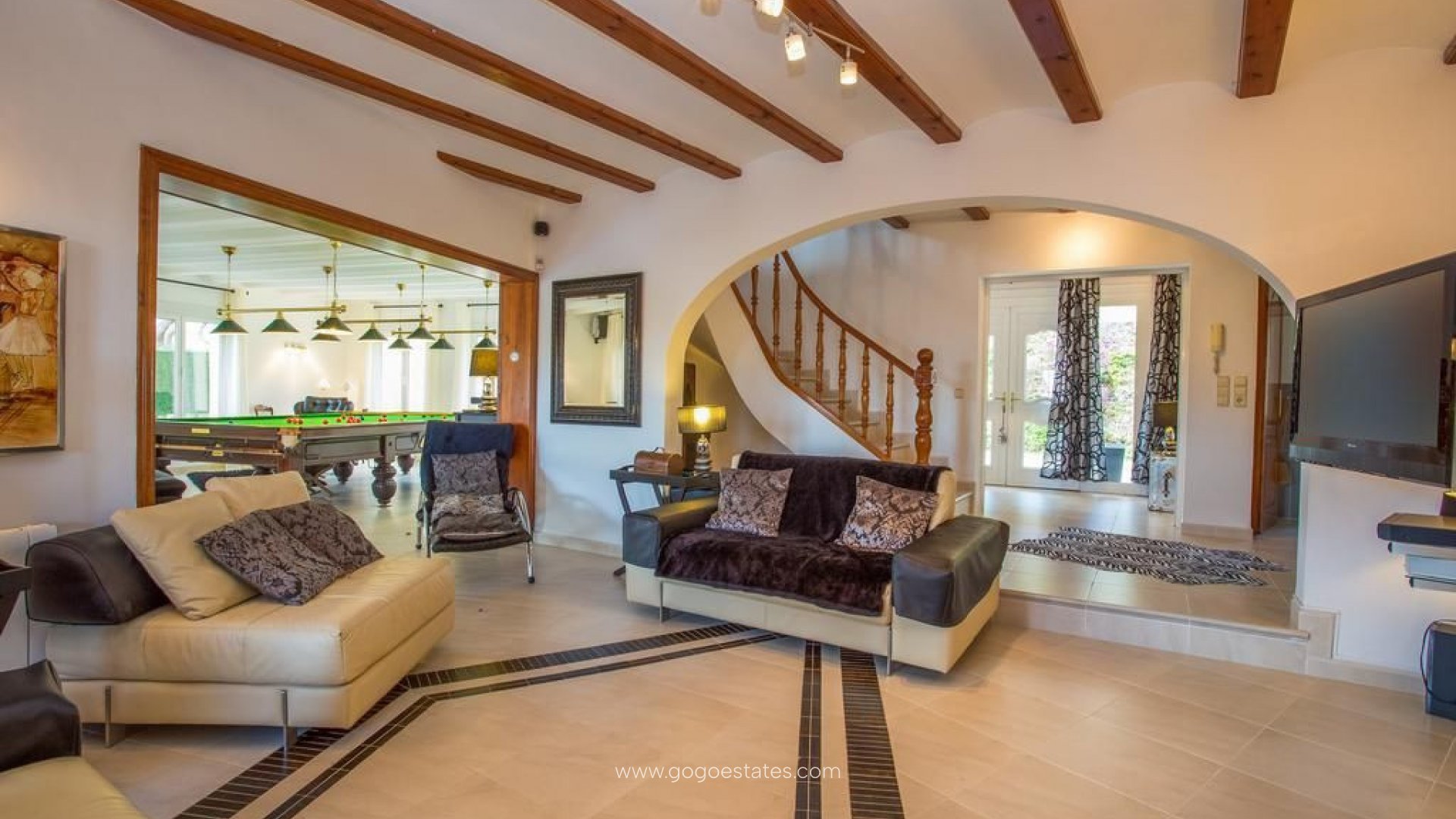 Ontdek deze prachtige mediterrane villa, ideaal voor gezinnen die op zoek zijn naar een luxe woning in een rustige omgeving maar toch dicht bij alle voorzieningen. Met zijn ruime, volledig omheinde en mediterraan ingerichte perceel vind je verschillende gebieden om te ontspannen, zoals de Afrikaanse hut of het zwembadgedeelte omgeven door een groot terras.~~Het huis, verdeeld over twee verdiepingen, heeft lichte interieurs dankzij de grote ramen. Je vindt open ruimtes zonder onnodige gangen waar je kunt genieten van de eetkamer met een open haard of zelfs biljart kunt spelen terwijl je opwarmt bij een andere open haard.~~Op de bovenste verdieping bevinden zich vier slaapkamers, elk uitgerust met goed uitgeruste volledige badkamers, inclusief een douche. Drie slaapkamers hebben directe toegang tot het spectaculaire panoramische uitzicht over Calpe vanaf hun respectievelijke privéterrassen, gericht op het zuiden, wat zorgt voor een onvergetelijke vakantie.