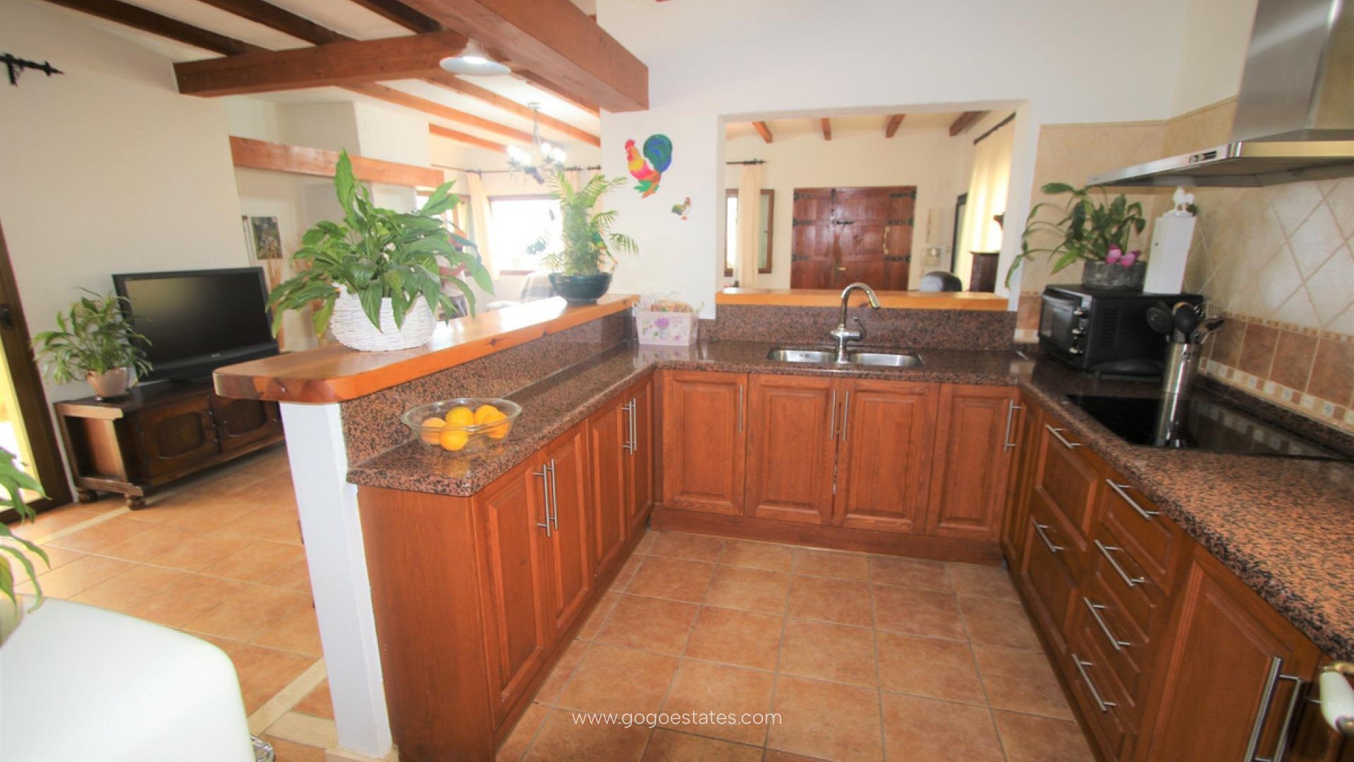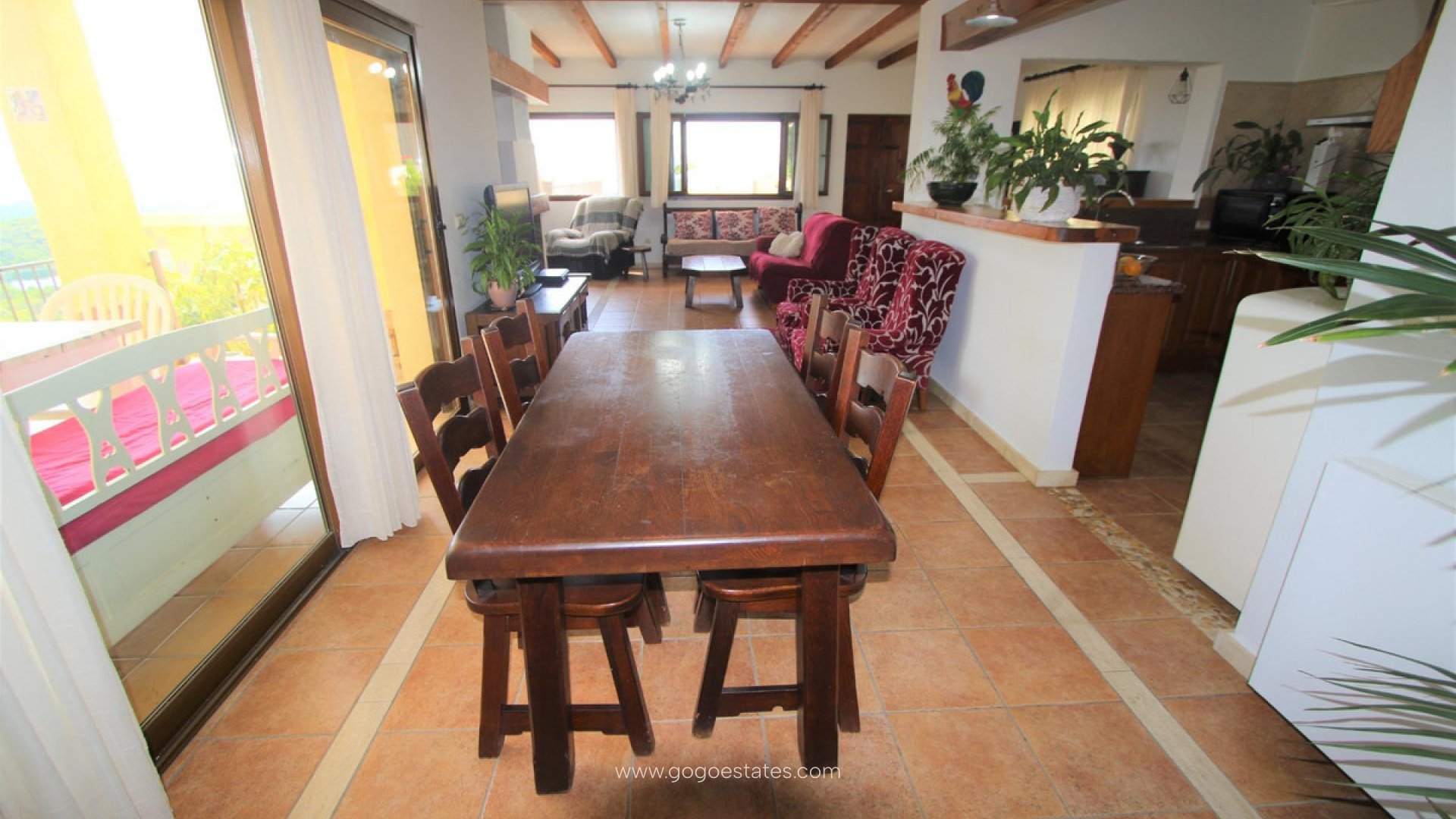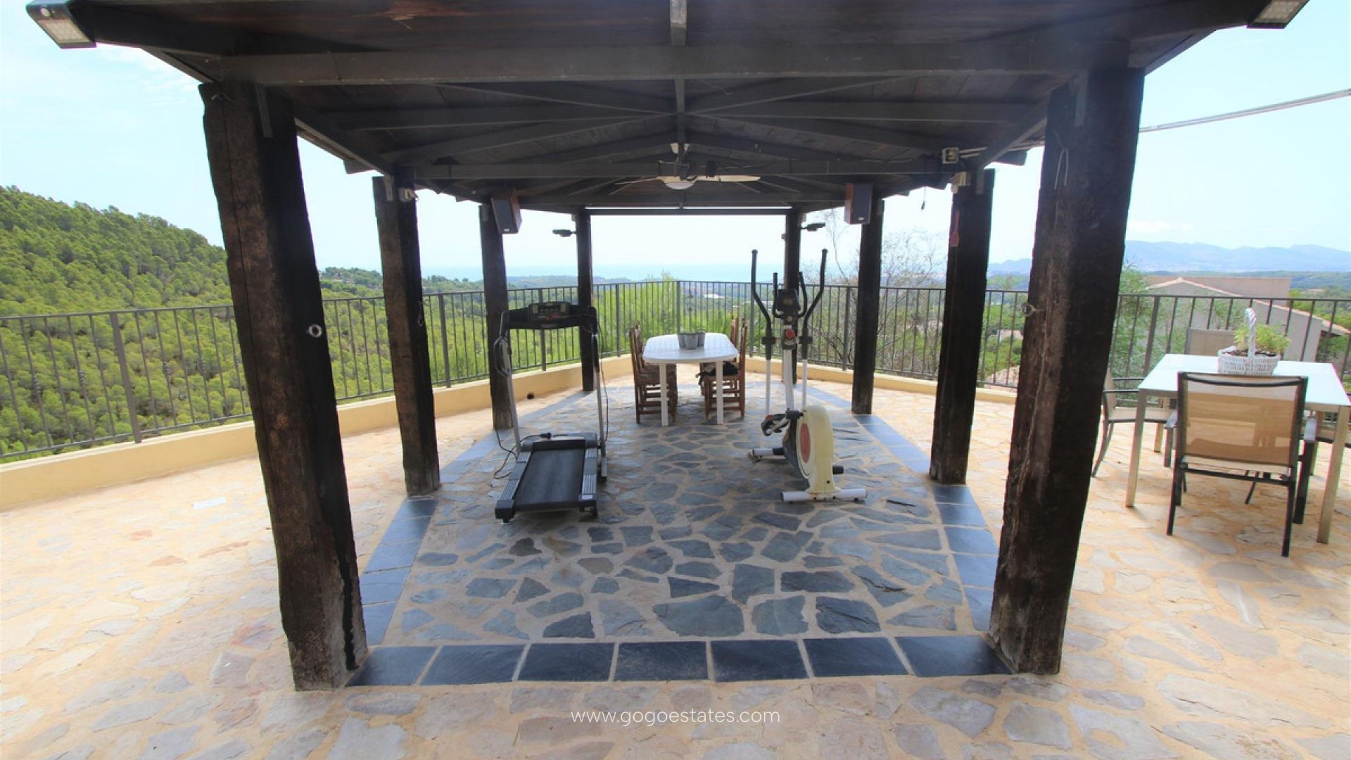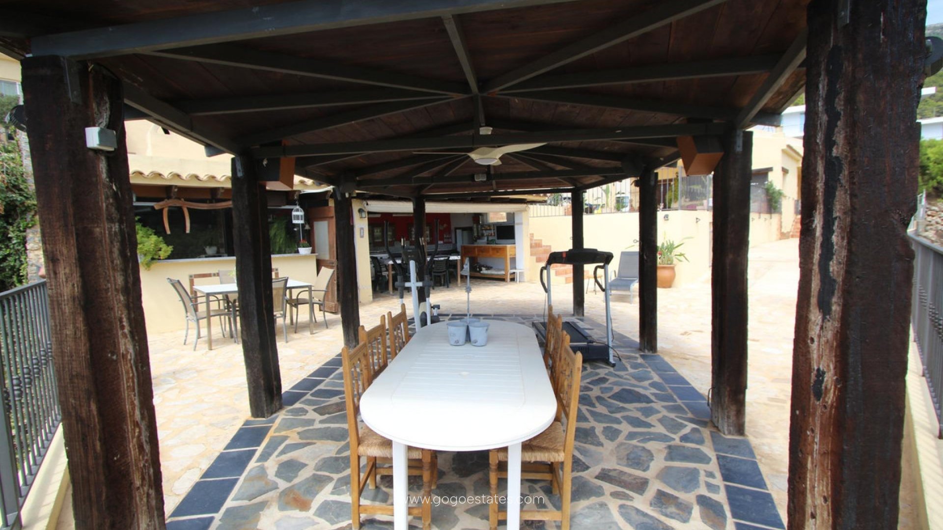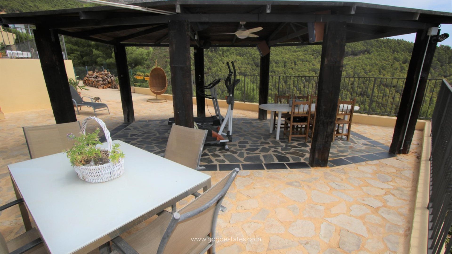 Villa met gastenverblijf, prive zwembad, overdekte buitenkeuken, verschillende terrassen, grote garage en veel parkeerruimte. De hoofdwoning heeft een ruime woon /eetkamer met open keuken, een wasruimte/berging, 2 slaapkamers en 1 badkamer. Er is verwarming met gasradiatoren, open haard, dubbel beveiligd glas, rolluiken en muggenramen. Het gastenverblijf heeft 2 slaapkamers en 1 badkamer. De grote overdekte ingerichte buitenkeuken heeft een BBQ, een gasfornuis en een pizza oven. Vanaf al de terrassen heeft men zicht op Altea, de Middelandse Zee en de bergen.
