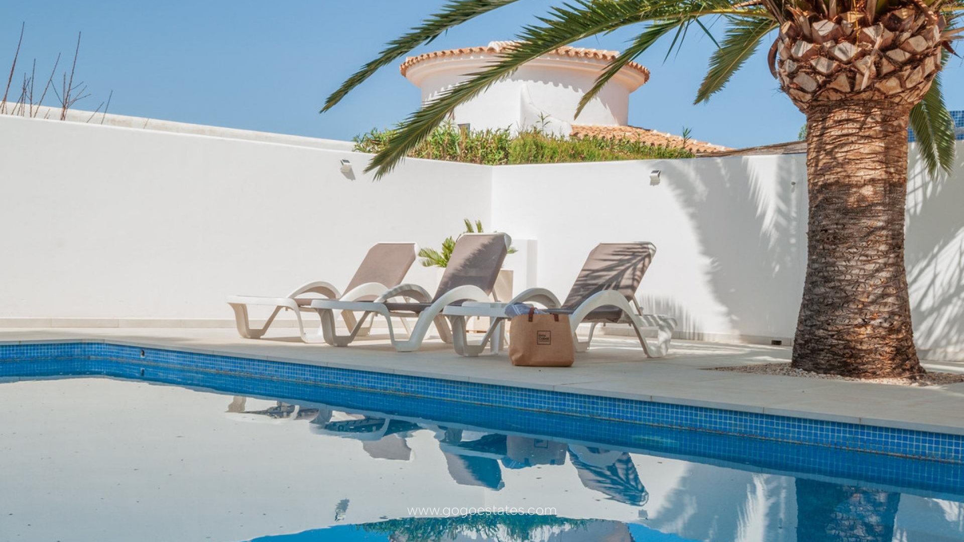 Deze moderne gerenoveerde villa ligt midden in het prachtige gebied van Benissa-Moraira.~De villa biedt drie ruime appartementen, elk met twee slaapkamers en een eigen terras. Deze moderne leefruimtes zijn volledig uitgerust met keukens, gezellige woonkamers met open haard en stijlvolle badkamers.~~Alle appartementen zijn voorzien van airconditioning en veilig parkeren met een handige carport. Geniet van de buitenlucht met twee zwembaden en een ingebouwde barbecue, perfect voor het ontvangen van gasten.~~Omringd door een prachtig aangelegde tuin, gevuld met palmbomen, citroenbomen en diverse planten, biedt deze charmante woning een sereen toevluchtsoord voor potentiële kopers.