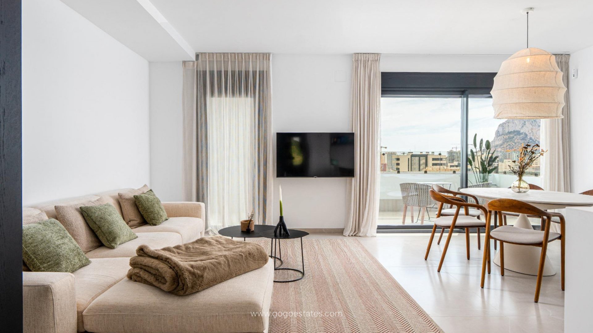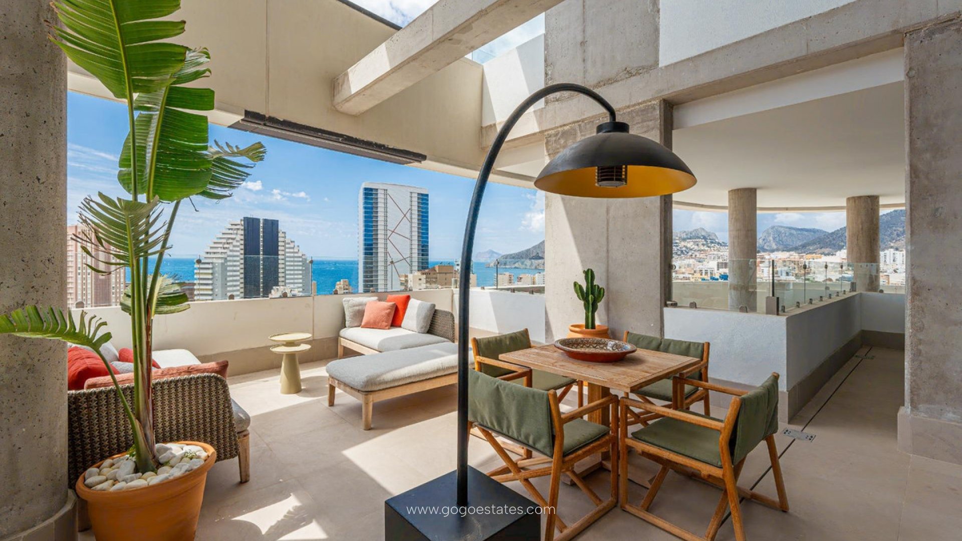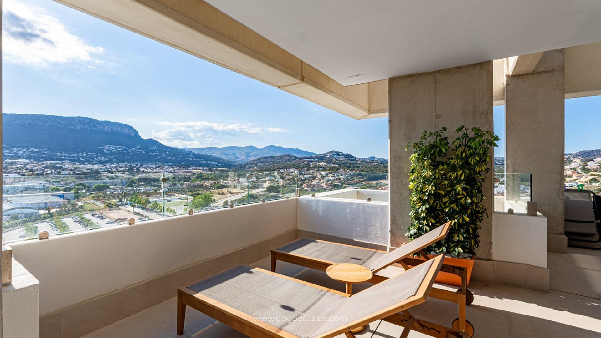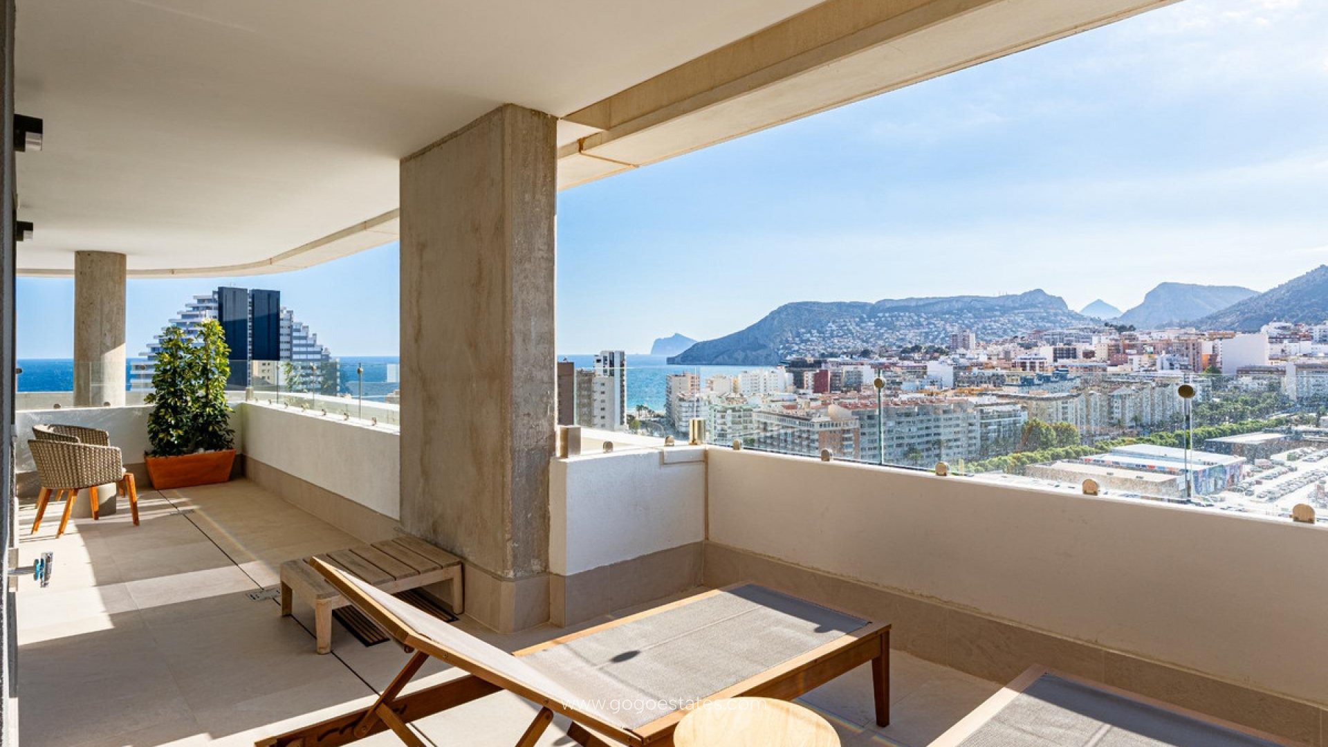 Uniek appartement met 360° uitzicht nabij Arenal-strand in Calpe In een uitzonderlijke locatie, op slechts 500 meter van het Arenal-strand in Calpe, vind je dit exclusieve appartement in het prestigieuze Saeta-project, een kleinschalige residentie met slechts 25 appartementen. Privéverdieping met genereuze leefruimte~Dit appartement bevindt zich op de 14e verdieping en geniet van volledige privacy als het enige appartement op deze verdieping. De woning is getransformeerd van drie naar twee slaapkamers, wat resulteert in een extra ruime woonkamer met een open keuken en woonkamer die naadloos aansluiten op drie zonovergoten terrassen van elk meer dan 30 m². Dankzij de oost-, zuid- en westoriëntatie geniet je van panoramisch uitzicht en zon van 's ochtends tot zonsondergang. Beide slaapkamers hebben hun eigen badkamers en directe toegang tot de terrassen, waarbij het westelijk georiënteerde terras een buitendouche en ruimte voor een jacuzzi heeft. Luxe afwerking en instapklaar~Het appartement is afgewerkt met materialen van hoge kwaliteit, zoals een inbouwkeuken met Bosch-apparaten, badkamers met vloerverwarming en ramen uitgerust met elektrische rolluiken. De smaakvolle inrichting maakt deze woning helemaal instapklaar, inclusief een geldige verhuurvergunning. Een ondergrondse parkeerplaats en berging zijn inbegrepen, met de optie om een tweede parkeerplaats aan te schaffen. Uitstekende locatie met resortvoorzieningen~Naast de unieke locatie nabij de zee en voorzieningen, beschikt de residentie over uitgebreide gemeenschappelijke faciliteiten zoals een 22-meter zwembad, kinderzwembad, speeltuin, paddlebaan en fitnessruimte. Een unieke kans om te wonen of te investeren in een stijlvol appartement op een toplocatie in Calpe.