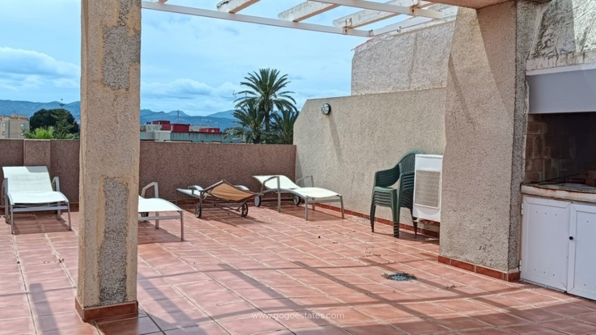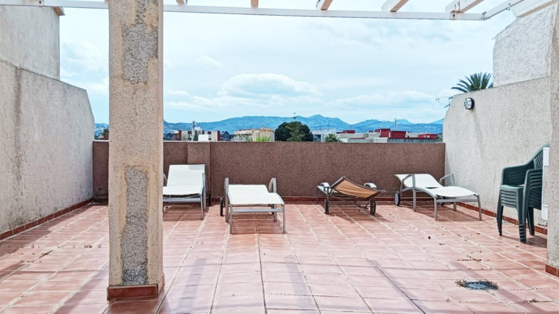Mooi penthouse op een paar meter van de zee. 5 km van Denia. Gelegen in een zeer goed onderhouden urbanisatie vinden we dit prachtige penthouse met uitzicht op zee en een paar meter lopen naar de zee. Een grote woonkamer met grote ramen opent de deuren naar een comfortabel balkon van 17 meter met uitzicht op de zee en de tuinen van de gemeenschappelijke ruimte van waaruit we kunnen genieten van een comfortabele ruimte voor tafel en stoelen. In de woonkamer en ingedeeld met een Amerikaanse bar vinden we de keuken met veel bergruimte, Van alle gemakken voorzien. Drie slaapkamers met inbouwkasten en twee complete badkamers completeren het interieur van dit penthouse. Buiten en via een trap bereiken we het dakterras met 60 meter groot open terras, waar u kunt genieten van de mediterrane nachten voor een grote barbecue. De residentie geniet van prachtige zwembaden, paddle-tennisbanen, basketbalvelden en prachtige goed onderhouden tuinen. Inbegrepen in de verkoopprijs vinden we een parkeerplaats met garagedeur en een berging. Aarzel niet om ons om een afspraak te vragen!