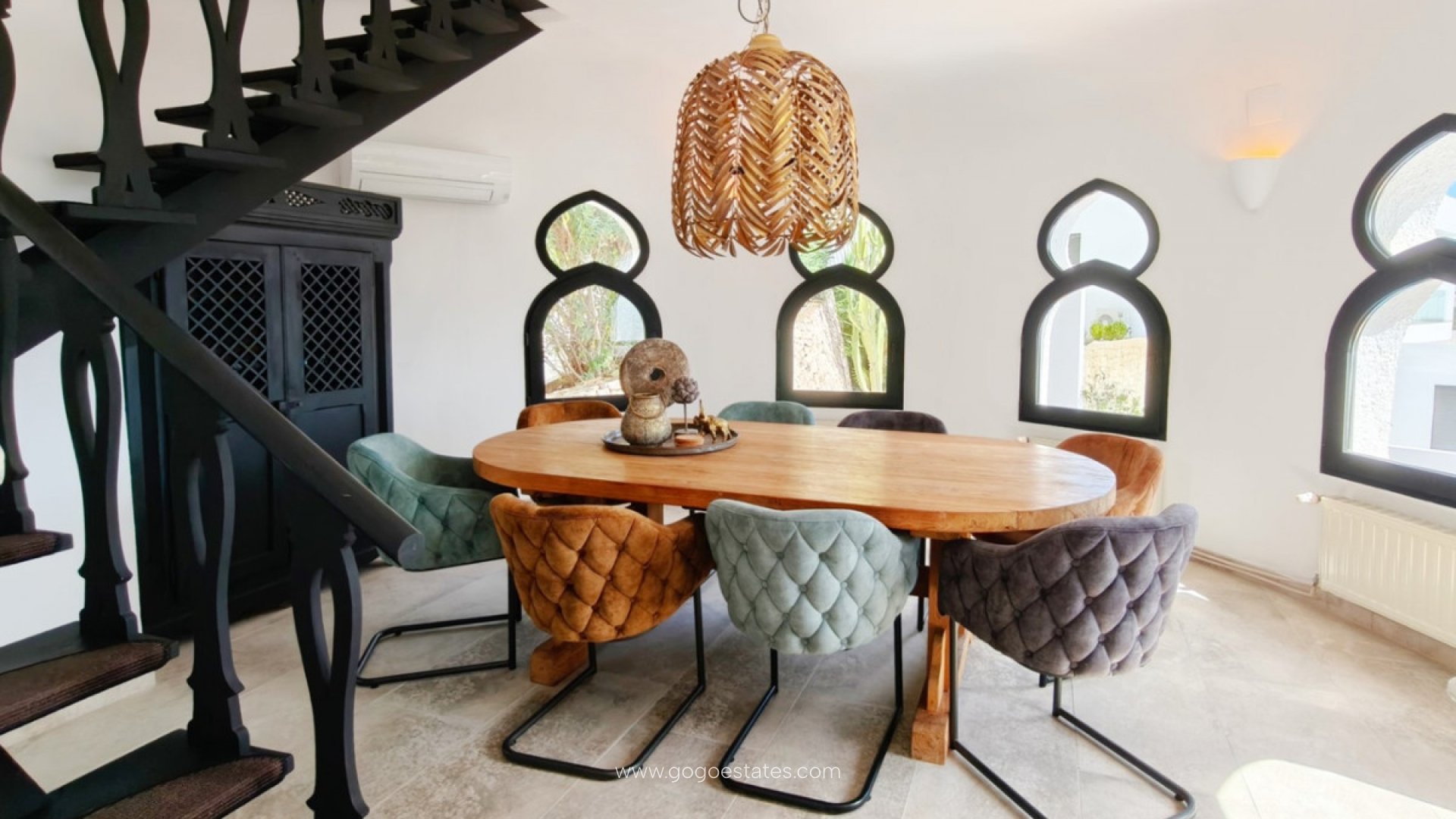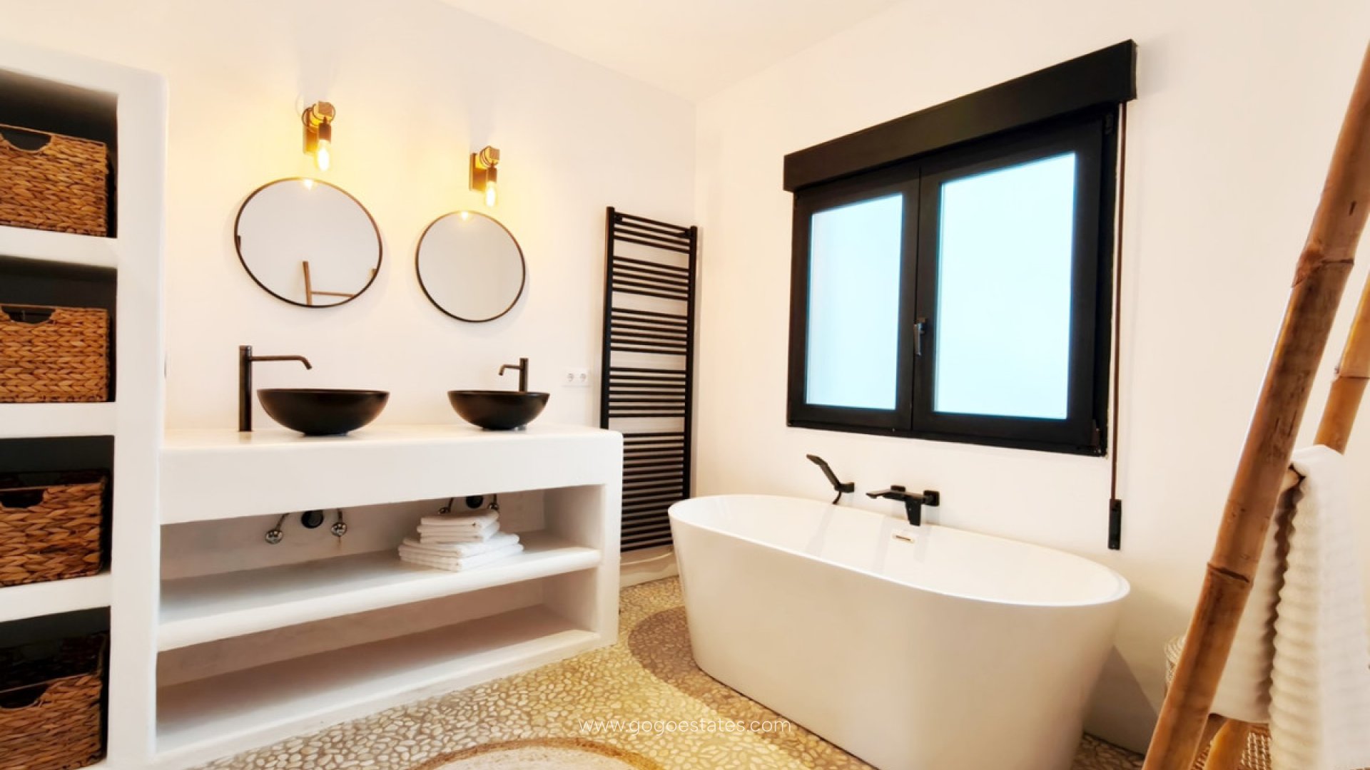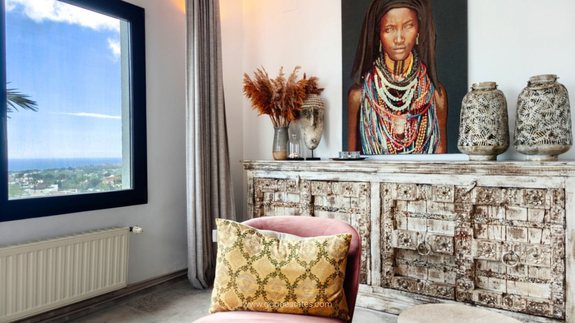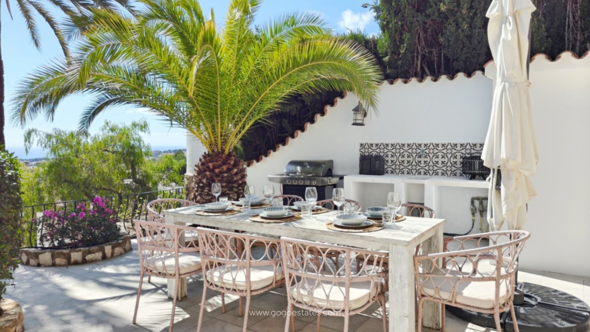 Exclusieve luxe villa met prachtig uitzicht op zee in de bevoorrechte omgeving van Pinar del Advocat. Op de begane grond is de ruime woonkamer verdeeld in drie ruimtes, waaronder een eethoek met een grote massief houten tafel, ramen in Arabische stijl die een uniek tintje geven, een hoek om te ontspannen naast een prachtige open haard en een ruimte om te genieten van een film op de bank, Ook op deze verdieping hebben we een slaapkamer en een complete badkamer. Op de bovenverdieping bevindt zich de hoofdslaapkamer met uitzicht op zee, terwijl er op de begane grond twee slaapkamers zijn, waarvan één met directe toegang tot een terras met uitzicht op zee, vanwaar u toegang heeft tot het spectaculaire zwembad met bar en grote terrassen, perfect om te genieten van het panoramische uitzicht op zee. In het onderste gedeelte van het huis vindt u een ruimte voor activiteiten, een wasruimte en een opslagruimte. De woning is voorzien van verwarming door het hele huis en airconditioning om te allen tijde maximaal comfort te garanderen. Daarnaast heeft de villa koloniaal meubilair dat de charme versterkt, een volledig uitgeruste moderne keuken en ruime terrassen om van de omgeving te genieten. Je kunt elke hoek verkennen met onze 360-graden virtuele tour om alle details te ontdekken.