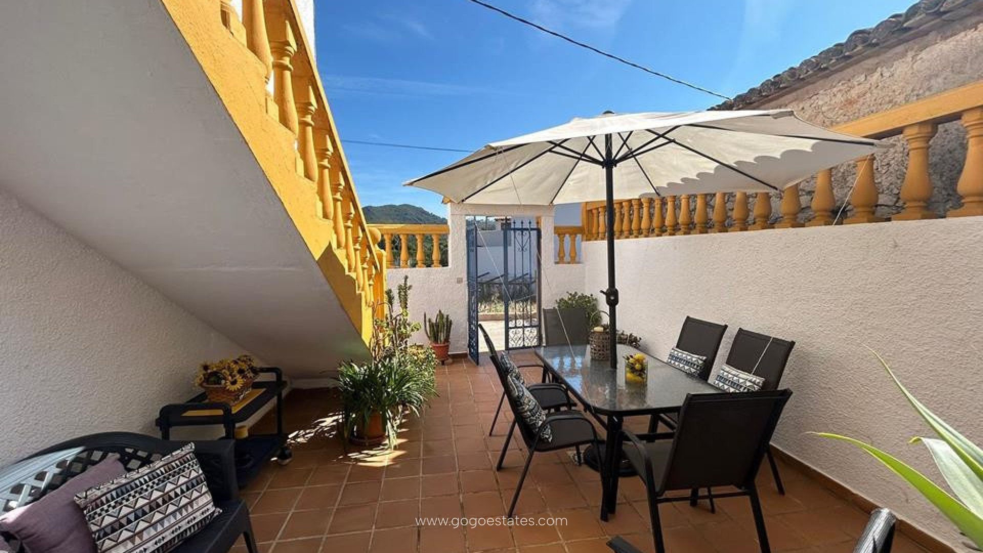 Deze vrijstaande villa in Rafol de Almunia biedt een prachtig uitzicht en een uitstekende locatie aan de Costa Blanca. De woning beslaat twee verdiepingen en beschikt over ruime woonruimtes met een woon-eetkamer, een aparte keuken, een open terras, een patio, twee slaapkamers en een badkamer. Op de begane grond bevindt zich een grote woonkamer en een ruime garage van 80 m² met een badkamer, die eenvoudig kan worden omgebouwd tot een extra appartement met directe toegang. De onlangs gerenoveerde keuken valt op door de heldere en frisse geel-wit geblokte vloer, die een stijlvolle en gastvrije sfeer creëert. De villa is voorzien van airconditioning, een open haard en dubbele beglazing, waardoor comfort het hele jaar door gegarandeerd is. Deze charmante villa ligt op slechts 2 minuten lopen van het centrum van Rafol de Almunia en is gunstig gelegen nabij het winkelcentrum Ondara, snelwegafritten en op slechts 15 minuten rijden van het strand. Deze locatie biedt de perfecte balans tussen rustig wonen en gemakkelijke toegang tot alle lokale voorzieningen en de kust.