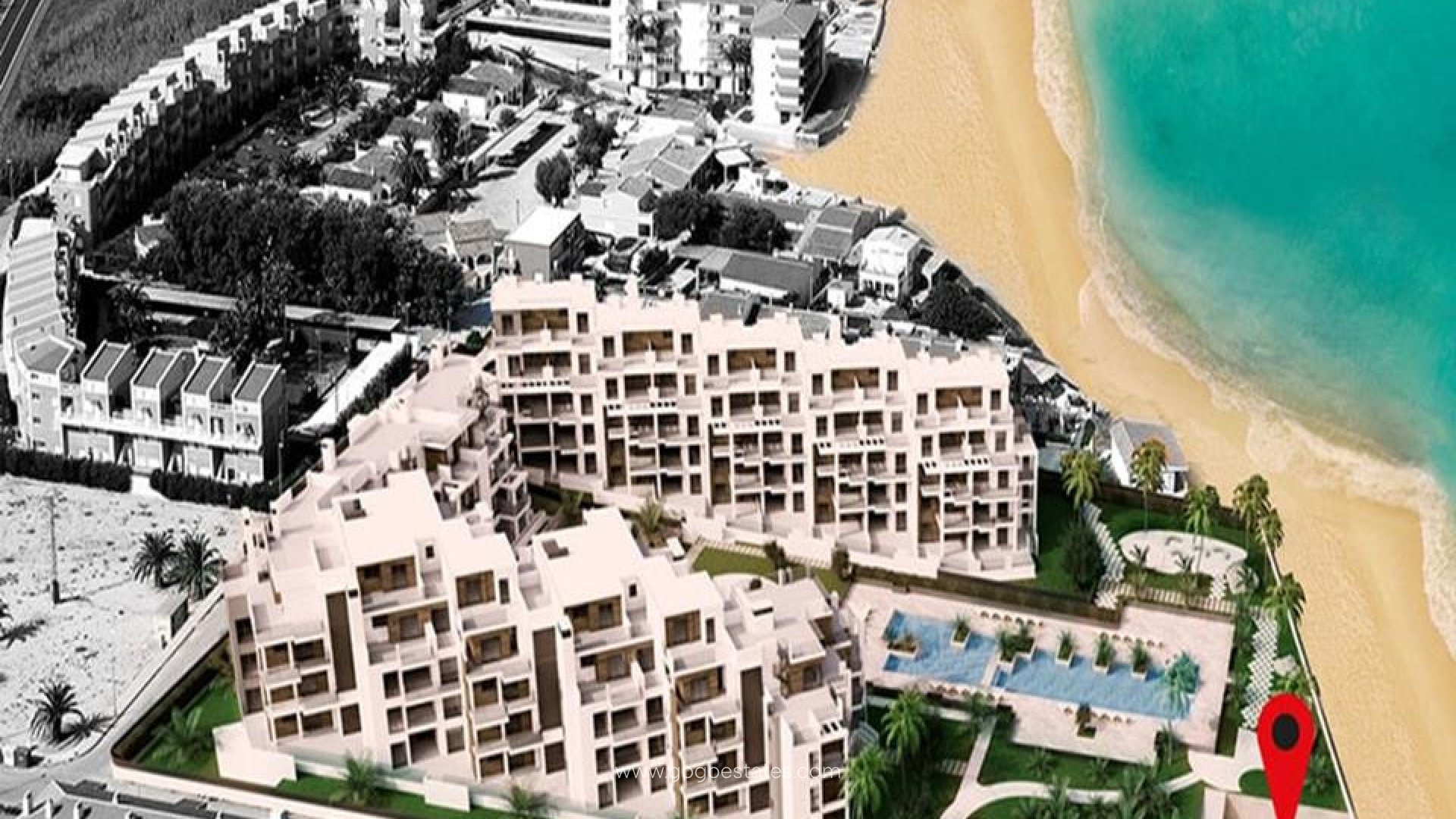 Dit is een project met 100 moderne appartementen aan het strand, direct tegenover het gouden zandstrand Els Molins, op 7 km van het centrum van Denia. Het complex is omgeven door alle voorzieningen en diensten, waaronder een keur aan restaurants en strandbars. De residentie bestaat uit drie blokken, gebouwd in een modern design en met materialen van topkwaliteit. De buitenkant biedt uitgebreide tuingebieden, een kinderspeelplaats, een ondergrondse parkeergarage en twee gemeenschappelijke zwembaden, waarvan een voor gebruik door kinderen, een buitenparkeerplaats voor fietsen en een pre-installatie voor het opladen van voertuigen in de parkeergarage. Het eerste blok van 5 verdiepingen met in totaal 32 appartementen met twee en drie slaapkamers is al te koop. Elke verdieping heeft 5 appartementen met drie slaapkamers en 3 appartementen met twee slaapkamers, behalve de penthouses die allemaal duplex-eenheden zijn met 3 slaapkamers en een dakterras van ongeveer 38 m2, allemaal op het oosten. Prijzen 2 slaapkamer appartement: vanaf 299.000€ Prijzen 3 slaapkamer appartementen: vanaf 425.000€ - 449.000€. Prijzen penthouses-duplexen: 3 slaapkamers: vanaf 475.000€ - 799.000€. Bij elk appartement hoort een parkeerplaats en berging in de onderbouwgarage. Verdere details Pre-installatie van A / C (warm / koud) door buizen in de woonkamer en slaapkamers, dubbele beglazing Climalit type lage emissivit. Keuken met hoog en laag meubilair, Silestone werkblad of gelijkwaardig uitgerust met afzuigkap, inductiekookplaat en elektrische oven. Alle badkamers met badmeubel en spiegel. Slaapkamers met ingebouwde kasten voorzien van hangroede, ladeblokken en LED binnenverlichting en gemotoriseerde buitenzonwering. Warm water door Aerothermia die hernieuwbare energie levert. Video-entree telefoon.