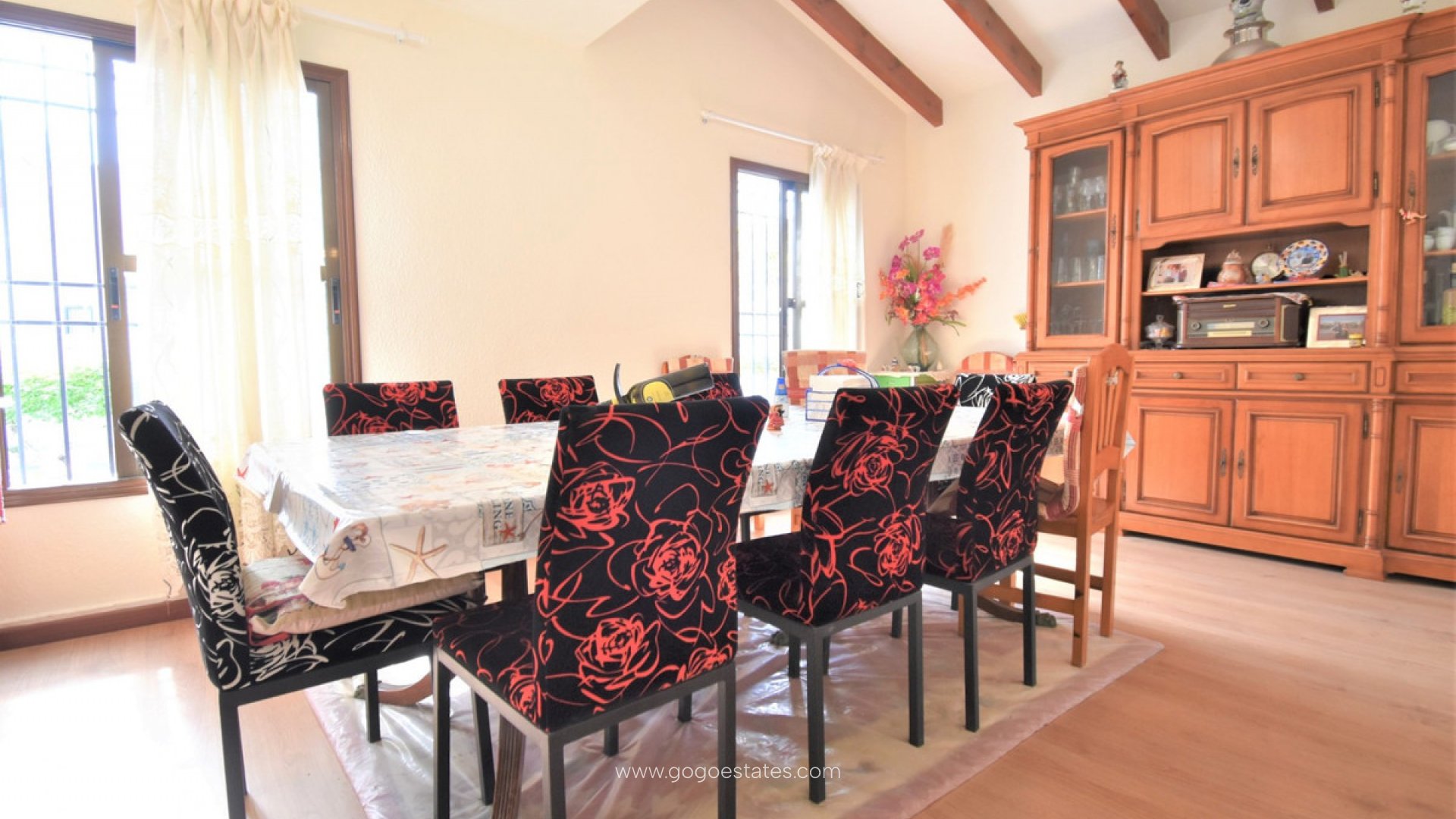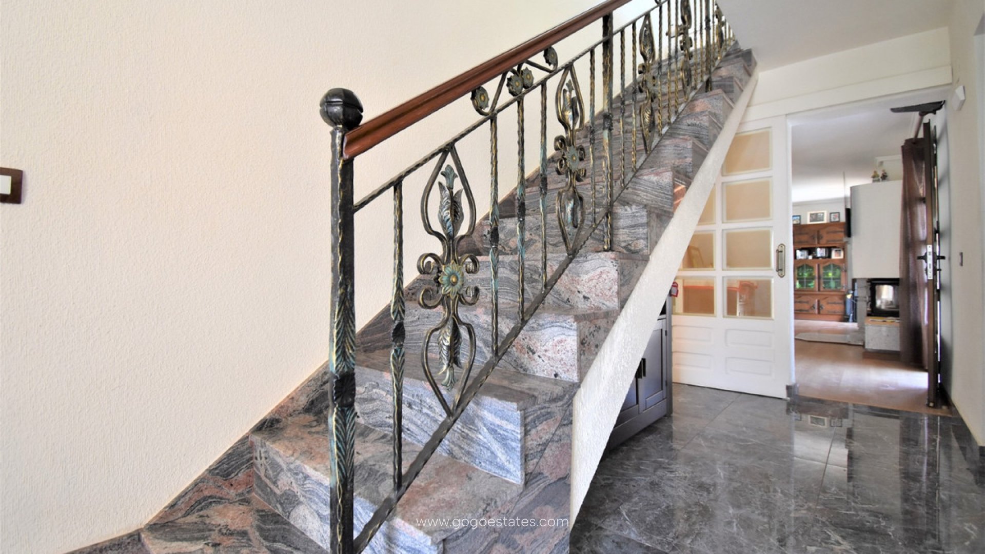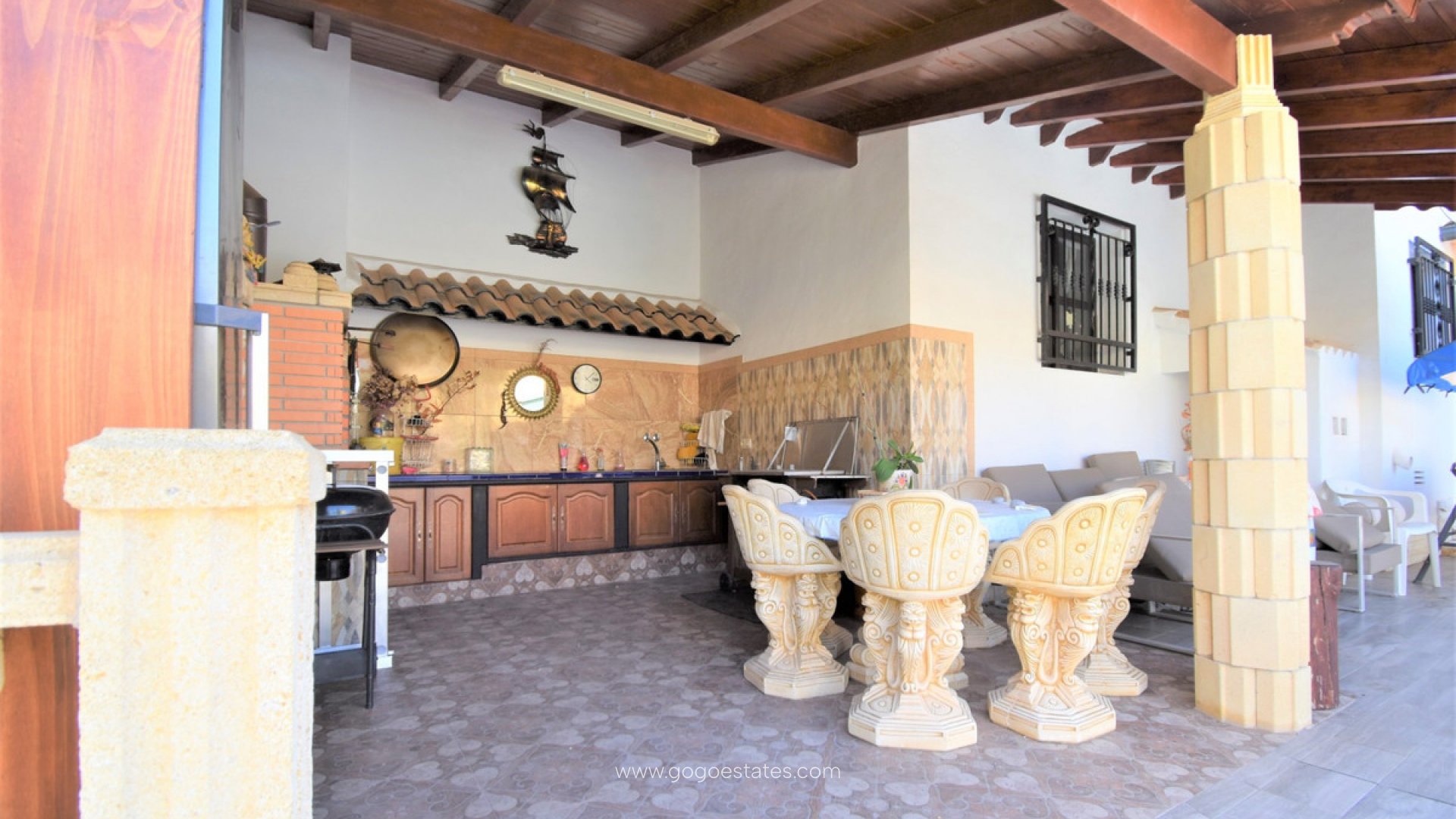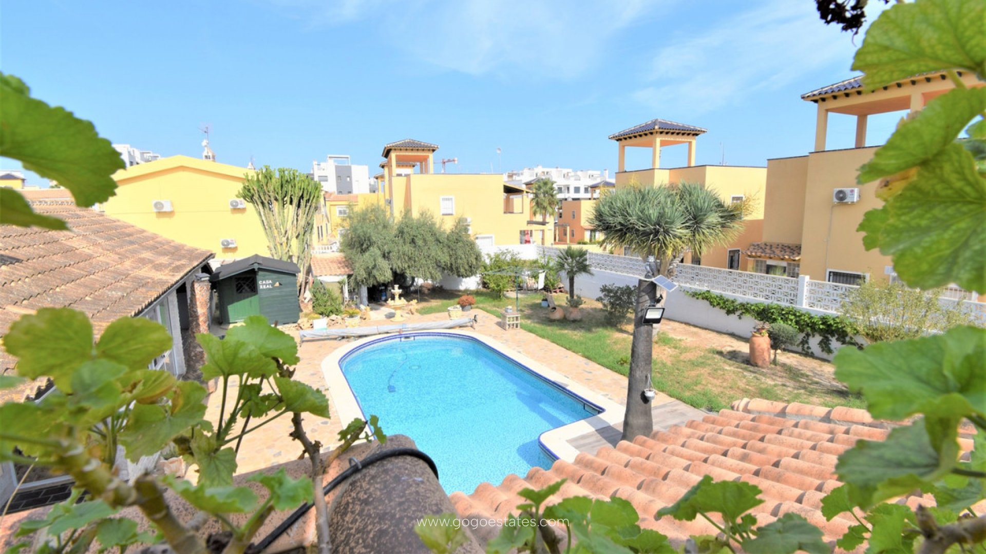 Deze op het zuiden gelegen, absoluut schitterende vrijstaande villa met vier slaapkamers in Villamartin, ligt op slechts een paar minuten rijden van de golfbaan Villamartin en het bekende "plaza". Tien minuten lopen naar een plaatselijke bar/restaurant en bushalte; tien minuten rijden naar het winkelcentrum La Zenia Boulevard en nog eens vijf minuten naar de stranden langs de kust. Deze prachtige villa van 325 m2 biedt zoveel karakter en beslaat een perceel van 1762 m2, bestaande uit: twee sets dubbele openslaande deuren leiden naar de woonkamer met sierlijke open haard, vierkante brede boog leidt naar de eetkamer; aparte moderne ingerichte keuken; bijkeuken; drie tweepersoonsslaapkamers, twee met ingebouwde kasten, master met toegang tot een terras en een eigen badkamer met douche, familiedoucheruimte. De eerste verdieping heeft een tweepersoonsslaapkamer met inbouwkasten, toegang tot een terras en een eigen doucheruimte. Interne toegang biedt toegang tot het solarium. Buiten is er een mooi overdekt ruim terras, grotendeels voorzien van glas en kijkt uit over het privézoutzwembad met een tuin met gras en tegels eromheen; kamer met watertanks voor tuinirrigatie, struiken, struiken, externe overdekte keuken, ruime parkeermogelijkheden, inclusief een carport. Extra's zijn onder meer een bodega in de onderbouw met externe toegang, een balkenplafond in de meeste kamers en zonnepanelen die voor het warme water zorgen.