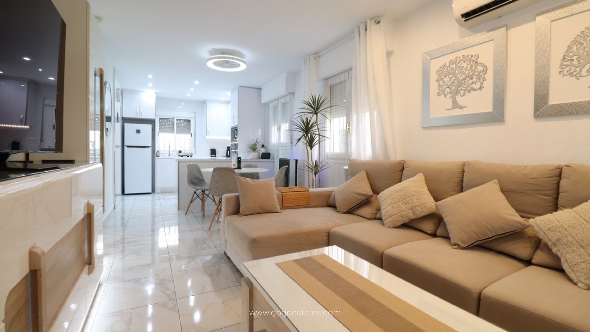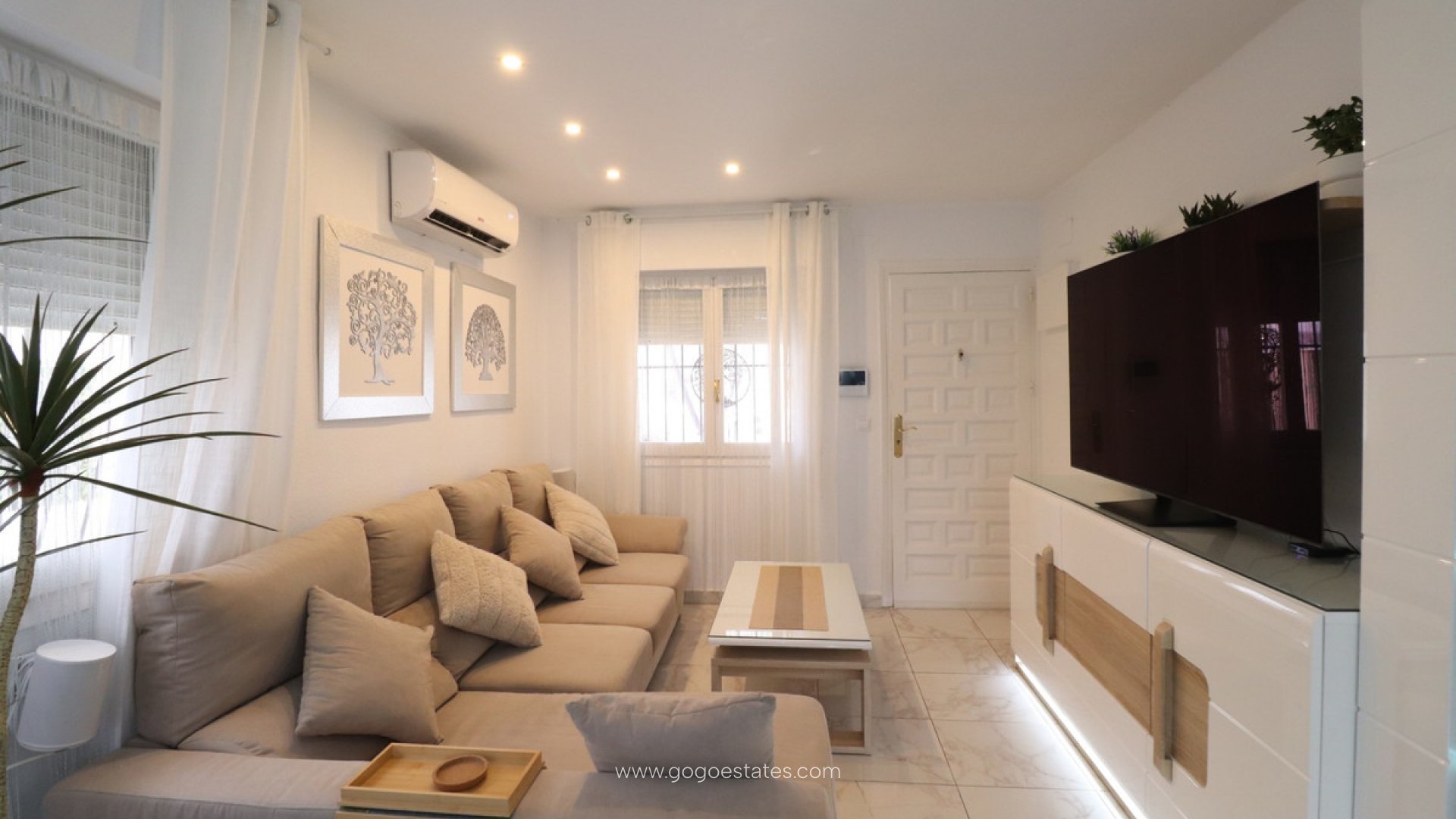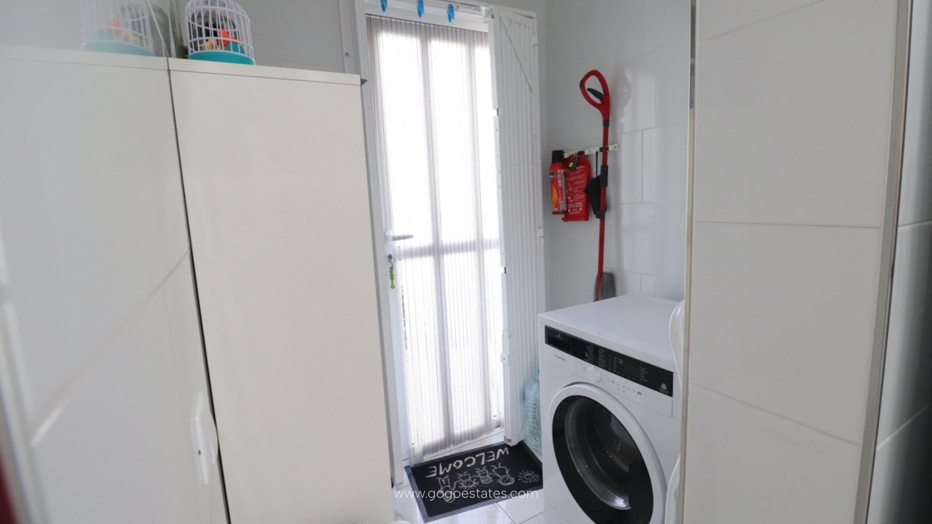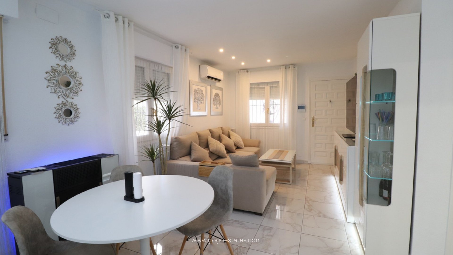 Deze vrijstaande villa met drie slaapkamers, gelegen op het zuidwesten in La Florida, is gelegen in een populaire woonwijk, op slechts 2 minuten lopen van het nabijgelegen winkelcentrum met diverse voorzieningen. De bekende entertainmentlocatie Emerald Isle – met bowlingclub, restaurant en zwembad – ligt op slechts een paar minuten afstand, terwijl La Zenia Boulevard, prachtige stranden en diverse golfbanen binnen 10 minuten rijden te bereiken zijn. Deze prachtig gepresenteerde, gelijkvloerse villa heeft een bebouwde oppervlakte van 90 m² op een onderhoudsarm betegeld perceel van 210 m². Een overdekt terras leidt naar een lichte woon-/eetkamer met een gezellige pelletkachel en een open, ingerichte keuken met ontbijtbar en aangrenzende bijkeuken met directe toegang naar buiten. Er zijn drie tweepersoonsslaapkamers, waarvan de hoofdslaapkamer met inbouwkasten, en twee strakke, moderne badkamers met douche, waarvan één en-suite. De buitenruimte beschikt over een eigen kinderzwembad, perfect om af te koelen, terwijl bewoners ook toegang hebben tot twee goed onderhouden gemeenschappelijke zwembaden. Extra voorzieningen zijn onder andere airconditioning, waardoor dit een comfortabel huis is voor het hele jaar door. Een ideale permanente woning, vakantiehuis of verhuurinvesteringsmogelijkheid aan de gewilde Costa Blanca Zuid.
