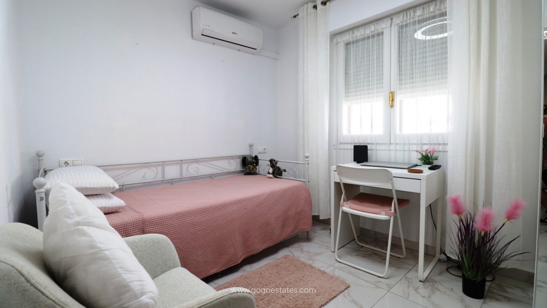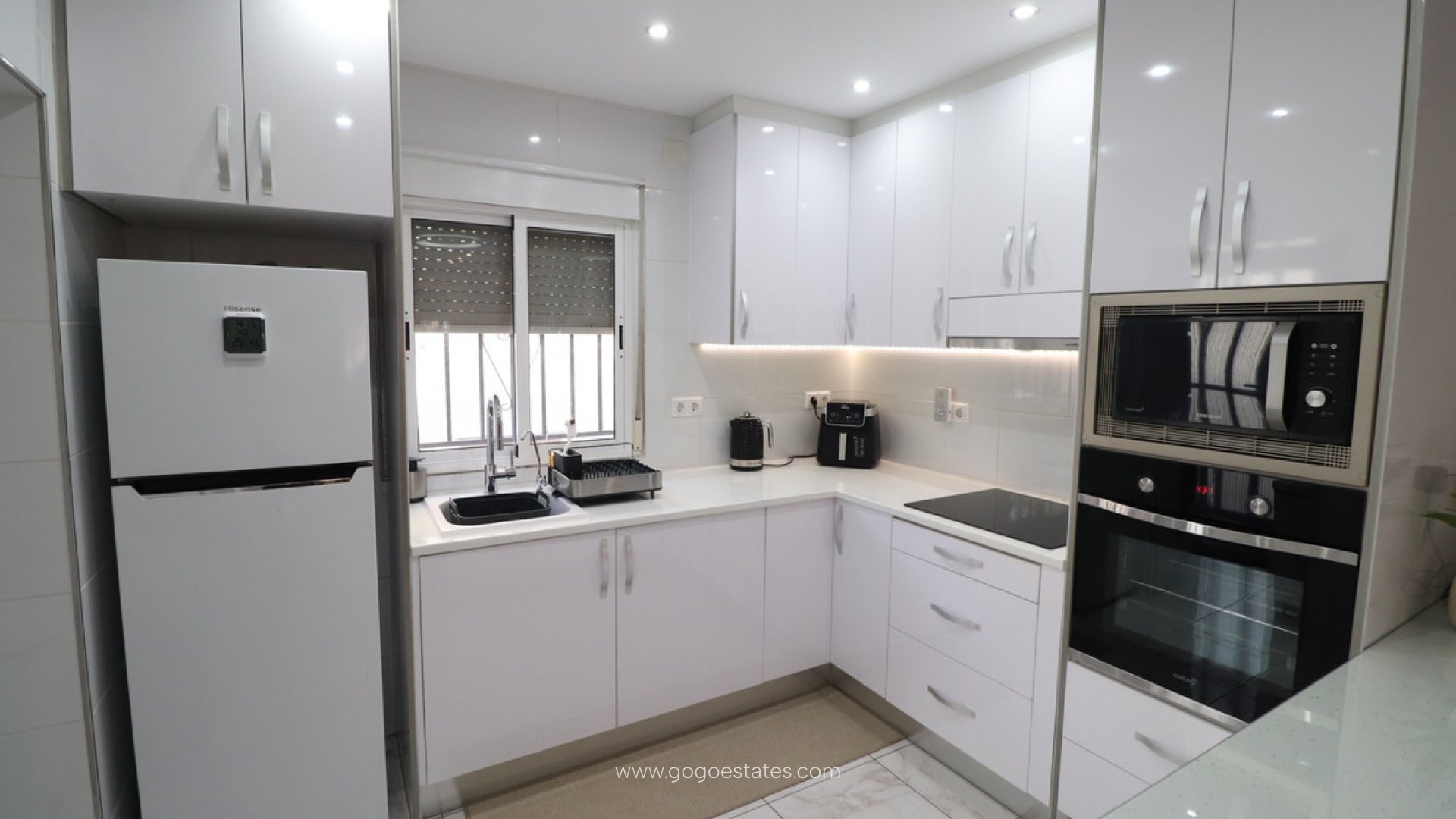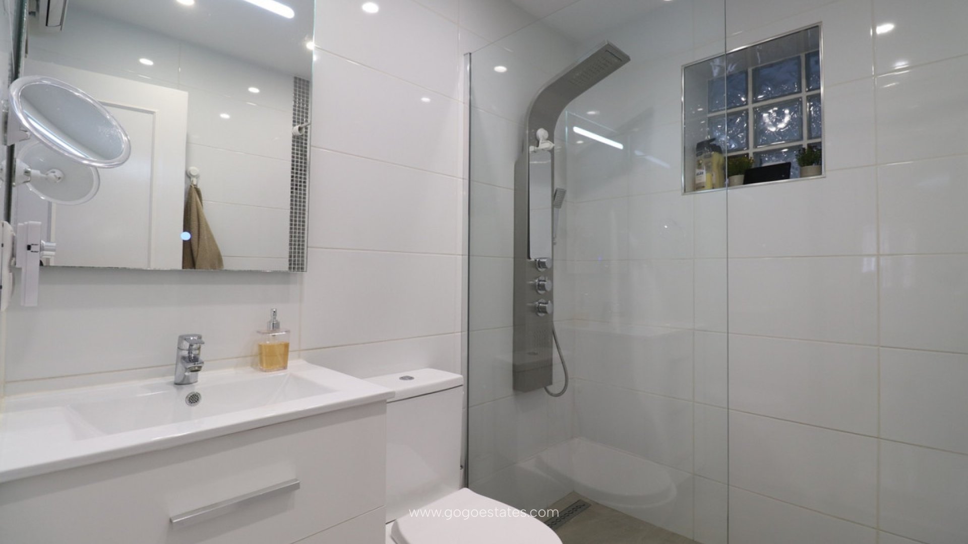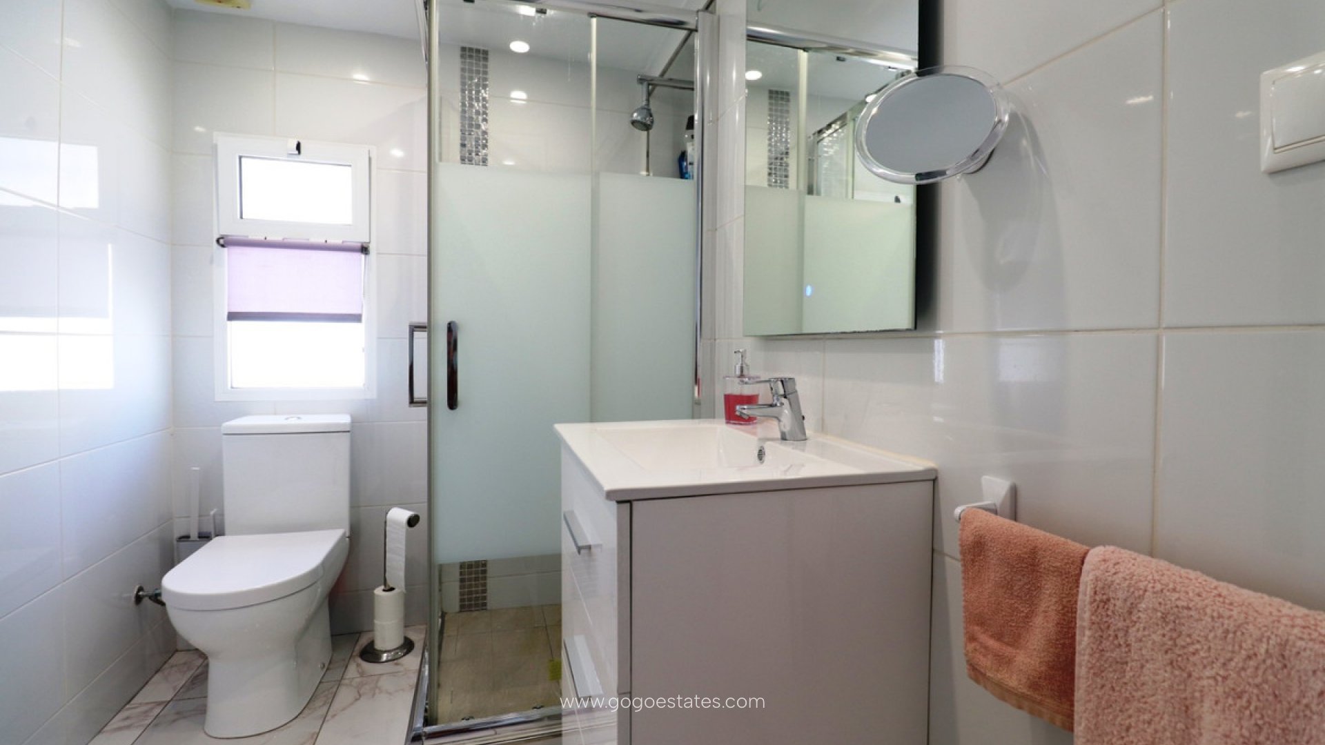 Deze vrijstaande villa met drie slaapkamers, gelegen op het zuidwesten in La Florida, is gelegen in een populaire woonwijk, op slechts 2 minuten lopen van het nabijgelegen winkelcentrum met diverse voorzieningen. De bekende entertainmentlocatie Emerald Isle – met bowlingclub, restaurant en zwembad – ligt op slechts een paar minuten afstand, terwijl La Zenia Boulevard, prachtige stranden en diverse golfbanen binnen 10 minuten rijden te bereiken zijn. Deze prachtig gepresenteerde, gelijkvloerse villa heeft een bebouwde oppervlakte van 90 m² op een onderhoudsarm betegeld perceel van 210 m². Een overdekt terras leidt naar een lichte woon-/eetkamer met een gezellige pelletkachel en een open, ingerichte keuken met ontbijtbar en aangrenzende bijkeuken met directe toegang naar buiten. Er zijn drie tweepersoonsslaapkamers, waarvan de hoofdslaapkamer met inbouwkasten, en twee strakke, moderne badkamers met douche, waarvan één en-suite. De buitenruimte beschikt over een eigen kinderzwembad, perfect om af te koelen, terwijl bewoners ook toegang hebben tot twee goed onderhouden gemeenschappelijke zwembaden. Extra voorzieningen zijn onder andere airconditioning, waardoor dit een comfortabel huis is voor het hele jaar door. Een ideale permanente woning, vakantiehuis of verhuurinvesteringsmogelijkheid aan de gewilde Costa Blanca Zuid.