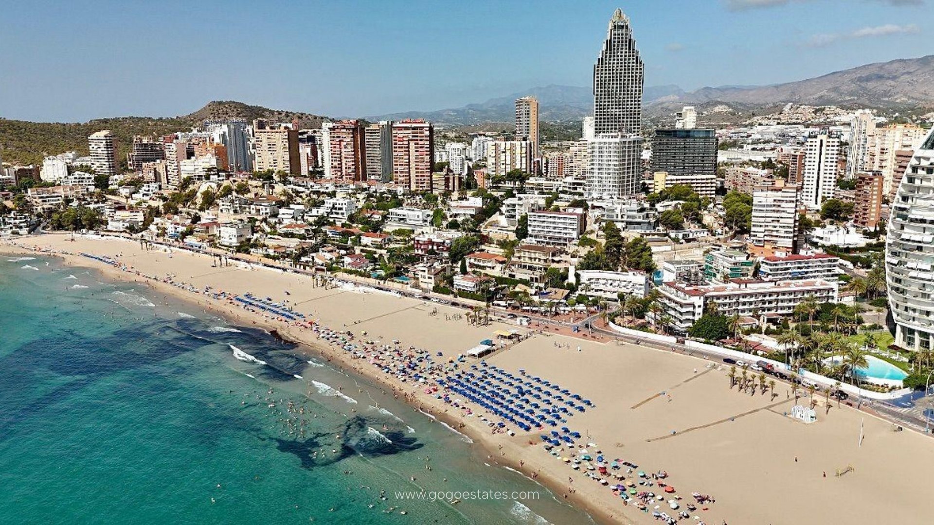 Droomvilla met zeezicht in Playa de Poniente, Benidorm Dompel uzelf onder in de luxe en het comfort van deze spectaculaire twee-onder-een-kapwoning, gelegen op een bevoorrechte locatie aan de Calle Oviedo, direct aan het Poniente-strand in Benidorm. Deze droomvilla beschikt over exclusieve kenmerken die het tot een waar pareltje maken. Met bijna 300 vierkante meter verdeeld over twee verdiepingen biedt deze woning drie ruime slaapkamers, twee badkamers, een gastentoilet, een volledig uitgeruste keuken en, als hoogtepunt, een terras van meer dan 80 vierkante meter met panoramisch uitzicht op zee, waar u kunt genieten van onvergetelijke zonsondergangen aan de Middellandse Zee. Daarnaast beschikt de woning over drie ondergrondse parkeerplaatsen met automatische poort. Het perceel van 280 vierkante meter biedt de mogelijkheid om een zwembad te bouwen en extra ruimte voor een gastenverblijf, wat deze exclusieve woning nog waardevoller maakt. Uitgerust met airconditioning, biedt dit chalet ruime en moderne ruimtes, die te allen tijde maximaal comfort garanderen. Zonder twijfel een unieke kans met uitzicht op zee. Benidorm, de hoofdstad van de Costa Blanca, staat bekend om zijn toeristische trekpleisters en uitstekende ligging. Met gemakkelijke toegang tot de snelweg die verbinding biedt met de internationale luchthaven Alicante-Elche, evenals andere belangrijke steden zoals Alicante en Valencia, biedt Benidorm een ongeëvenaarde levensstijl met milde winters, aangename zomers en een breed scala aan diensten, recreatie en restauratie. De wijk Poniente onderscheidt zich door de rust en het prachtige strand, evenals de onlangs geopende promenade, die in 2011 werd bekroond met de Spaanse Architectuurprijs. Met snelle toegang tot de nationale snelweg N-332 en de snelweg A-7 biedt deze woonwijk al het comfort en de diensten die nodig zijn om te genieten van het leven in het paradijs.