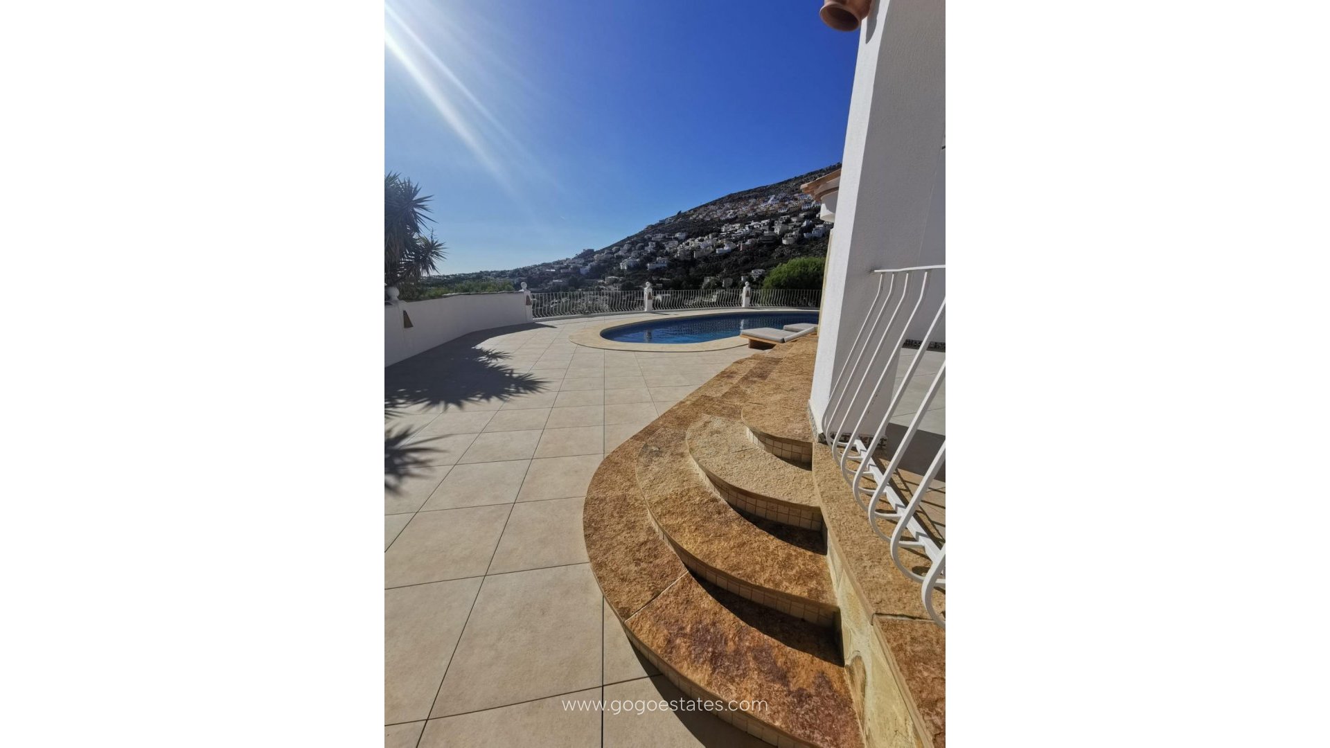 Villa met zeezicht in Cumbre del Sol Gelegen in de exclusieve wijk Cumbre del Sol in Benitachell, biedt deze prachtige villa met 5 slaapkamers en 4 badkamers comfortabel wonen, omringd door natuurlijke schoonheid. Met een mediterraan design, ruime interieurs en panoramisch uitzicht op zee is het ideaal voor wie rust zoekt aan zee op een van de meest gewilde locaties aan de Costa Blanca. Verdeeld over twee verdiepingen integreert het huis naadloos in de omgeving. Binnen- en buitenruimtes sluiten vloeiend aan, waardoor een perfecte setting ontstaat om te ontspannen of momenten te delen met familie en vrienden. De begane grond verwelkomt u met een open woonkamer vol natuurlijk licht, verbonden met een keuken die klaar is voor uw persoonlijke touch. Grote schuifdeuren leiden naar het terras, waar het privézwembad het hart van het buitenleven wordt. Vanaf hier is het uitzicht op de Middellandse Zee ronduit spectaculair. Deze verdieping beschikt ook over twee slaapkamers met inbouwkasten en een gastentoilet voor extra gemak. Buiten is er een ruim terras rondom het zwembad, perfect om te zonnen, buiten te eten of te genieten van een barbecue met vrienden. Een buitenkeuken en een complete badkamer bij het zwembad zorgen voor extra gemak. De onderhoudsarme tuin biedt rustige hoekjes en veel privacy. Boven is de hoofdslaapkamer een waar toevluchtsoord met een en-suite badkamer, inbouwkasten en directe toegang tot een terras met een fantastisch uitzicht op de valleien, kliffen en de zee. Daarnaast zijn er nog twee slaapkamers met inbouwkasten; één heeft ook toegang tot het terras. De woning beschikt over een aparte overdekte garage. Met extra opbergruimte, ideaal voor fietsen, gereedschap of alles wat u moet organiseren. De villa is liefdevol gerenoveerd met oog voor detail en biedt hoogwaardige afwerkingen en moderne functionaliteit. Cumbre del Sol is perfect voor wie waarde hecht aan natuur, rust en gemak. Dicht bij voorzieningen, winkels, restaurants en medische centra, en op slechts een steenworp afstand van de mooiste stranden van de Costa Blanca. Of u nu wilt ontspannen, wandelpaden wilt verkennen of gewoon wilt genieten van de rust van de omgeving, u vindt hier uw ideale plek. Een unieke villa met een bevoorrechte locatie, een droomuitzicht en alles wat u nodig heeft om het leven te leiden dat u altijd al wilde. Mis deze kans niet!