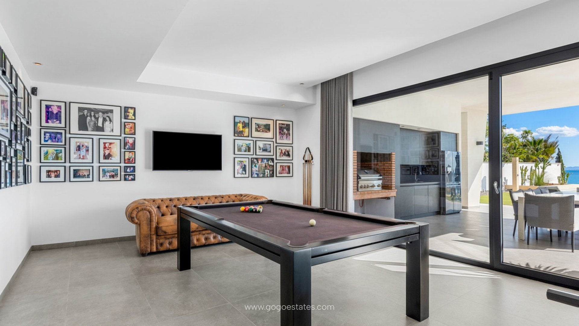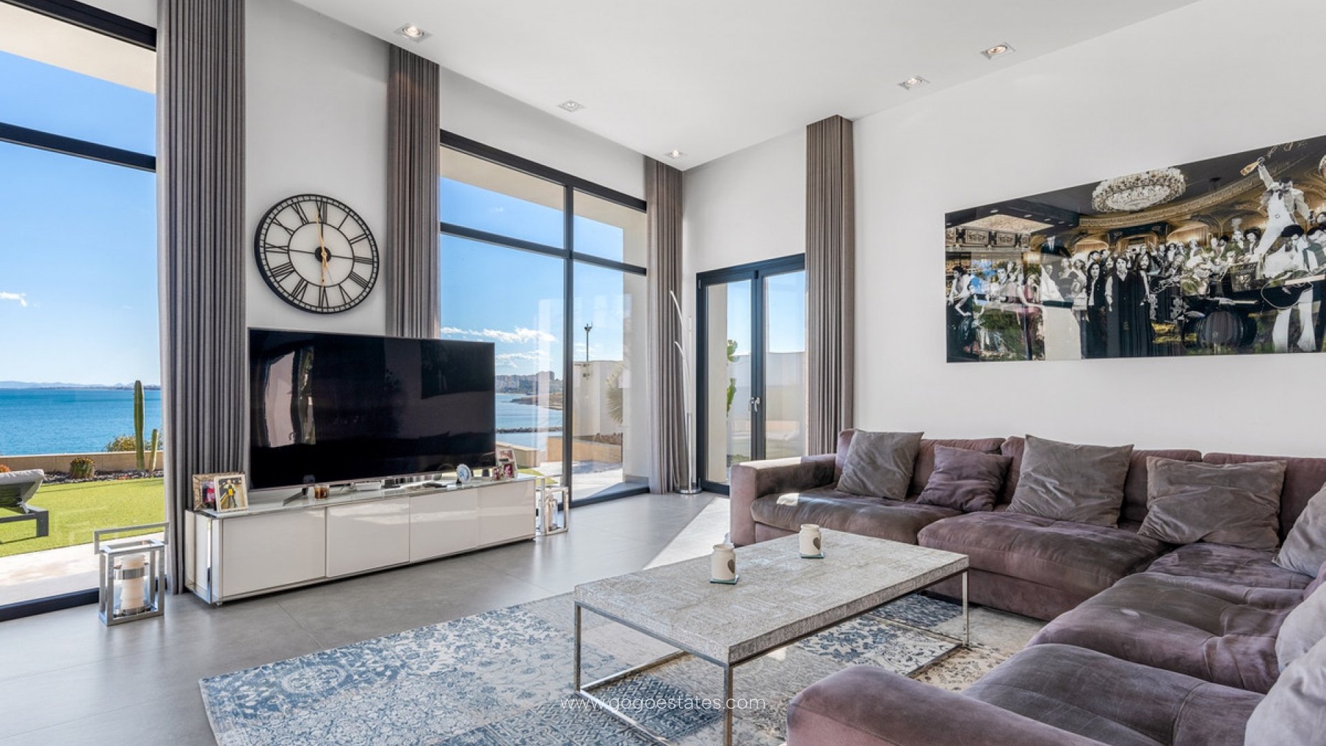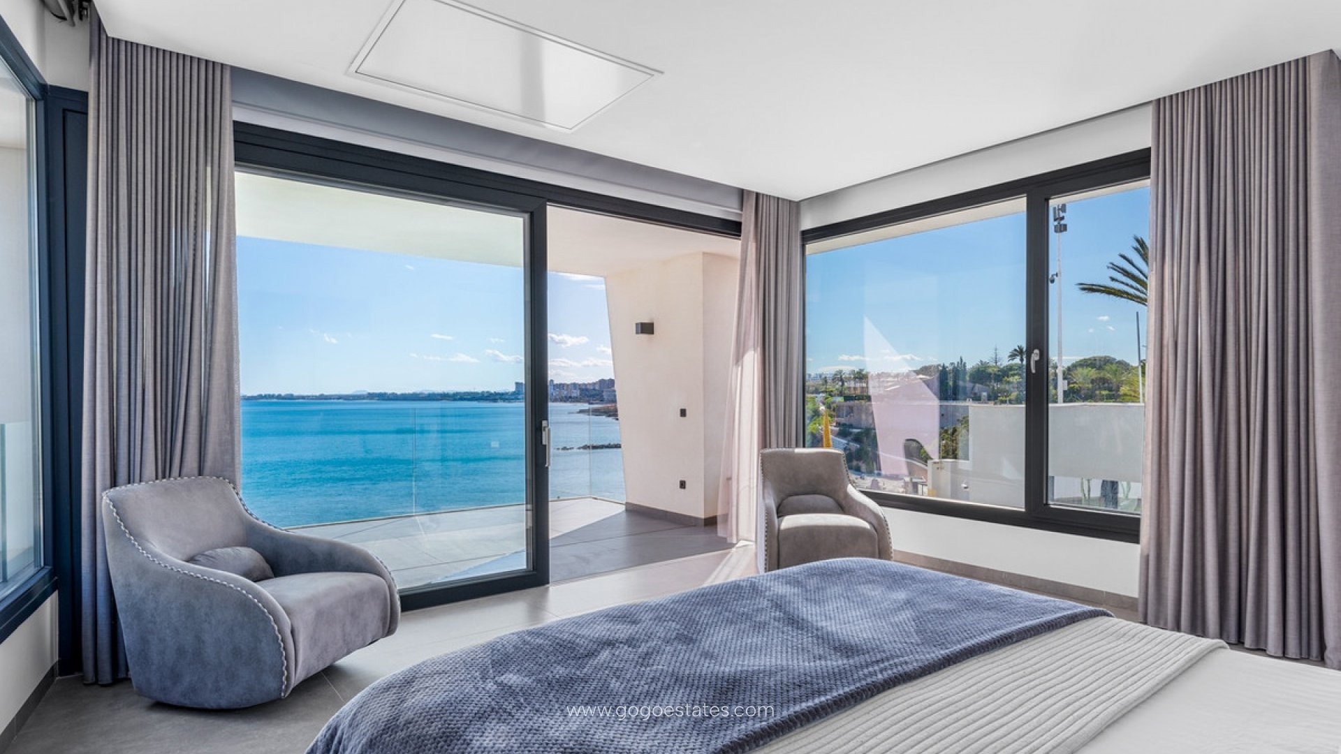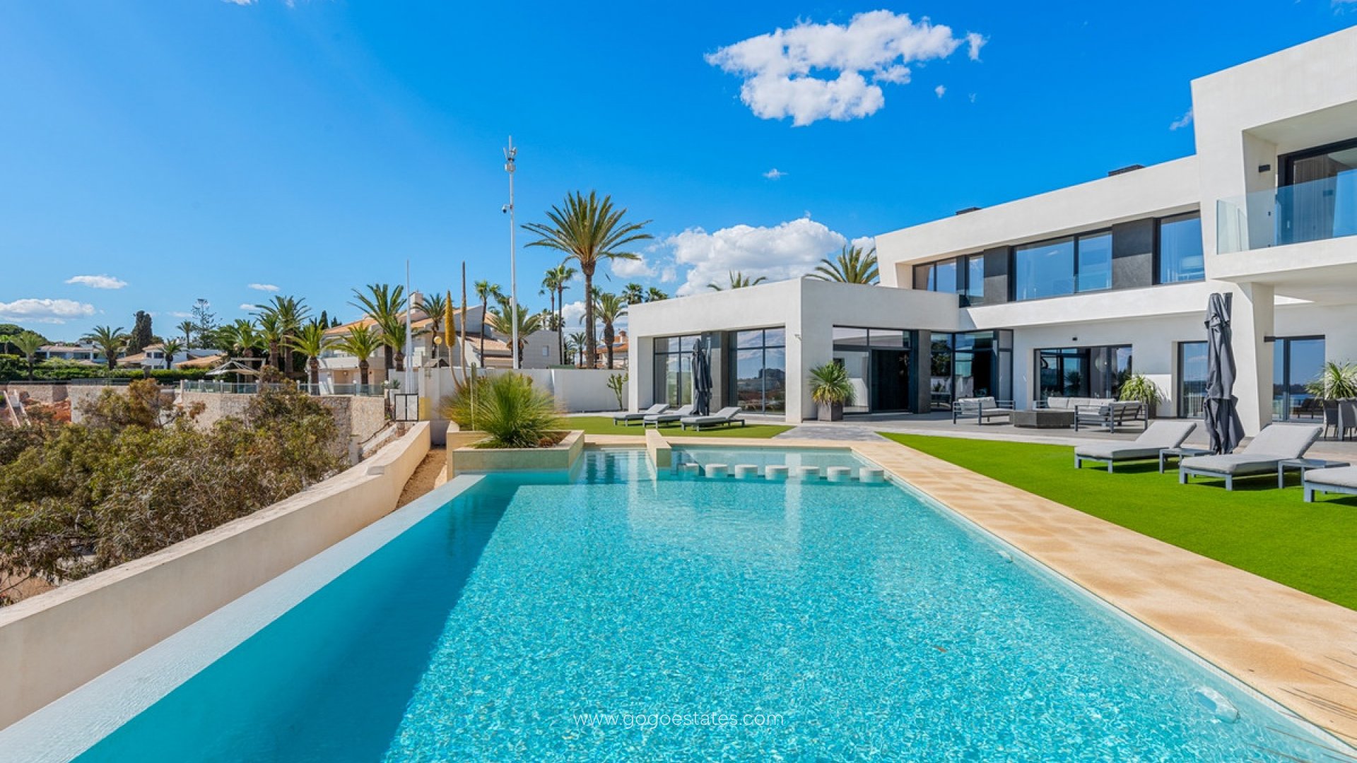 Welkom in dit unieke meesterwerk met 6 slaapkamers* en 6 badkamers, ideaal gelegen aan het strand van Cabo Roig. Deze exclusieve accommodatie is ontworpen voor wie absolute privacy waardeert en biedt een adembenemend, ononderbroken uitzicht vanuit elke kamer – zonder dat u zich zorgen hoeft te maken over uw buren. Deze accommodatie aan het strand is ontworpen om u bij elke stap te bekoren. Dit architectonische juweeltje beschikt over kamerhoge ramen die de elegantie van het interieur perfect combineren met de adembenemende natuurlijke schoonheid van de omringende oceaan. Of u nu ontspant in een van de ruime woonkamers, de ultramoderne keuken, de speelkamer of uw privésuite, u kunt vanuit elke hoek genieten van een panoramisch uitzicht op de oceaan. Elk van de zeven slaapkamers heeft een eigen badkamer in hotelstijl en een eigen balkon, waardoor gezinnen en gasten een rustige en intieme plek hebben om te ontspannen. Het hart van de buitenruimte wordt gevormd door een prachtig infinity zwembad met een speciaal ondiep gedeelte voor kinderen – hier lijkt het water harmonieus samen te smelten met de zee. Rondom het zwembad bevinden zich diverse recreatiegebieden, waaronder een volledig uitgeruste buitenkeuken, een loungehoek met open haard waar u gezellige avonden kunt doorbrengen, en diverse terrassen, perfect om buiten te dineren of te ontspannen. De accommodatie is ontworpen met luxe en levensstijl in gedachten en beschikt ook over een eigen fitnessruimte, een elegante speelkamer en een discrete persoonlijke ruimte die eenvoudig te onderhouden is, het hele jaar door. Gezinnen zullen de zorgvuldig ontworpen faciliteiten voor kinderen waarderen, waaronder een privé-minivoetbalveld en een trampoline. Dit alles bevindt zich in een prachtig ontworpen ruimte, volledig afgesloten van de buitenwereld. Dit is een zeldzame kans om eigenaar te worden van een volledig uniek, modern landhuis op een van de meest exclusieve locaties aan de Costa Blanca. Het is meer dan zomaar een woning: het is een oase van luxe, privacy en eersteklas wonen direct aan de oceaan. (*Let op: deze woning heeft 4 hoofdslaapkamers op de bovenverdieping, nog 1 in het personeelsverblijf en afhankelijk van hoe u de kamers in de woning wilt gebruiken, is er een mogelijkheid voor nog 2 extra kamers)