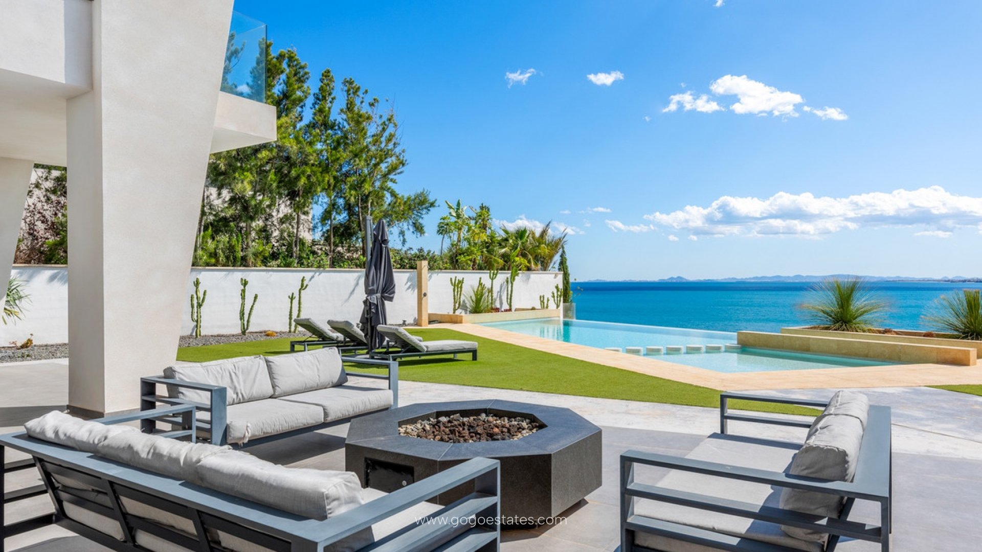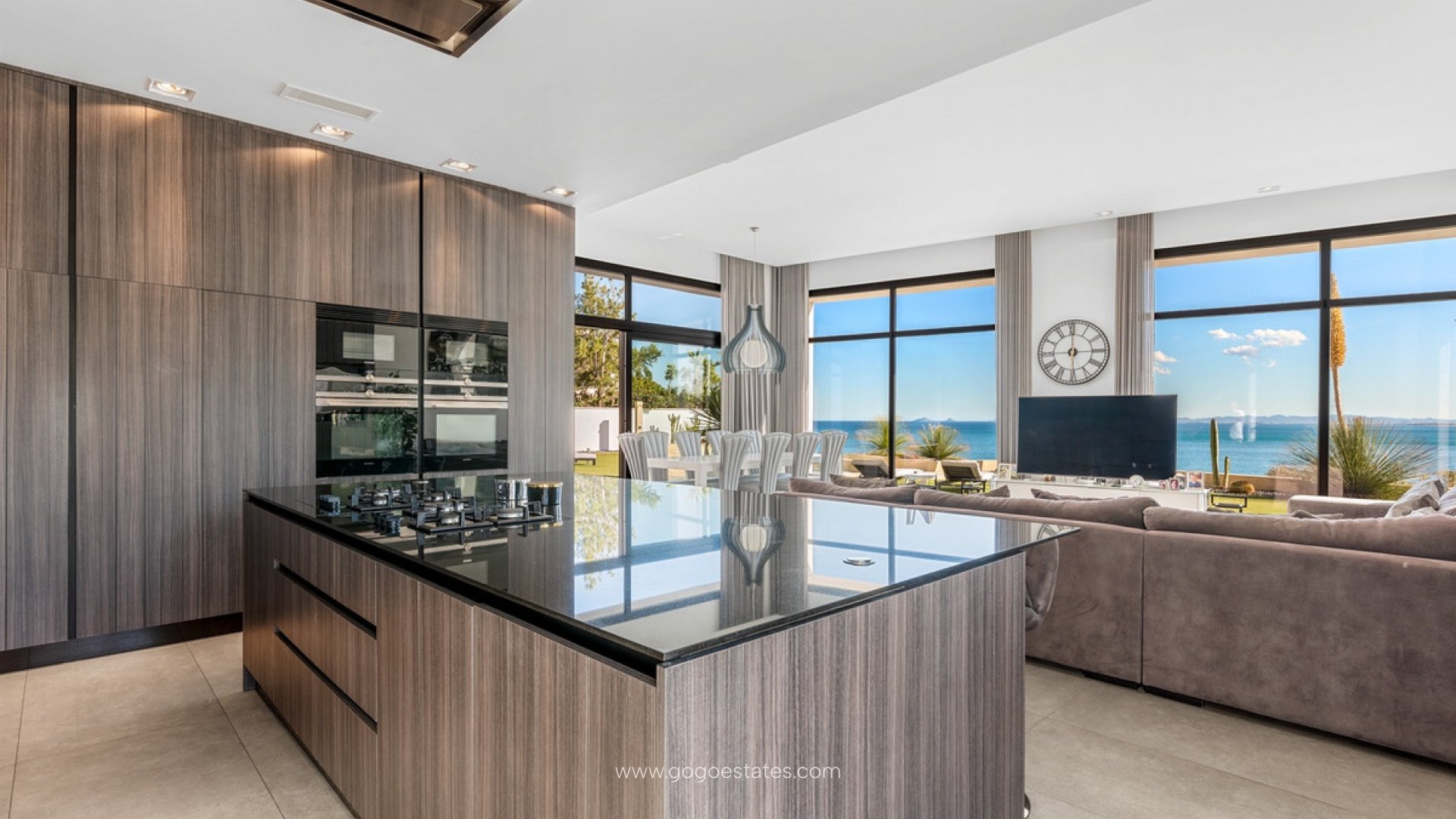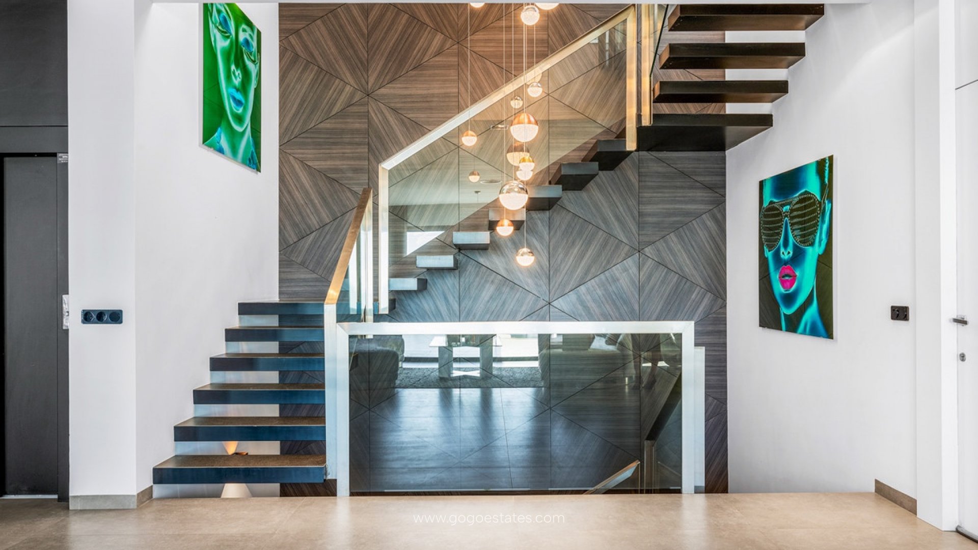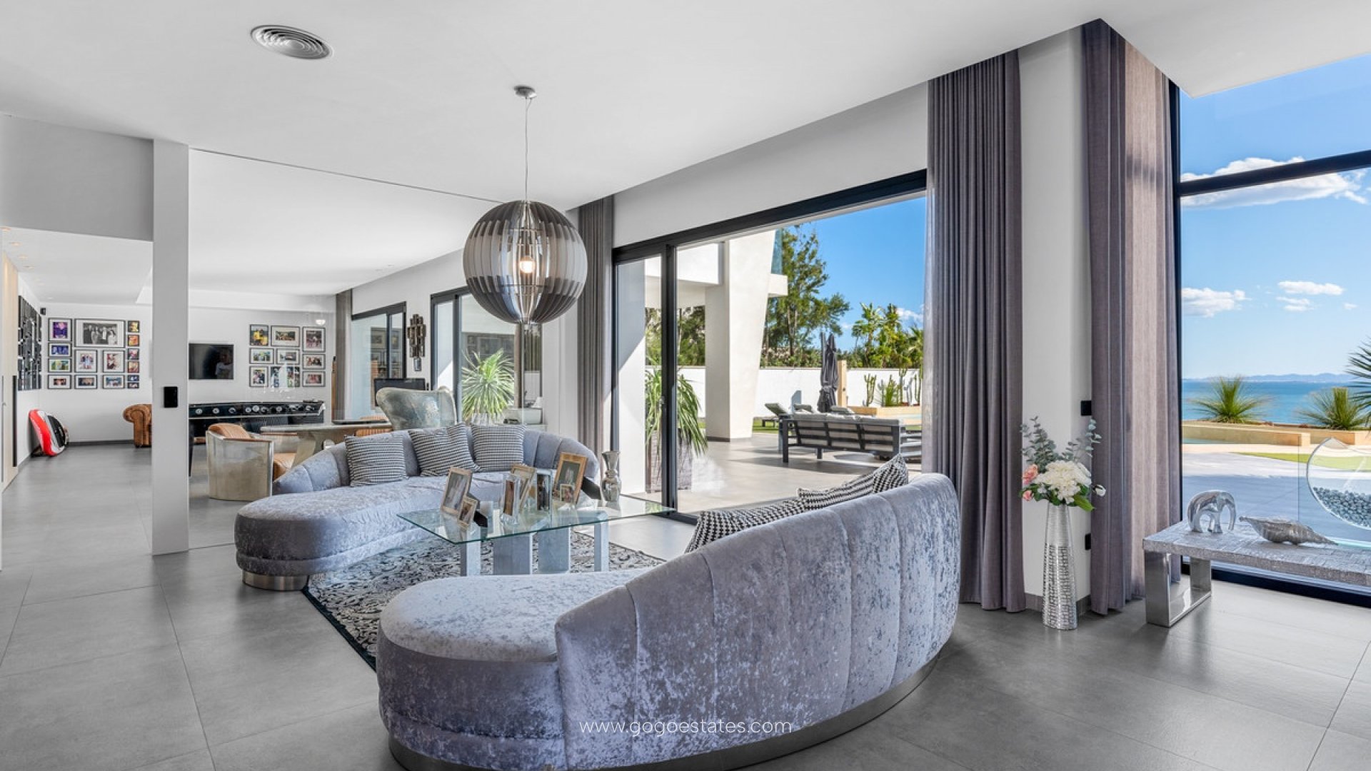 Welkom in dit unieke meesterwerk met 6 slaapkamers* en 6 badkamers, ideaal gelegen aan het strand van Cabo Roig. Deze exclusieve accommodatie is ontworpen voor wie absolute privacy waardeert en biedt een adembenemend, ononderbroken uitzicht vanuit elke kamer – zonder dat u zich zorgen hoeft te maken over uw buren. Deze accommodatie aan het strand is ontworpen om u bij elke stap te bekoren. Dit architectonische juweeltje beschikt over kamerhoge ramen die de elegantie van het interieur perfect combineren met de adembenemende natuurlijke schoonheid van de omringende oceaan. Of u nu ontspant in een van de ruime woonkamers, de ultramoderne keuken, de speelkamer of uw privésuite, u kunt vanuit elke hoek genieten van een panoramisch uitzicht op de oceaan. Elk van de zeven slaapkamers heeft een eigen badkamer in hotelstijl en een eigen balkon, waardoor gezinnen en gasten een rustige en intieme plek hebben om te ontspannen. Het hart van de buitenruimte wordt gevormd door een prachtig infinity zwembad met een speciaal ondiep gedeelte voor kinderen – hier lijkt het water harmonieus samen te smelten met de zee. Rondom het zwembad bevinden zich diverse recreatiegebieden, waaronder een volledig uitgeruste buitenkeuken, een loungehoek met open haard waar u gezellige avonden kunt doorbrengen, en diverse terrassen, perfect om buiten te dineren of te ontspannen. De accommodatie is ontworpen met luxe en levensstijl in gedachten en beschikt ook over een eigen fitnessruimte, een elegante speelkamer en een discrete persoonlijke ruimte die eenvoudig te onderhouden is, het hele jaar door. Gezinnen zullen de zorgvuldig ontworpen faciliteiten voor kinderen waarderen, waaronder een privé-minivoetbalveld en een trampoline. Dit alles bevindt zich in een prachtig ontworpen ruimte, volledig afgesloten van de buitenwereld. Dit is een zeldzame kans om eigenaar te worden van een volledig uniek, modern landhuis op een van de meest exclusieve locaties aan de Costa Blanca. Het is meer dan zomaar een woning: het is een oase van luxe, privacy en eersteklas wonen direct aan de oceaan. (*Let op: deze woning heeft 4 hoofdslaapkamers op de bovenverdieping, nog 1 in het personeelsverblijf en afhankelijk van hoe u de kamers in de woning wilt gebruiken, is er een mogelijkheid voor nog 2 extra kamers)