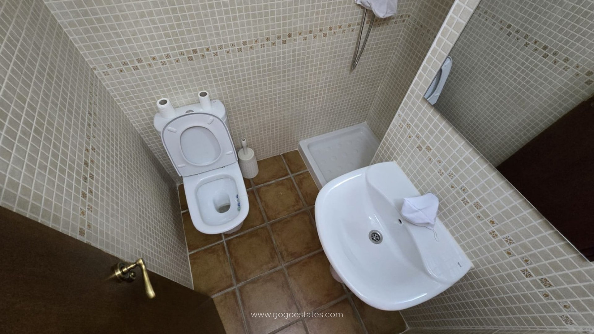Deze heerlijke twee-onder-een-kapwoning, gelegen in het wooncomplex 'Paradise Golf' op La Finca Golf, Algorfa, biedt een comfortabele en ruime woonomgeving. De woning is recent geschilderd en instapklaar, maar wordt ongemeubileerd verkocht, zodat u de woning naar eigen smaak kunt inrichten. Hoogtepunten van de woning Buitenruimte U vindt een tuin bij de ingang met parkeergelegenheid en een achterporch met barbecue die direct toegang biedt tot de woonkamer - perfect voor buitenentertainment. Indeling Begane grond: Beschikt over een gezellige woonkamer met open haard, een slaapkamer met inbouwkast, een toilet met douche en een keuken met een galerij. Eerste verdieping: Beschikt over een complete badkamer en twee extra slaapkamers, beide met inbouwkasten. Eén slaapkamer heeft een balkon, terwijl de andere een prachtig terras heeft. Bovenverdieping: Ga naar een terras-solarium met vrij uitzicht. Afmetingen en details Bebouwde oppervlakte: 100,68 m² Tuinoppervlakte: 69 m² Gemeenschap en kosten De urbanisatie biedt toegang tot een gemeenschappelijk zwembad, ideaal om te ontspannen. IBI (jaarlijkse onroerendgoedbelasting): € 276,71 Gemeenschapskosten: € 200 per kwartaal Deze bungalow biedt een fantastische combinatie van binnencomfort en buitenplezier, allemaal in een goed onderhouden gemeenschap.