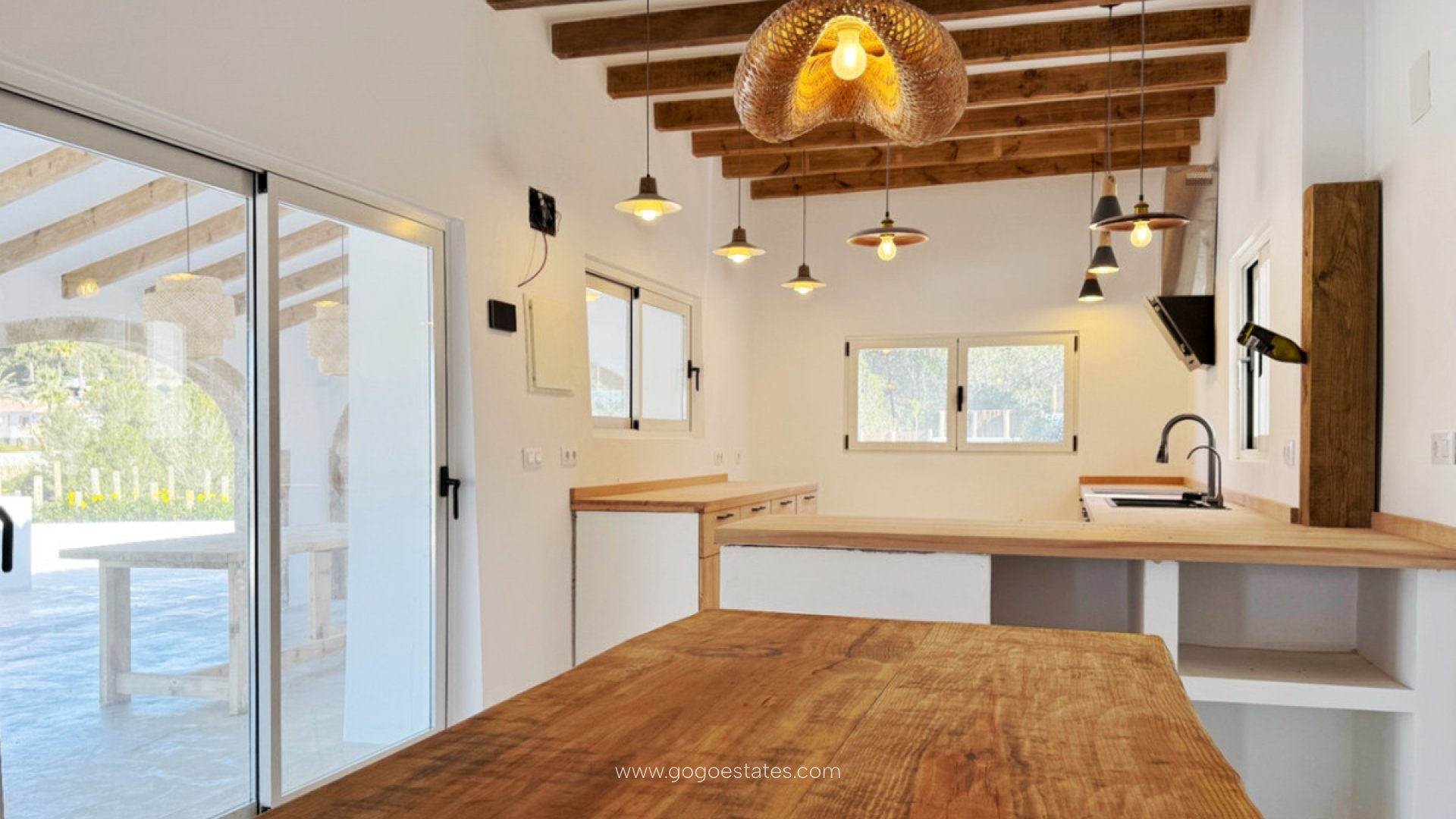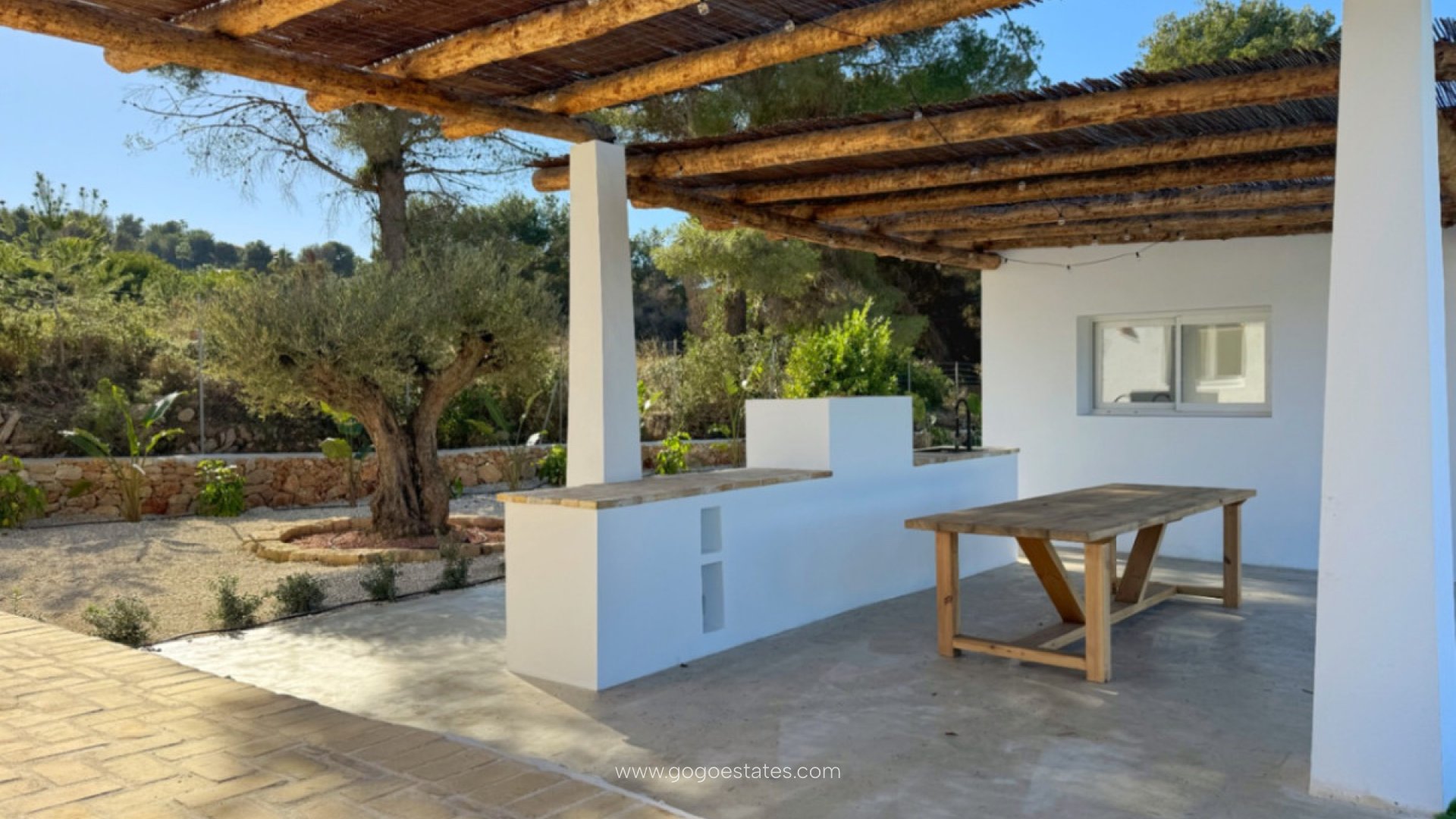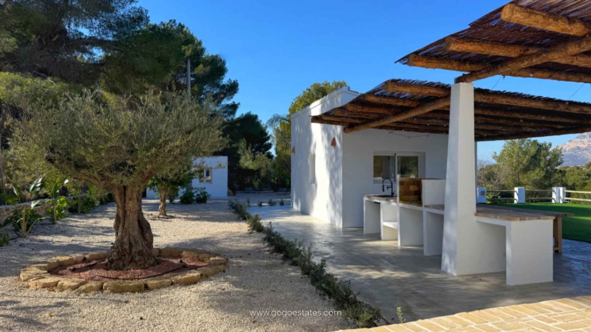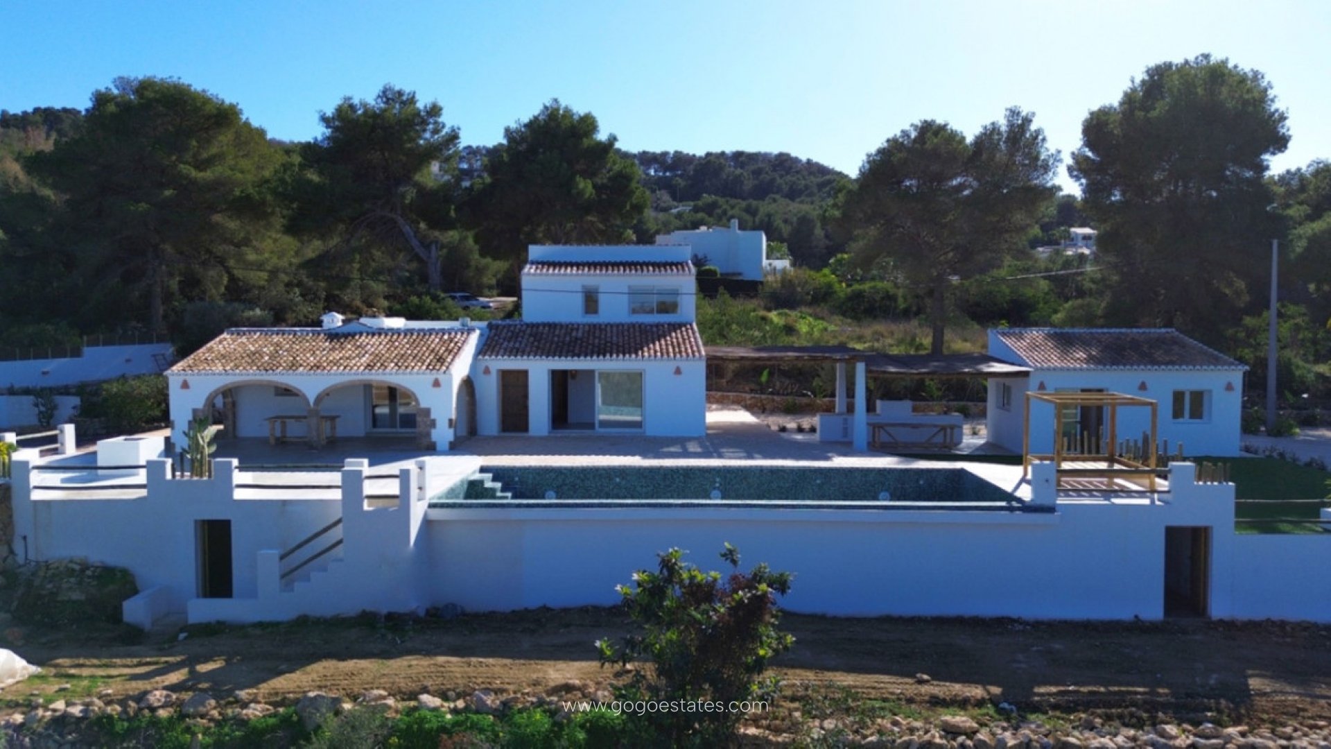 Villa in Ibiza-stijl in renovatie, gelegen op slechts een korte loopafstand van het Arenal-strand in Javea. Deze woning valt op door zijn spectaculaire overloopzwembad van 12x4,5 meter, met vrij uitzicht op de Montgó en de natuurlijke omgeving. Op een perceel van 3.000 m² heeft het hoofdhuis vier slaapkamers met eigen badkamer en een gastentoilet. Daarnaast heeft het een apart gastenverblijf, compleet met een slaapkamer, woonkamer en keuken. Een juweel voor wie op zoek is naar luxe en de nabijheid van de zee in een mediterrane omgeving.