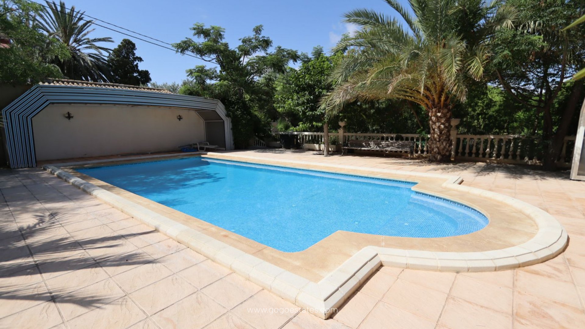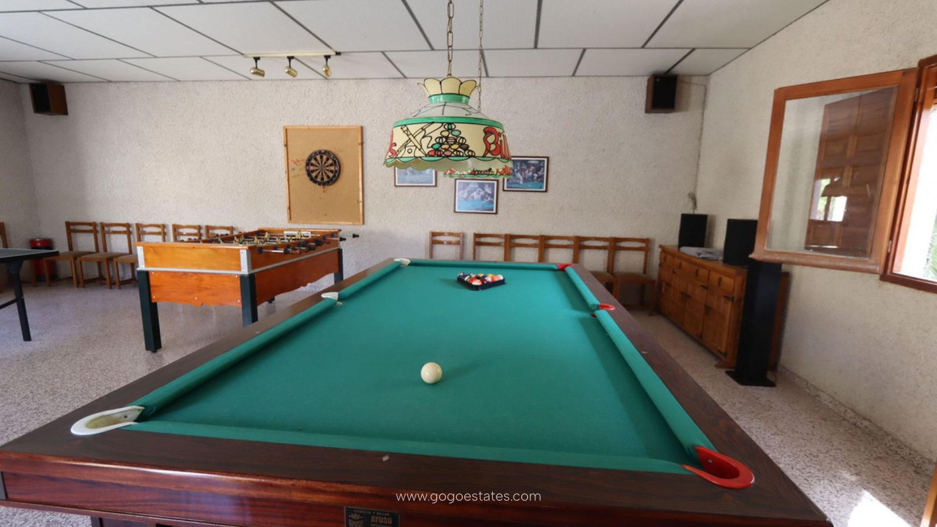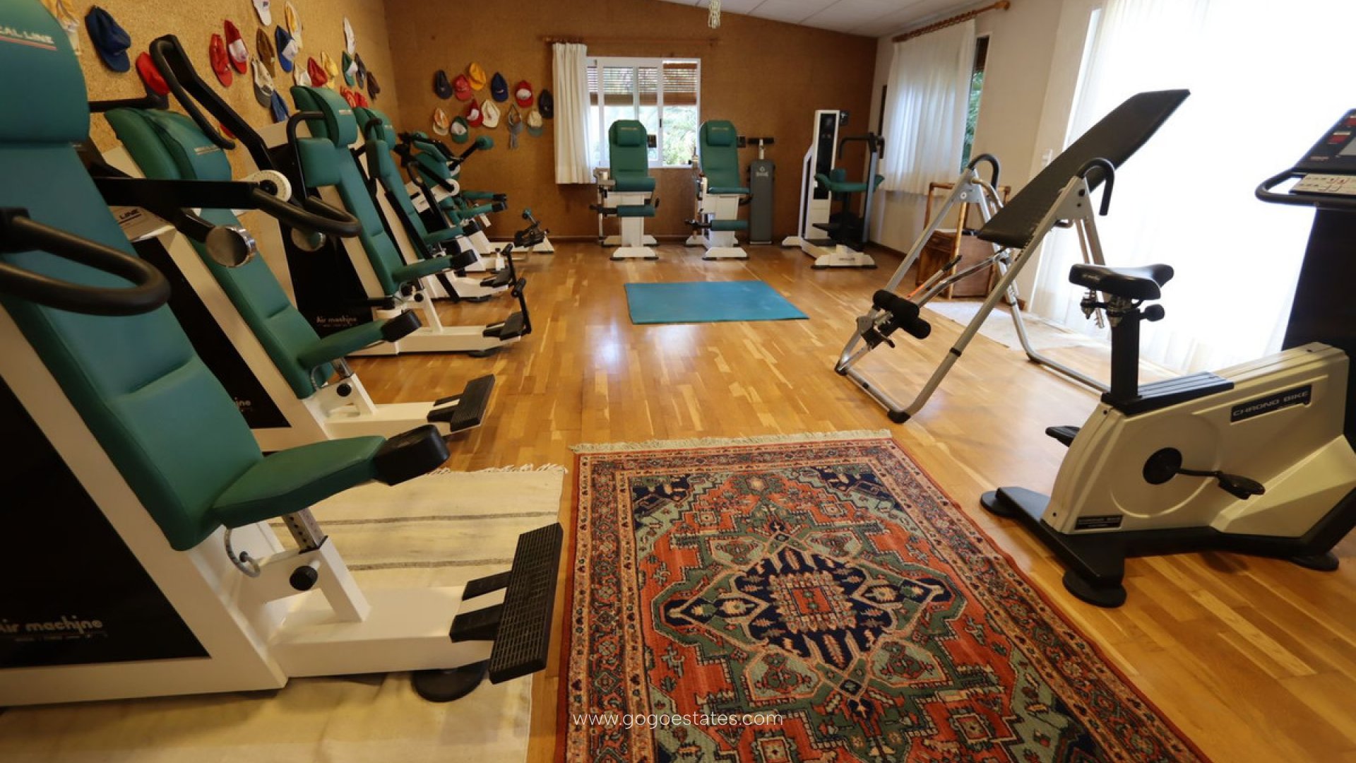 Vrijstaande villa, Mutxamel, Costa Blanca. 7 slaapkamers, 3 badkamers, bebouwd oppervlak 1050 m², terras 50 m², tuin/perceel 34000 m². Ligging: landelijk, dicht bij de stad. Staat: recent gerenoveerd. Zwembad: privé, binnen. Klimaatbeheersing: centrale verwarming, open haard. Uitzicht: landelijk. Voorzieningen: inbouwkasten, privéterras, fitnessruimte, speelkamer, gastenverblijf, berging, bijkeuken, en-suite badkamer, barbecue. Meubilair: niet gemeubileerd. Keuken: volledig ingericht. Tuin: privé. Beveiliging: omheind complex, 24-uurs beveiliging. Parkeren: garage, overdekt. Categorie: luxe.