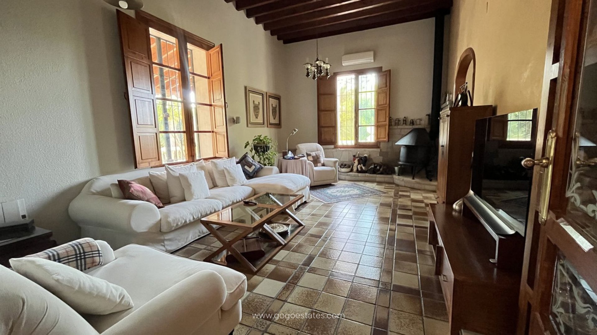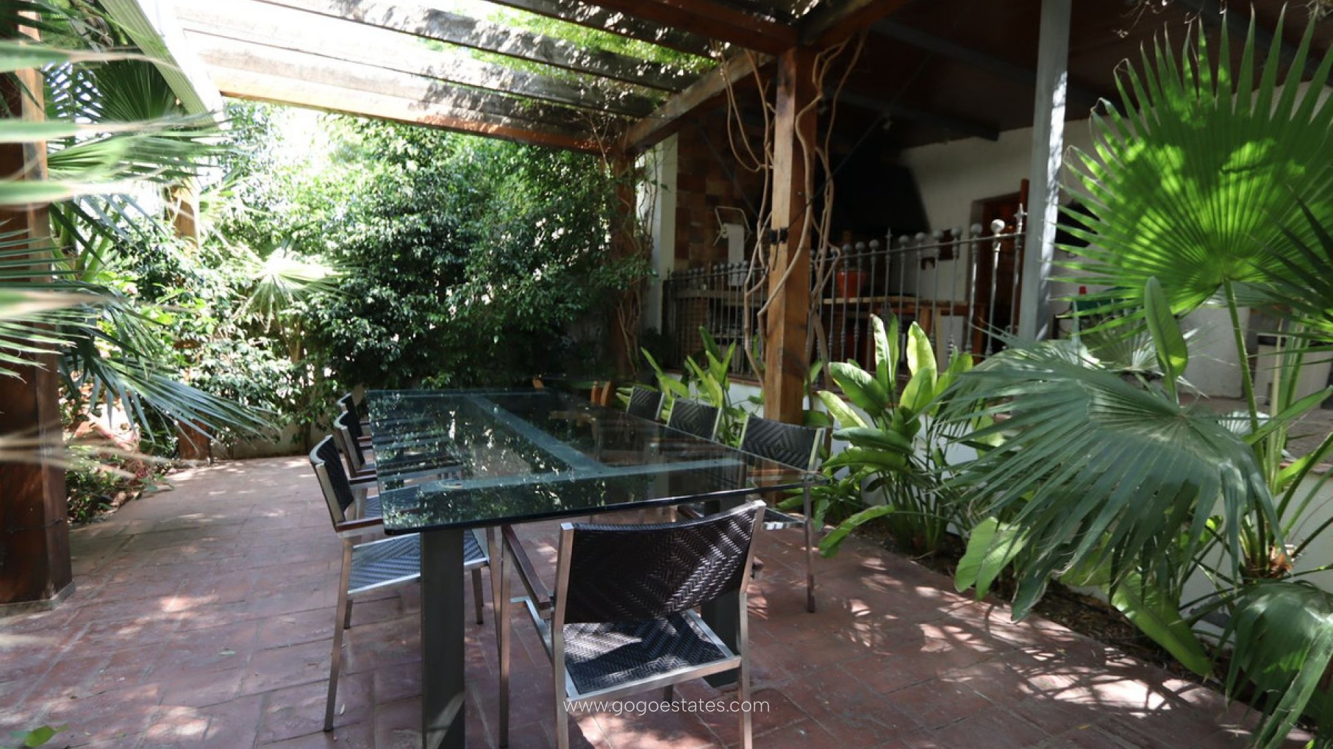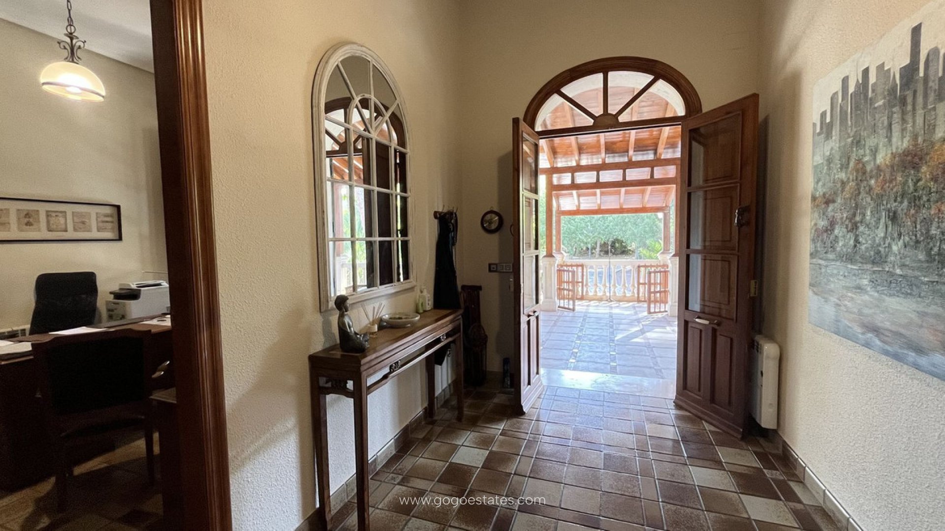 Vrijstaande villa, Mutxamel, Costa Blanca. 7 slaapkamers, 3 badkamers, bebouwd oppervlak 1050 m², terras 50 m², tuin/perceel 34000 m². Ligging: landelijk, dicht bij de stad. Staat: recent gerenoveerd. Zwembad: privé, binnen. Klimaatbeheersing: centrale verwarming, open haard. Uitzicht: landelijk. Voorzieningen: inbouwkasten, privéterras, fitnessruimte, speelkamer, gastenverblijf, berging, bijkeuken, en-suite badkamer, barbecue. Meubilair: niet gemeubileerd. Keuken: volledig ingericht. Tuin: privé. Beveiliging: omheind complex, 24-uurs beveiliging. Parkeren: garage, overdekt. Categorie: luxe.