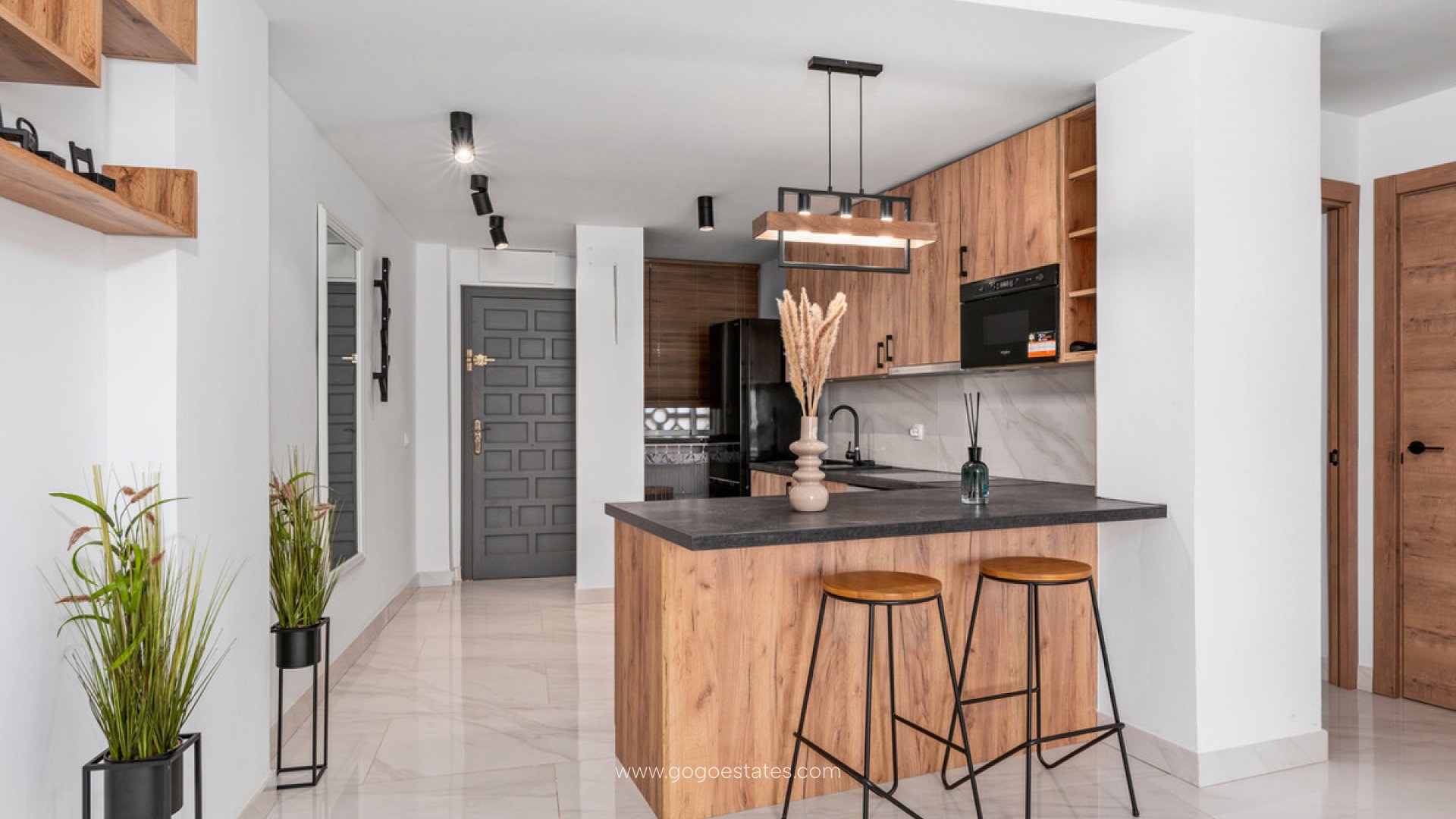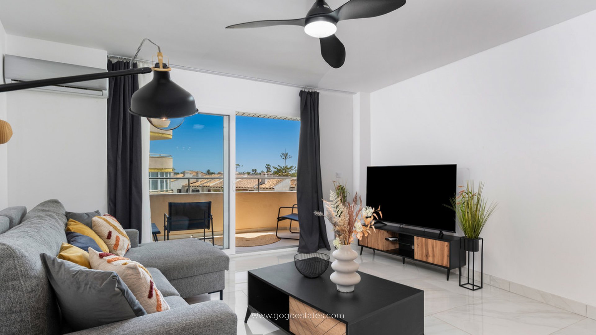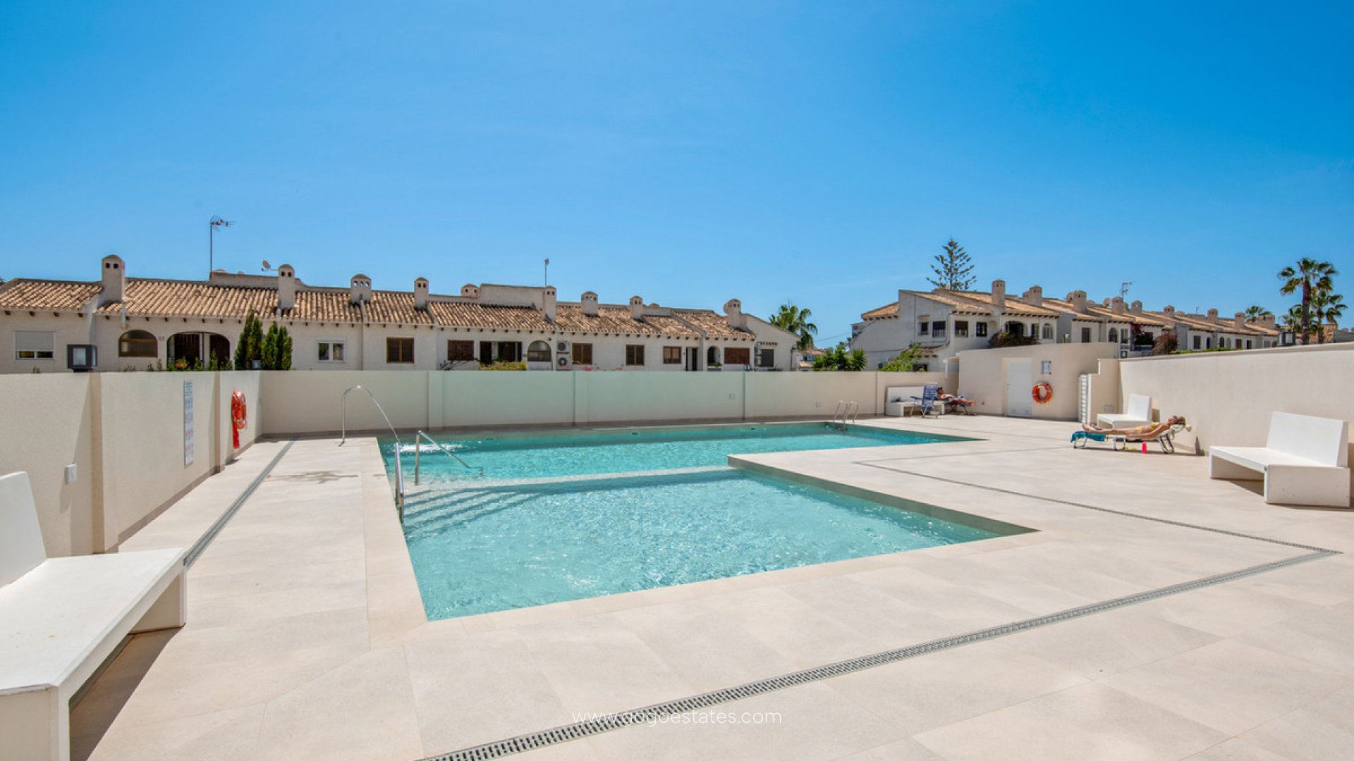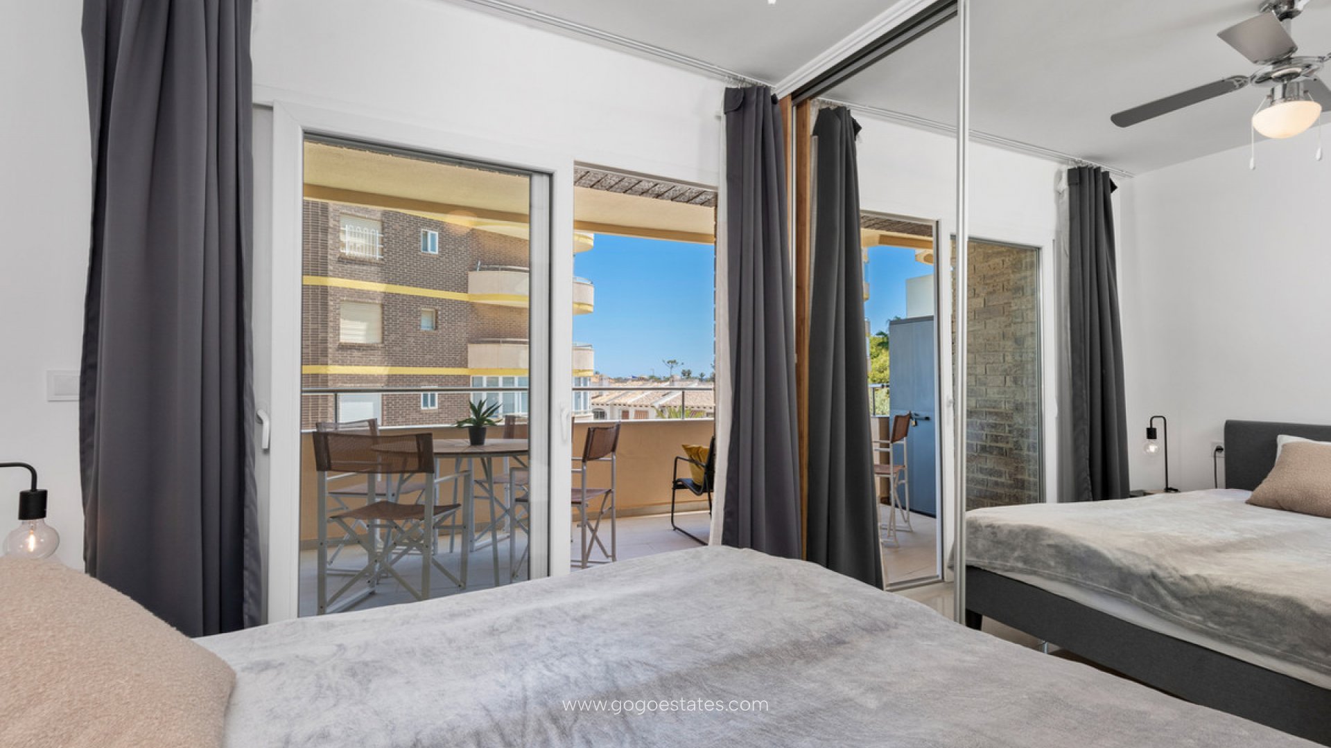 Fantastisch appartement op de eerste verdieping in La Zenia, Alicante en op slechts 700 meter van het strand van La Zenia! Het pand wordt volledig gemeubileerd verkocht, is volledig gerenoveerd, en bestaat uit een lichte ruime woon-/eetkamer met directe toegang tot het terras met uitzicht op de gemeenschappelijke groene zone met zwembad, een volledig uitgeruste open keuken, airconditioning (koeling/verwarming), twee slaapkamers, één badkamer met inloopdouche en een groot terras. Residentieel complex met zwembad, groene zones en parking. Dicht bij één van de beste zandstranden in de omgeving, op wandelafstand van bars, restaurants, dicht bij het populaire winkelcentrum Zenia Boulevard en verschillende golfbanen.