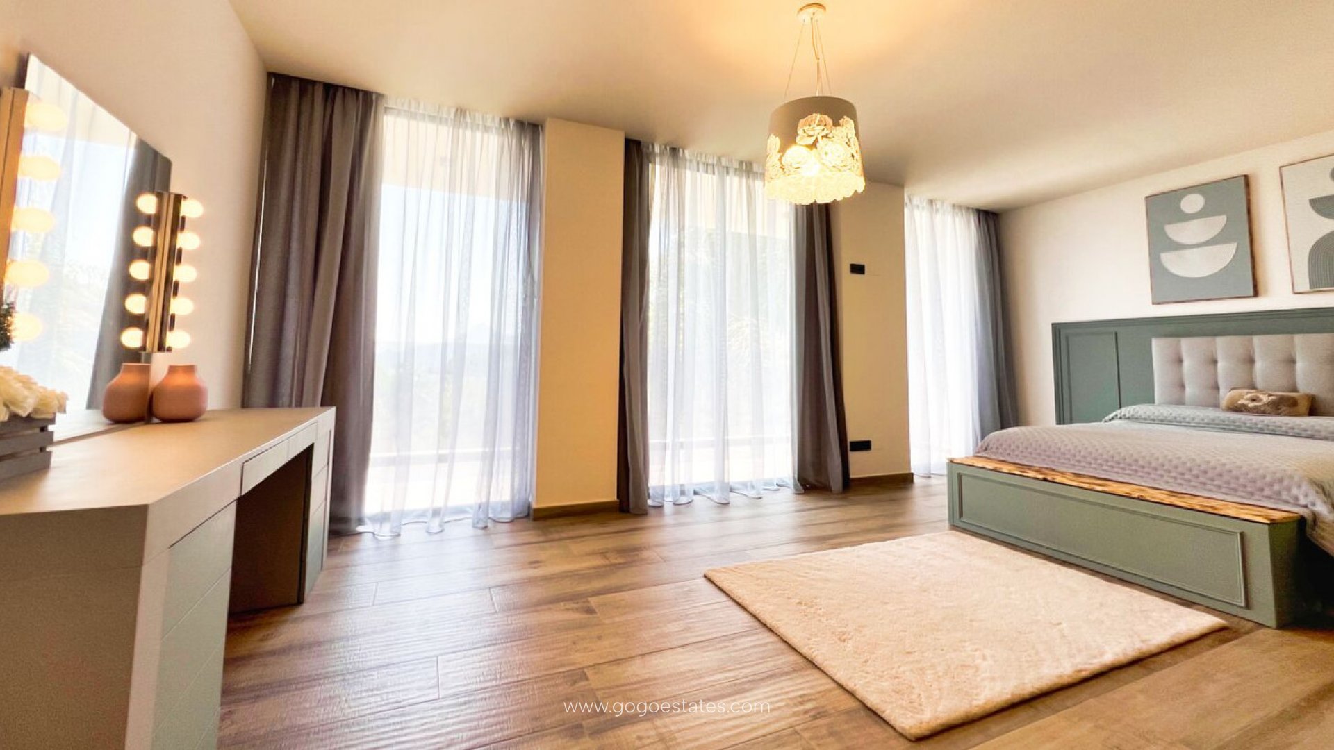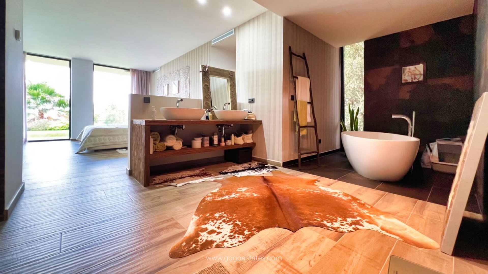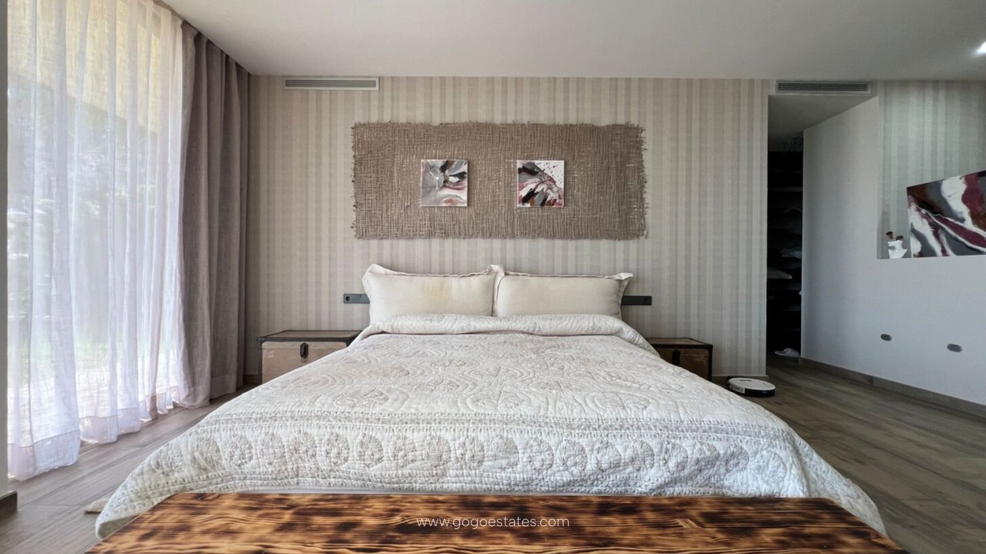We presenteren een verfijnde eigentijdse villa in de exclusieve gemeenschap van Altea Hills, die 24/7 wordt bewaakt om de veiligheid van de bewoners te garanderen. Deze elegante woning valt op door de ruime architectuur en het innovatieve interieurontwerp, dat een filosofie van open ruimtes, strakke lijnen en harmonie met de natuur hanteert. Vanaf de bevoorrechte locatie kun je genieten van een panoramisch uitzicht op de zee en de prachtige baai van Benidorm. Geniet van elke zonsopgang en zonsondergang in de vele kamers met terrassen, allemaal uitgerust met glazen overdekkingen en een geraffineerd ontwerp voor nachtverlichting. De slaapkamers zijn ruim en hebben ingebouwde kasten en grote en-suite badkamers, wat de mogelijkheid biedt om de ruimtes te personaliseren en te transformeren volgens je behoeften en voorkeuren. Het pand beschikt over een aantal luxe voorzieningen, waaronder een lift voor gemakkelijke toegang tot elk niveau, een groot zoutwaterzwembad voor zomerse dagen, een extra ruimte met jacuzzi en sauna voor uw momenten van ontspanning, een elegante Art Nouveau open haard voor koelere avonden, en ruime parkeergelegenheid voor meerdere voertuigen. Je vindt hier ook een extra halfopen slaapkamer en uitgestrekte groene zones verspreid over de vier niveaus van het pand, waardoor een sfeer van rust en kalmte wordt gecreëerd. Deze villa vertegenwoordigt de perfecte combinatie van luxe, design, spectaculair uitzicht en comfort, allemaal in een ongeëvenaarde omgeving, dus mis de kans niet om hier je ideale thuis van te maken!
