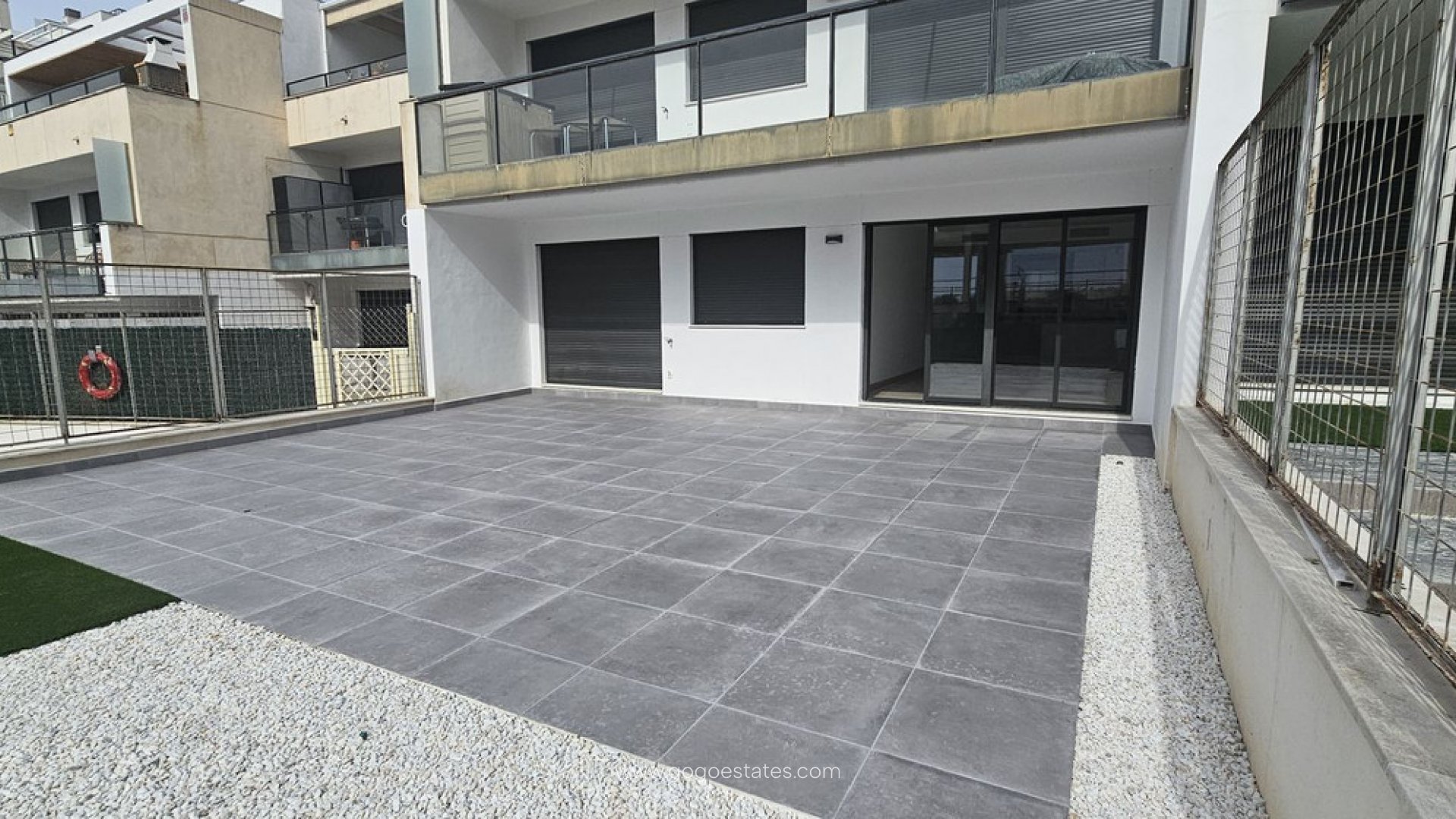 Begane grond appartement, Orihuela, Costa Blanca. 2 Slaapkamers, 2 Badkamers, Bouwoppervlakte 97 m², Terras 35 m². Ligging : Dichtbij golfbaan, Dichtbij winkels, Dichtbij bos, Urbanisatie. Zonorientatie : West. Huidige Staat : Onlangs gerenoveerd. Zwembad : Gemeenschappelijk. Klimaatbeheersing : Airconditioning, Vooraf geinstalleerde A/C, Warme A/C, Koude A/C. Uitzicht : Stedelijk. Extra's : Inbouwkasten, Privé terras, Sportschool, Dubbele beglazing, Optische vezel. Meubilering : Ongemeubileerd. Keuken : Gedeeltelijk ingericht. Tuin : Gemeenschappelijk, Privé. Beveiliging : Omheind complex, Elektrische rolluiken, Deurbel met intercom. Parkeergelegenheid : Ondergronds, Overdekt. Categorie : Investering, Modern.