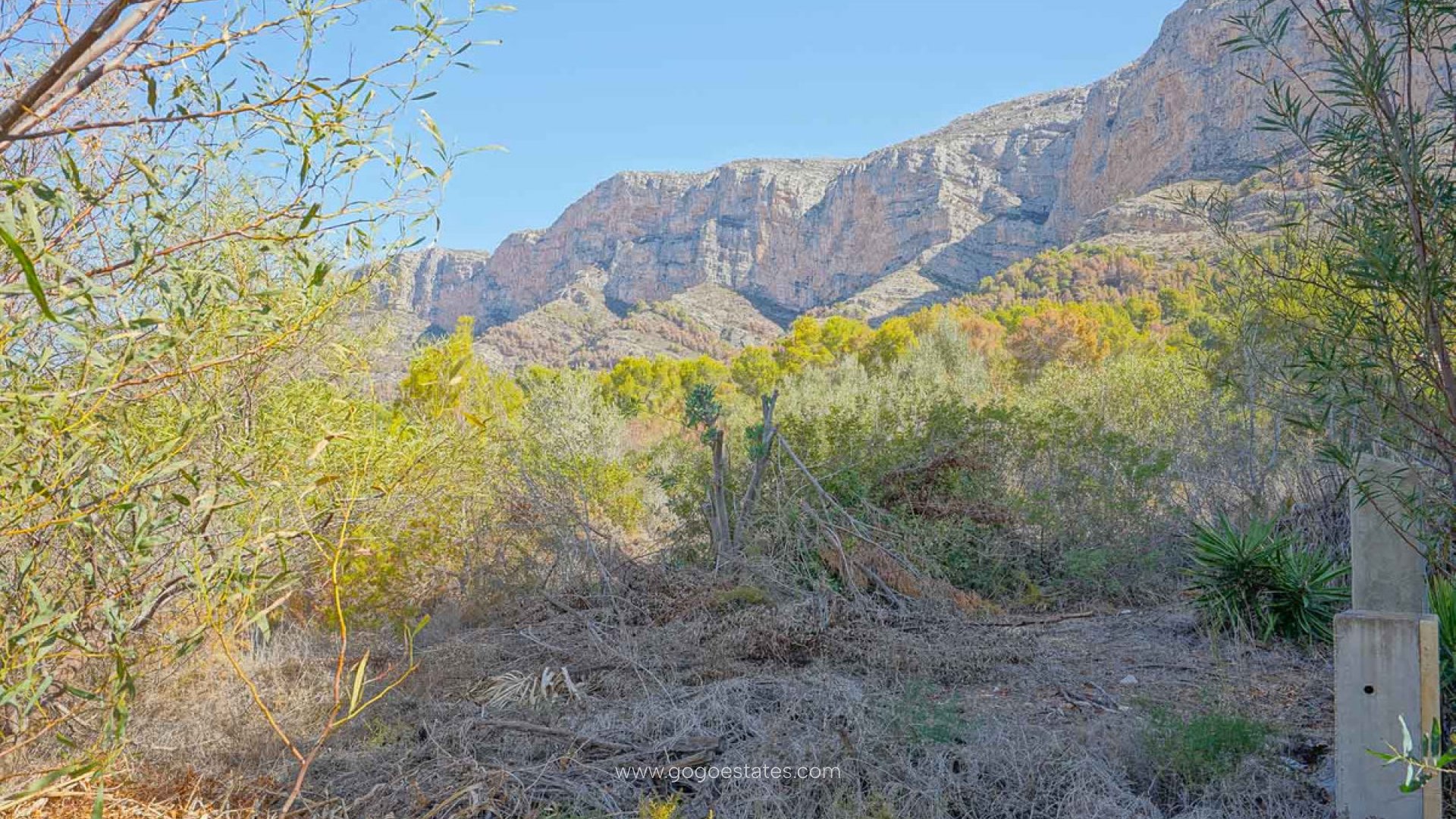 Dit grote grondstuk is gelegen op de zuidelijke flank van de Montgó. An de zuidkant is er een mooi open uitzicht over de vallei en de bergen en aan de noordkant kunt u van dichtbij genieten van de impressionante rotswanden van de Montgó. Het grondstuk is licht hellend en gelegen op de hoek van twee straten die al volledig geürbaniseerd zijn.