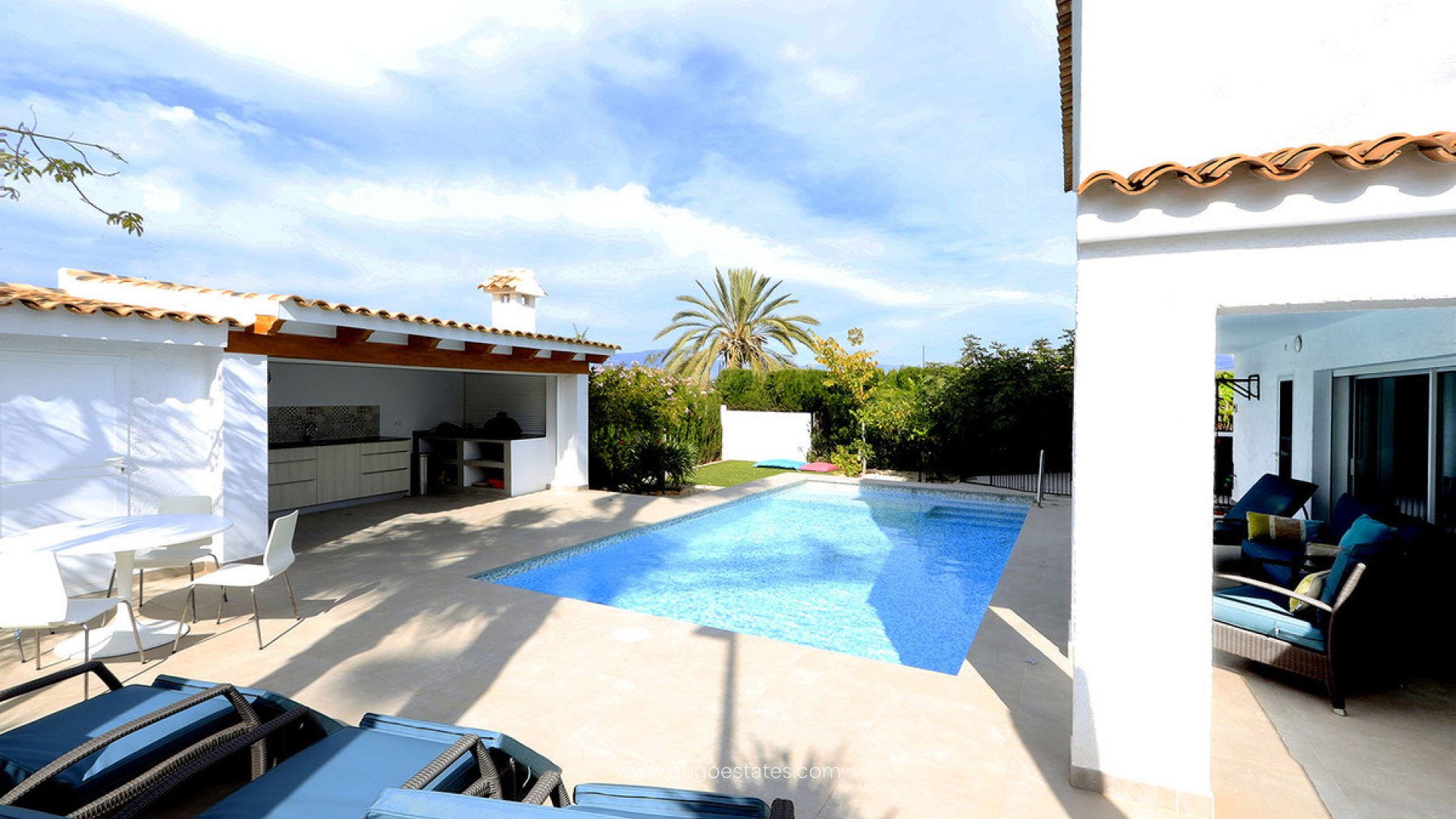 Zeer goed onderhouden familiewoning gelegen op een hoekperceel in een gevestigde rustige omgeving dicht bij de voorzieningen en op slechts 10 minuten loopafstand van het strand en de boulevard van Albir en 5 minuten loopafstand van supermarkt en restaurants. De woning is zeer smaakvol gerenoveerd in 2019 en heeft ruim open zicht op de bergen. De grotendeels gemeubileerde Mediterrane stijl villa bestaat uit 2 aparte delen verbonden door een overdekt terras. In totaal zijn er 6 slaapkamers, 5 badkamers en 2 toiletten. Buiten is er een verwarmd zwembad van 30m2, een jacuzzi, een groot zonneterras, een opslagplaats, een technische ruimte, en een buitenkeuken met BBQ die afgesloten wordt met een elektrisch rolluik. Het omheinde perceel is toegankelijk via een voetgangerspoort en een automatische toegangspoort voor auto's. Verder is er een mooie volgroeide tuin met irrigatiesysteem, fruitbomen en kunstgras.