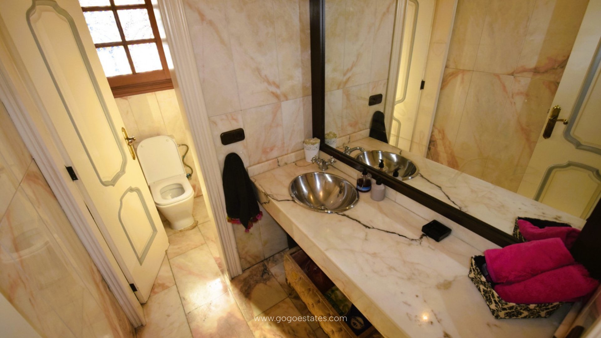 Wij presenteren deze bijzondere, charmante en unieke villa in Torrevieja, in de regio Aguas Nuevas. Op een hoekperceel van 1060 m² staat deze luxe villa, volledig uitgerust om van te genieten. De villa beschikt over 8 slaapkamers en 5 badkamers, 1 toilet en zelfs een volledig uitgerust gastenverblijf van 80 m², met een slaapkamer, een badkamer, een Amerikaanse keuken en een woon-eetkamer! De villa heeft 2 verdiepingen. Een groot zwembad en een garage voor meerdere voertuigen. Op de begane grond vinden we een enorme hal met een plafondhoogte van 9 meter, een kantoor (dat als slaapkamer kan worden gebruikt), een slaapkamer met inbouwkast en een complete badkamer en suite, een gastentoilet, een grote woonkamer met open haard en luxe meubilair, een keuken-eetkamer met galerij en een garage voor twee auto's. Op de tweede verdieping vinden we 6 slaapkamers, 3 badkamers waarvan 2 en suite, diverse kleedkamers en twee terrassen. De villa beschikt over een grote kelder in de kelder. Het is toegankelijk via twee straten en ligt op slechts 850 meter van de zee en 450 meter van de supermarkt, met vrij uitzicht op een park met sportvelden. Kom gerust langs om het te bekijken, het wordt gemeubileerd verkocht. Prijs/prijs - €1500