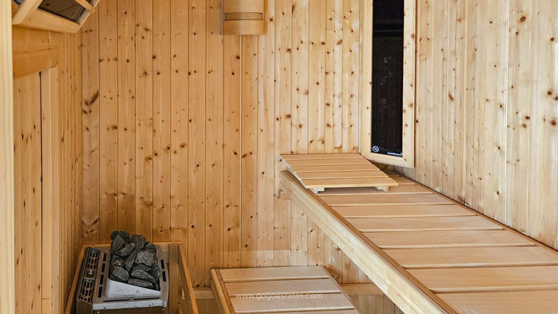 Deze prachtige villa is gelegen op een vlak perceel van 780 m², gelegen in de rustige heuvels van Benissa, in een zeer rustige woonwijk. Met een bevoorrechte ligging op slechts 2,5 kilometer van de kust, biedt de woning een uitstekende balans tussen rust, privacy en gemakkelijke toegang tot de prachtige stranden van de Costa Blanca. Verdeeld over twee verdiepingen heeft de villa een gezellige woonkamer met open haard, een volledig uitgeruste keuken, drie ruime slaapkamers en drie complete badkamers. Voor uw comfort is de woning voorzien van airconditioning, radiatorverwarming en zonnepanelen, waardoor het een ideale optie is voor wie op zoek is naar een duurzame en energiezuinige woning. Buiten nodigt een ruim terras op de eerste verdieping, met een comfortabele luifel, u uit om te genieten van het buitenleven en het uitzicht op de natuurlijke omgeving. Een elegante wenteltrap leidt naar het dak, een perfecte plek om van 's morgens vroeg tot 's avonds laat te zonnebaden, omringd door adembenemende panorama's. Het zwembad, omgeven door een ruim zonneterras, biedt de ideale plek om te ontspannen en af te koelen tijdens de warme zomerdagen. Bovendien heeft het voor meer comfort een buitendouche en een charmant overdekt terras, perfect om 's avonds te genieten in het gezelschap van vrienden en familie. De villa ligt op slechts vijf minuten rijden van de beroemde kust van Benissa, bekend om zijn kristalheldere water en verborgen baaien, waar u kunt genieten van wateractiviteiten, kunt ontspannen in de zon en de heerlijke lokale keuken kunt proeven. Een woning die klassieke stijl combineert met modern comfort, in een natuurlijke en rustige omgeving, ideaal om het hele jaar door te wonen of te genieten van een vakantie aan de Middellandse Zeekust.