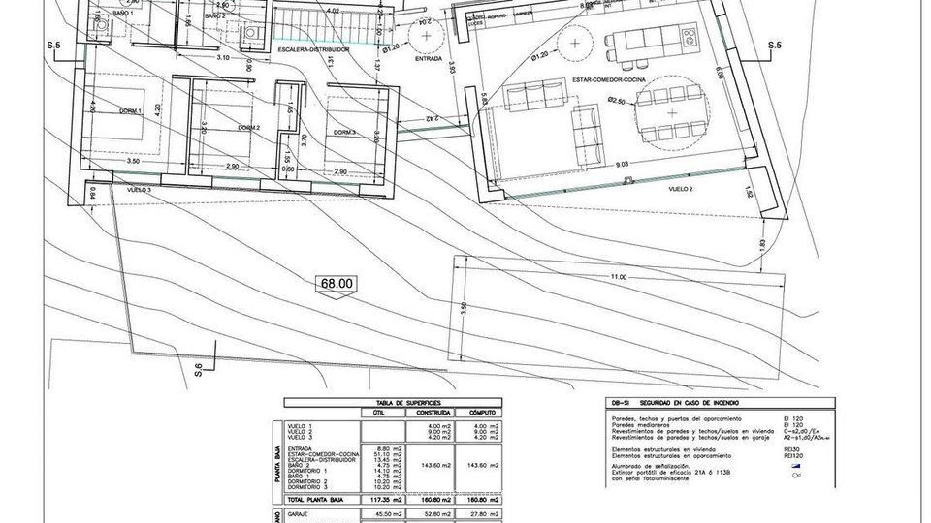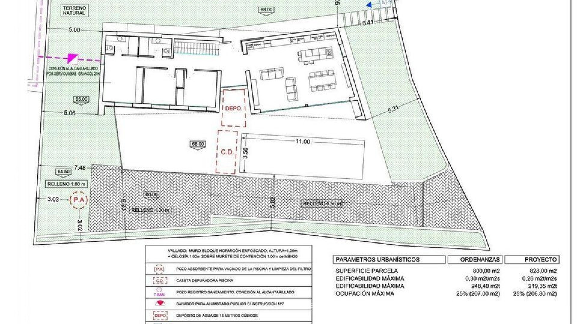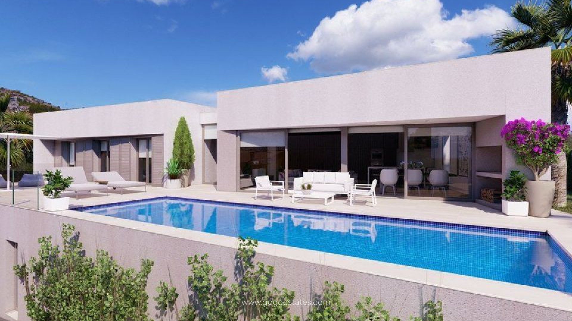 De villa is verdeeld over twee verdiepingen. Op de begane grond is er een garage met ruimte voor 2 auto's en een directe toegang deur naar het interieur, waar zich een slaapkamer met en-suite badkamer en kleedkamer, een wasruimte, een toilet en een spa-gedeelte voor ontspanning en recreatie bevindt. Een interne trap leidt naar de bovenverdieping, waar zich een entreehal, een moderne volledig uitgeruste open keuken en een ruime woonkamer/eetkamer bevinden, met directe toegang tot het terras en het zwembad. Aan de andere kant van deze verdieping is de slaapzone met drie slaapkamers, de hoofdslaapkamer met en-suite badkamer en de andere twee slaapkamers die een badkamer delen. Alle slaapkamers hebben directe toegang tot het zwembadterras via hoogwaardige schuiframen. De keuken is uitgerust met hoogwaardige apparaten zoals een oven, magnetron, bordenwarmer, twee gecombineerde koelkasten met vriezer, vaatwasser en een in het plafond ingebouwde afzuigkap boven de kookplaat. Er zijn ook vloer-tot-plafond kasten, lades, hoge kasten, niches met LED-verlichting en een aparte kookeiland. De wasruimte is voorzien van een gootsteen, wasmachine, droger, waterontharder, een 250-liter warmtepompboiler en een inertie tank. Bovendien is de villa voorzien van airconditioning met zowel warme als koude lucht door kanalen, met onafhankelijke thermostaten in elke kamer en vloerverwarming op basis van een laag verbruik warmtepomp door de hele villa. De villa is uitgerust met aluminium buitenschrijnwerk met thermische onderbreking en uitstekende thermische en akoestische isolatie. Er zijn gemotoriseerde rolluiken of jaloezieën in de slaapkamers en het glaswerk is van lage-emissiviteit glas voor uitstekende thermische isolatie, hoge lichttransmissie en bescherming tegen zonnestraling. De binnendeuren zijn van Etimoe fineerhout op de bovenverdieping en wit gelakt op de begane grond, met verborgen scharnieren en magnetische sloten. De badkamers zijn uitgerust met hoogwaardige sanitaire voorzieningen, thermostatische douches met regeneffect en niches met RGB LED-verlichting. Bovendien heeft het huis een voorbereidingssysteem voor een binnen- en buitens alarmsysteem, halogeenverlichting en lampen binnen en buiten, TV- en internetinstallaties in de belangrijkste kamers, een fotovoltaïsch systeem en een verwarmd zwembad met automatische dekking, RGB LED-verlichting en een warmtepomp. De tuin is onderhoudsvriendelijk en het warme water wordt geleverd door aerothermische verwarming in combinatie met een zonnepaneel. Er zijn twee deuren, één voor voetgangers met videophone en één voor gemotoriseerde voertuigen, en de toegang tot de garage en de parkeerplaats is betegeld met antislip klinkers. Het spa-gedeelte heeft ramen binnen het zwembad, binnenverlichting met RGB en halogeen, een voorbereidingssysteem voor een jacuzzi, een bar, een TV/cinema-gedeelte en ruimte voor een biljarttafel. De villa ligt in een van de mooiste woonwijken van de Costa Blanca. De steden Calpe, Benissa en Moraira bieden een uitzonderlijk aantrekkelijk kustgebied van groot landschappelijk en ecologisch belang, met een ruige kustlijn en talloze stranden en verborgen baaien. Op slechts 1,5 km van deze uitzonderlijke woning ligt Playa de la Fustera, een zandstrand tussen de Les Basetes jachthaven en Cala Pinets. Dit strand heeft de "Blauwe Vlag" gekregen als erkenning voor de kwaliteit van het water en de vele beschikbare diensten, zoals de promenade, wandelpaden, toegang voor gehandicapten, een speeltuin, sportfaciliteiten, een Rode Kruis-post, bushaltes, parkeerplaatsen, maritieme bewaking, cafés en restaurants.