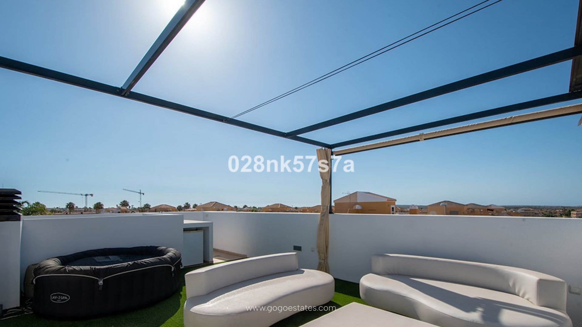 Instapklare woning in de populaire woonwijk Ciudad Quesada in Rojales. Op slechts 10 minuten rijden van de spectaculaire stranden van Guardamar en Torrevieja, en vlakbij het prachtige natuurpark La Lagunes de La Mata. Alle dagelijkse benodigdheden, zoals supermarkten, banken, apotheken, bars en restaurants, zijn op korte rijafstand van de woning te vinden. De luchthaven van Alicante ligt op slechts 45 minuten rijden met de auto. Prachtig gepresenteerde woning verdeeld over twee verdiepingen plus een solarium, met 3 slaapkamers, 2 badkamers (waarvan één en-suite) en een gastentoilet. De ruime en lichte woonkamer combineert de keuken, eetkamer en woonkamer in één ruimte, die uitkomt op een terras op het zuidwesten met een privézwembad en een eethoek in de buitenlucht. De hoofdslaapkamer met en-suite badkamer bevindt zich op de begane grond, de overige 2 slaapkamers en een gedeelde badkamer bevinden zich op de eerste verdieping. Het ruime terras op de eerste verdieping leidt naar het solarium, de perfecte plek om te genieten van het klimaat van de Costa Blanca, met een pergola overdekte loungehoek met kunstgras en een zomerkeuken. De woning beschikt over een volledig geïnstalleerde airconditioning (warm/koud), huishoudelijke apparaten, een privézwembad en parkeergelegenheid op het terrein.