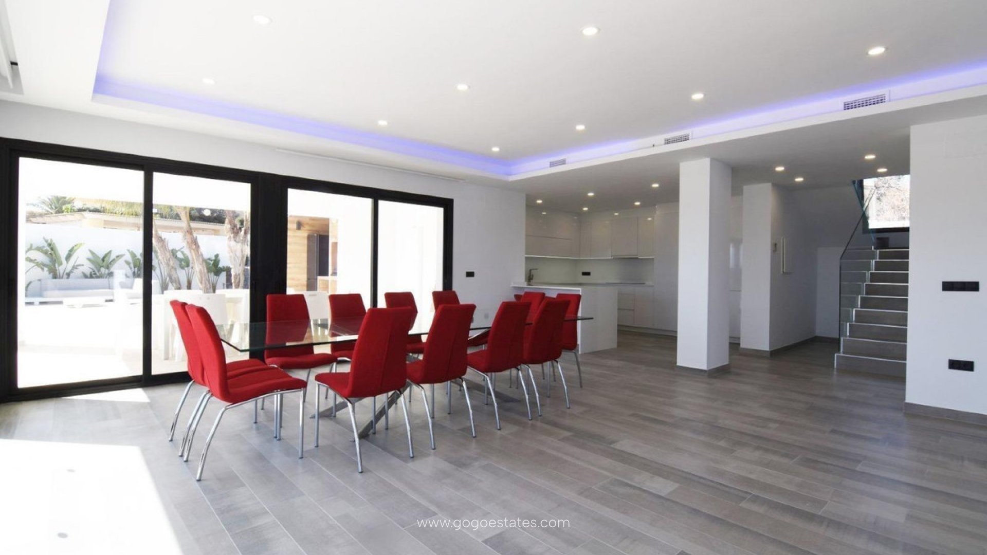 Welkom in je nieuwe paradijs! Deze spectaculaire moderne villa, verdeeld over twee verdiepingen, is de droom die uitkomt waar je altijd al naar op zoek was. Met zes ruime slaapkamers en vier ensuite badkamers (plus een familiebadkamer) is er genoeg ruimte voor het hele gezin of je beste vrienden. De open keuken sluit perfect aan op een lichte woonkamer waar het nooit aan lachen zal ontbreken. Op de bovenverdieping hebben drie slaapkamers directe toegang tot een indrukwekkend terras van 41 m²; perfect om van de zonsopgang te genieten terwijl je van je koffie nipt! ~~Het exterieur zal je betoveren: ontspan bij een dromerig privézwembad of organiseer barbecues onder de bomen in prachtige tuinen die zijn uitgerust met automatische irrigatie. Plus, je hebt ruime parkeergelegenheid voor maximaal vier auto's en zelfs een afgesloten garage.~~Met elektrische rolluiken en een complete verwarmings-/koelinstallatie via centrale airconditioning... is comfort het hele jaar door gegarandeerd! En laten we de ongelooflijk gunstige ligging vlakbij La Fustera Beach (slechts 1 km) en La Fossa Beach (1,9 km) niet vergeten. Dit huis combineert moderne luxe zonder stijl of comfort op te offeren; kom genieten van het beste van de Middellandse Zee!