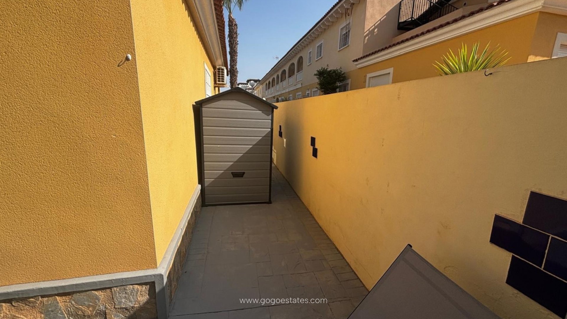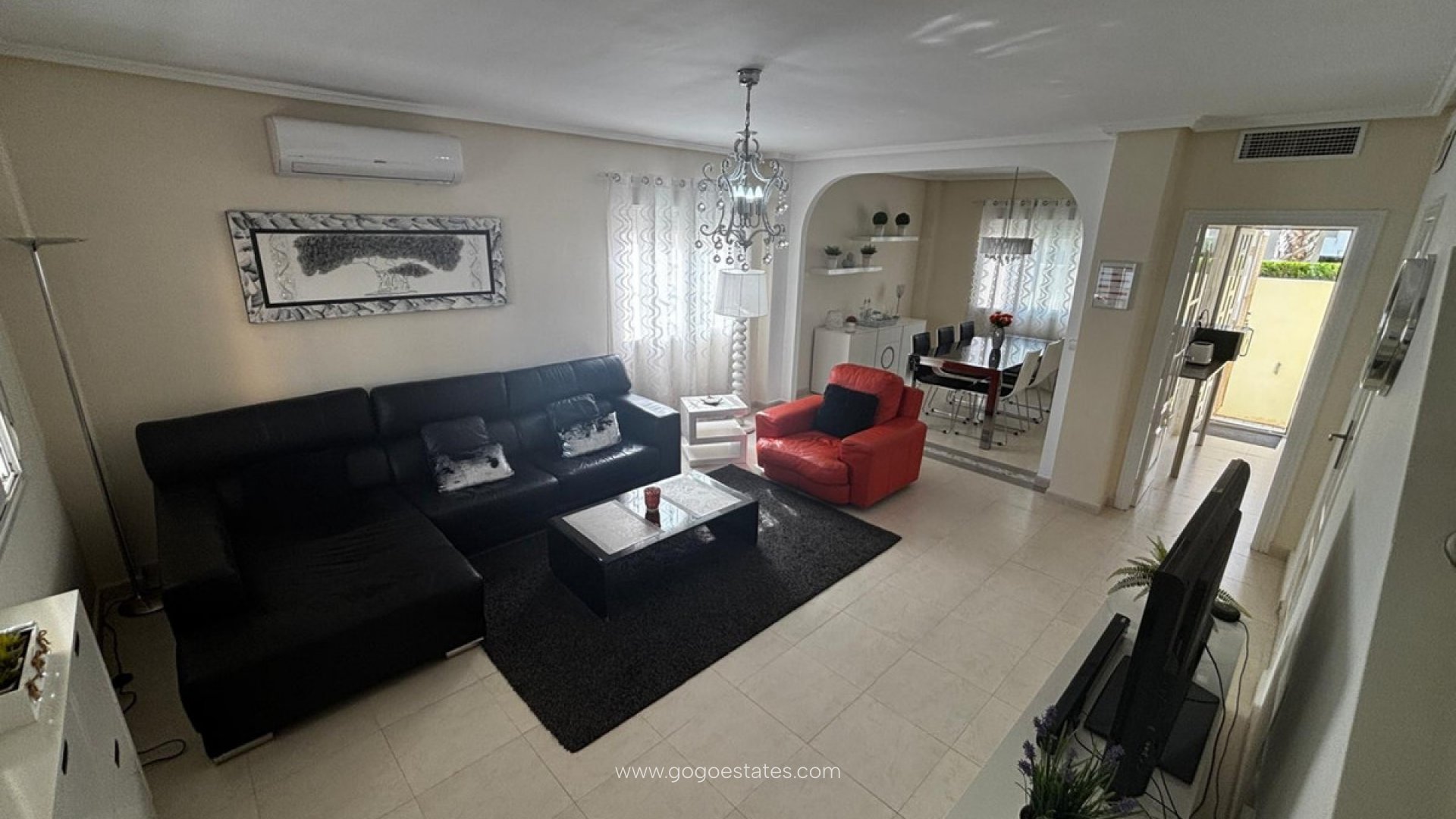 We zijn verheugd om deze prachtige halfvrijstaande woning met 2/3 slaapkamers in Lola-stijl te mogen aanbieden, gebouwd door Euromarina in 2007, in de zeer gewilde wijk Dona Pepa, in een beveiligde woonwijk. De woning is door de huidige eigenaren tot een zeer hoge standaard verbeterd. De woning profiteert van een hoekligging, met voor- en achtertuinen en een zij-ingang. De buitenmuren zijn verhoogd voor extra privacy en er is een bijkeuken toegevoegd met een wasmachine en een berging. Binnen in de woning hebben de huidige eigenaren een woon- en eetkamer behouden. Deze eetkamer kan indien gewenst eenvoudig worden omgebouwd tot een derde slaapkamer. Het meubilair, dat bij deze woning is inbegrepen, is van uitzonderlijke kwaliteit. Dit is werkelijk een instapklare woning, waar u vanaf het moment dat u binnenstapt kunt genieten. De kleine wijk Alegria beschikt over een fantastisch gemeenschappelijk zwembad met prachtige tuinen. Op korte loopafstand vindt u diverse supermarkten, bars en restaurants.