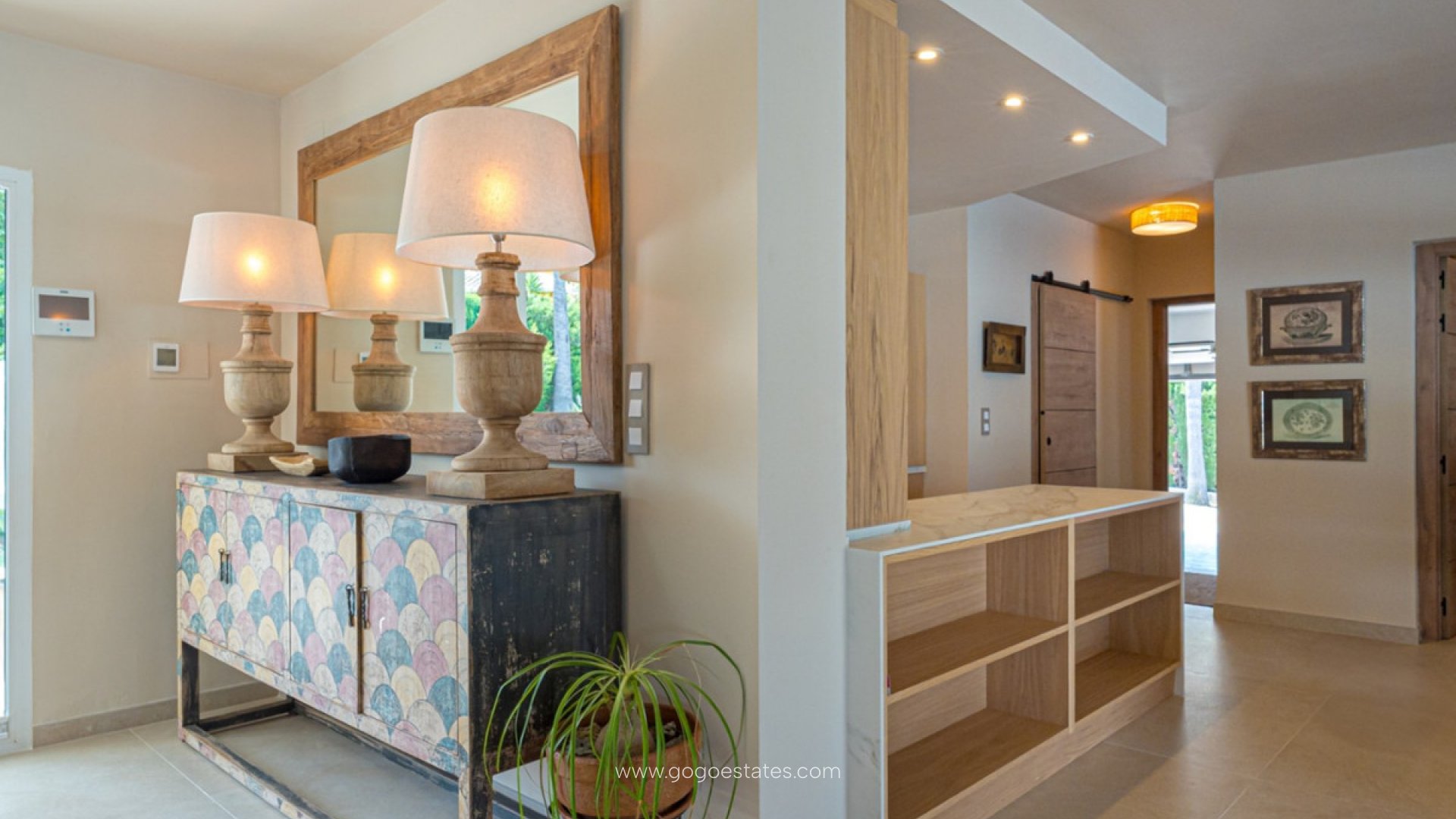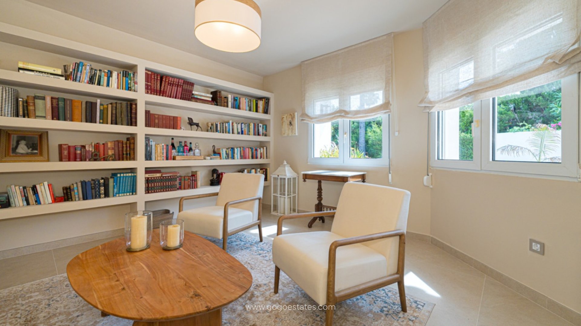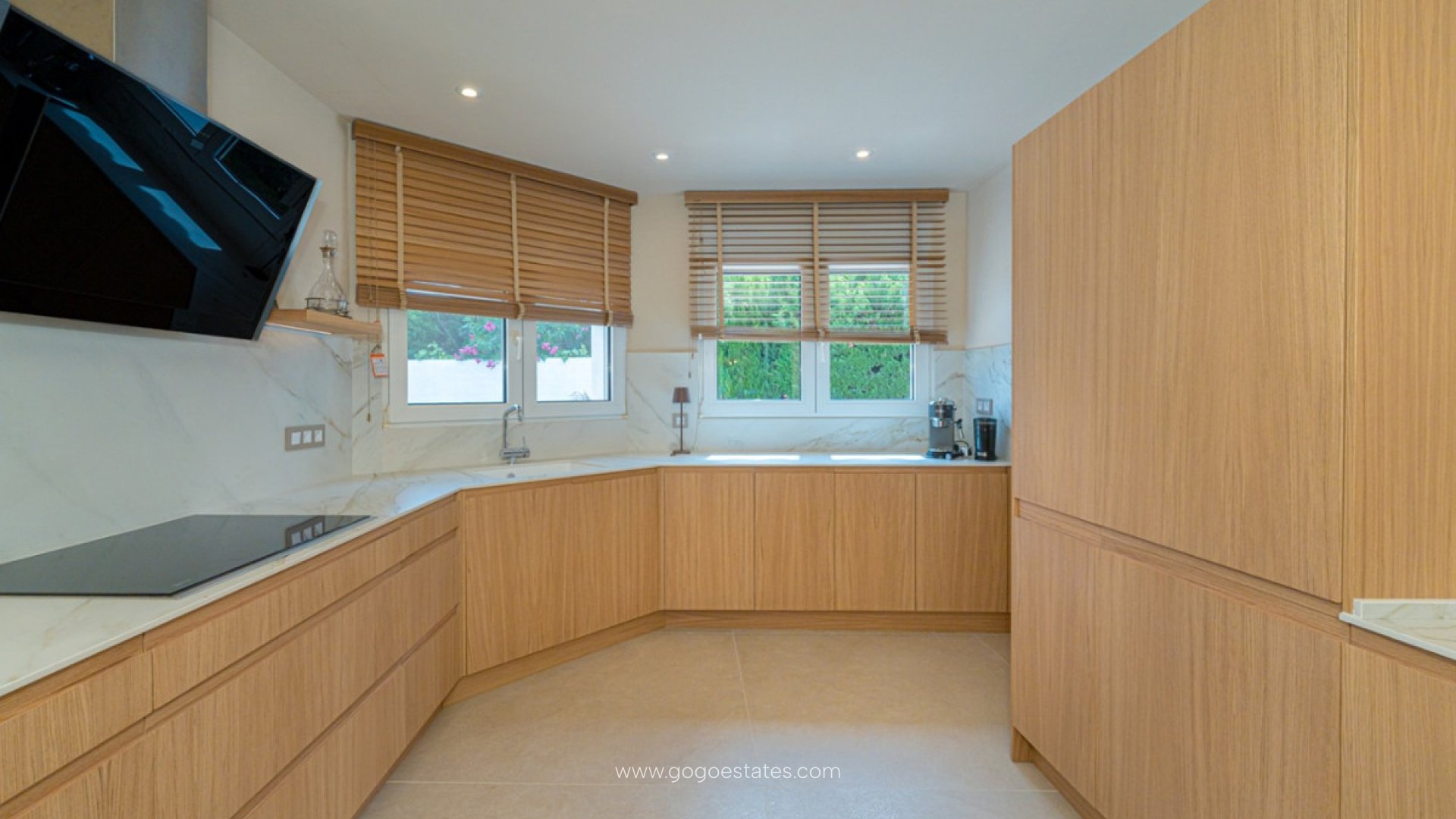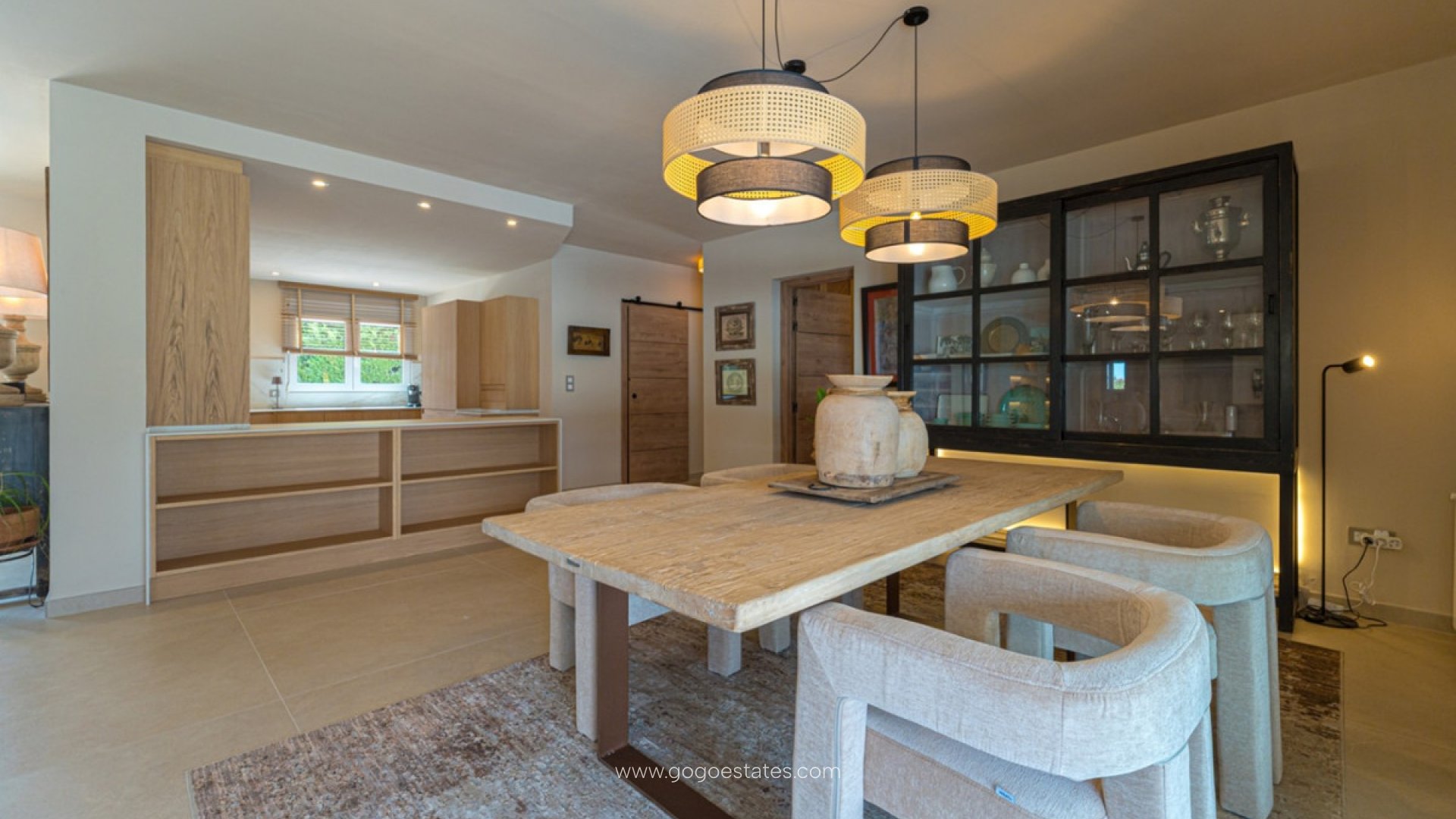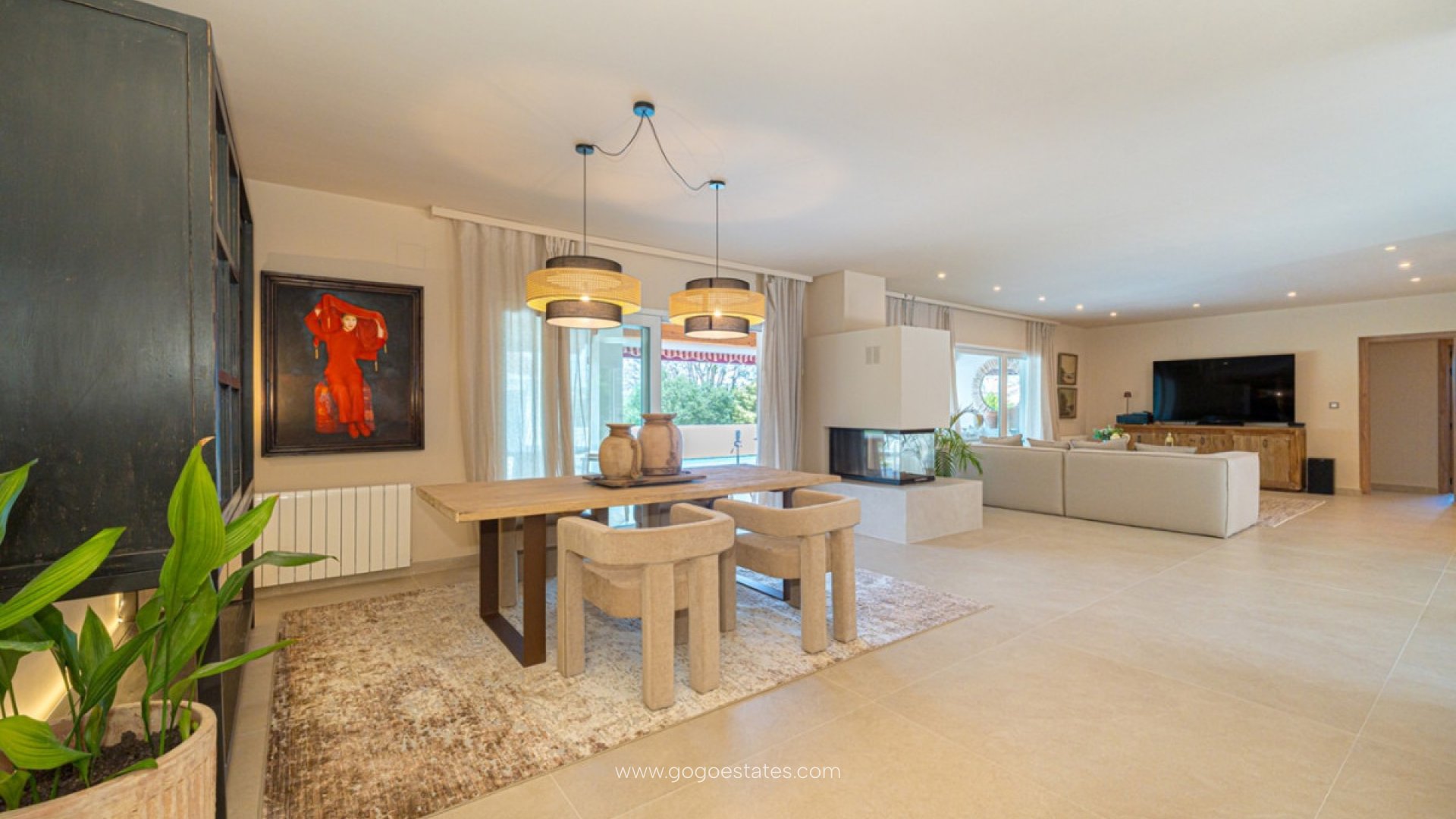 Beschrijving van de woning: Volledig gerenoveerde villa, klaar voor bewoning in 2025, met luxe kwaliteiten, te koop in Denia (Alicante). De villa is gelegen in de wijk Montgó en biedt de exclusieve sfeer van de Costa Blanca. De villa heeft een eigentijds architectonisch ontwerp met hoogwaardige afwerkingen en ruime terrassen met glazen wanden. Opvallend zijn de grote ramen en het heldere uitzicht op de bergen, evenals de goed onderhouden mediterrane tuin en het majestueuze privézwembad op het zuiden, dat de woning overspoelt met natuurlijk licht. De indeling van het interieur is zorgvuldig ontworpen met oog voor elk detail voor uw comfort in een moderne villa. Een zeer ruime woon-/eetkamer met open haard integreert met de volledig uitgeruste moderne open keuken en hoogwaardig meubilair. De slaapkamers zijn voorzien van inbouwkasten met hoogwaardig hout en de luxe afwerking omvat split-airconditioning in de slaapkamer, centrale verwarming, dubbele beglazing en een prachtige open haard. Daarnaast beschikt de woning over een grote afgesloten garage bij de ingang, plus nog een buitenruimte en een parkeerplaats, evenals een enorme berging, waarmee de dagelijkse voorzieningen compleet zijn. Buiten beschikt de villa over uitgebreide recreatie- en wellnessruimtes. Naast het grote zwembad bevindt zich een zomerkeuken, perfect voor bijeenkomsten in de buitenlucht, samen met een buitendouche. Het ruime overdekte terras biedt u de mogelijkheid om in elk seizoen te genieten van het mediterrane klimaat. De uitgestrekte privétuin omringt het huis en creëert een ideale omgeving voor ontspanning. Andere opmerkelijke voorzieningen zijn een privégarage en extra bergruimtes. Belangrijkste punten: Grote ruimtes: 4 slaapkamers, 2 badkamers en een gastentoilet (359 m²) op een perceel van 1.888 m². Een van de slaapkamers is omgebouwd tot woonkamer en bibliotheek. Gelijkvloers en groot perceel: het hele huis is gelijkvloers en gelegen op een groot perceel. Uitzicht op de Montgó Volledig gerenoveerd in 2025 met luxe afwerking en een moderne Amerikaanse keuken. Het hele jaar door zonnig. Ruim privézwembad en mediterrane tuin, op het zuiden gelegen, zeer zonnig. Grote woon-eetkamer met open haard en panoramische ramen. Buiten zomerkeuken en buitendouche om van het klimaat te genieten. Grote afgesloten garages en extra bergruimtes voor opslag. Ruim voldoende ruimte om uw auto's en persoonlijke bezittingen op te bergen. Klimaatbeheersing en comfort: centrale verwarming, dubbel glas, rustige en vredige omgeving. Toplocatie aan de voet van de Montgó in Denia, vlakbij het strand van Las Rotas en de hoofdwegen.
