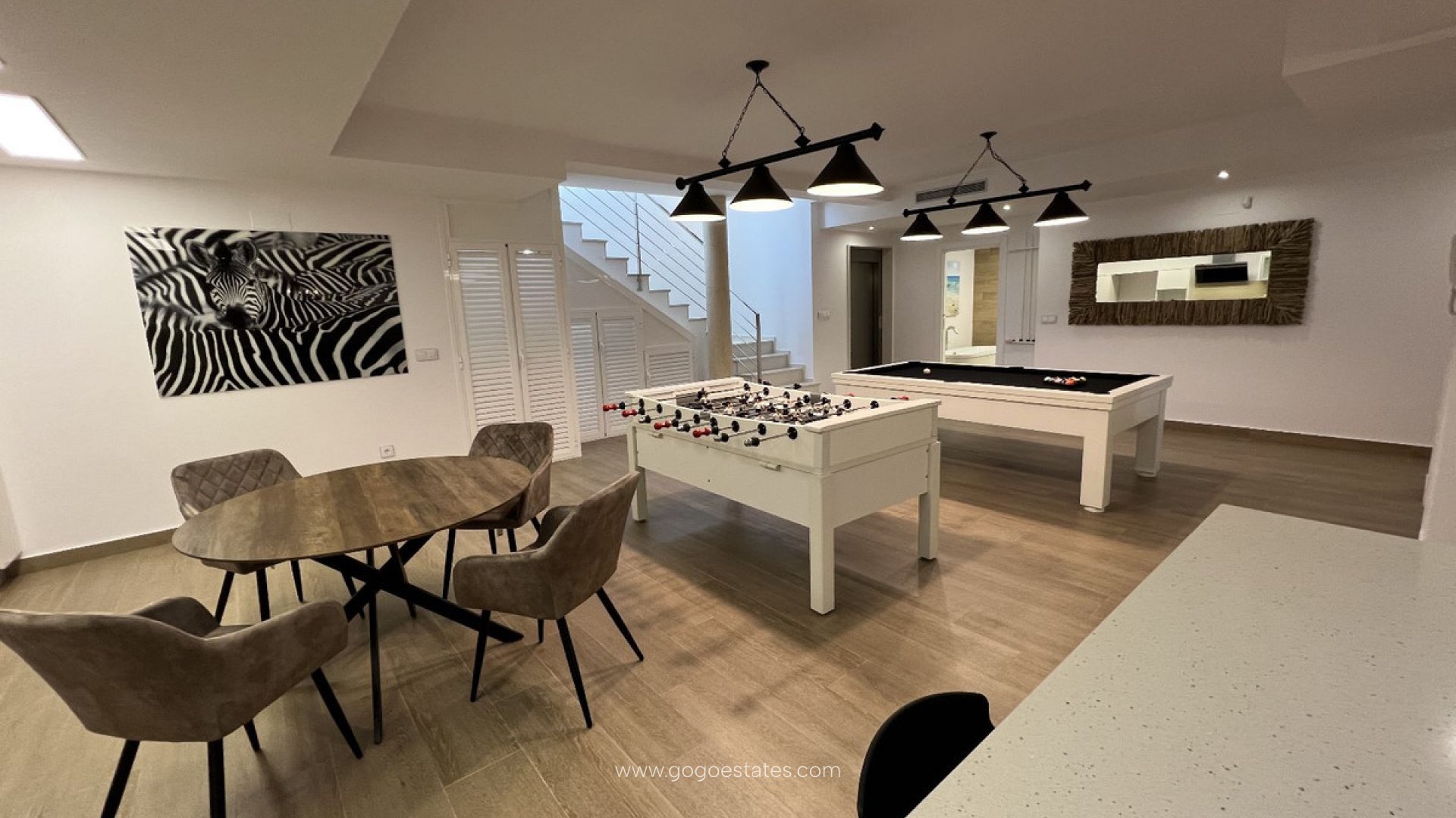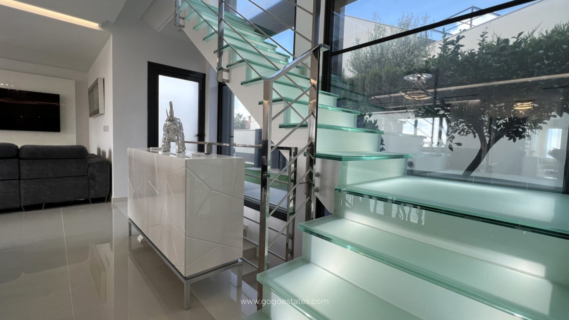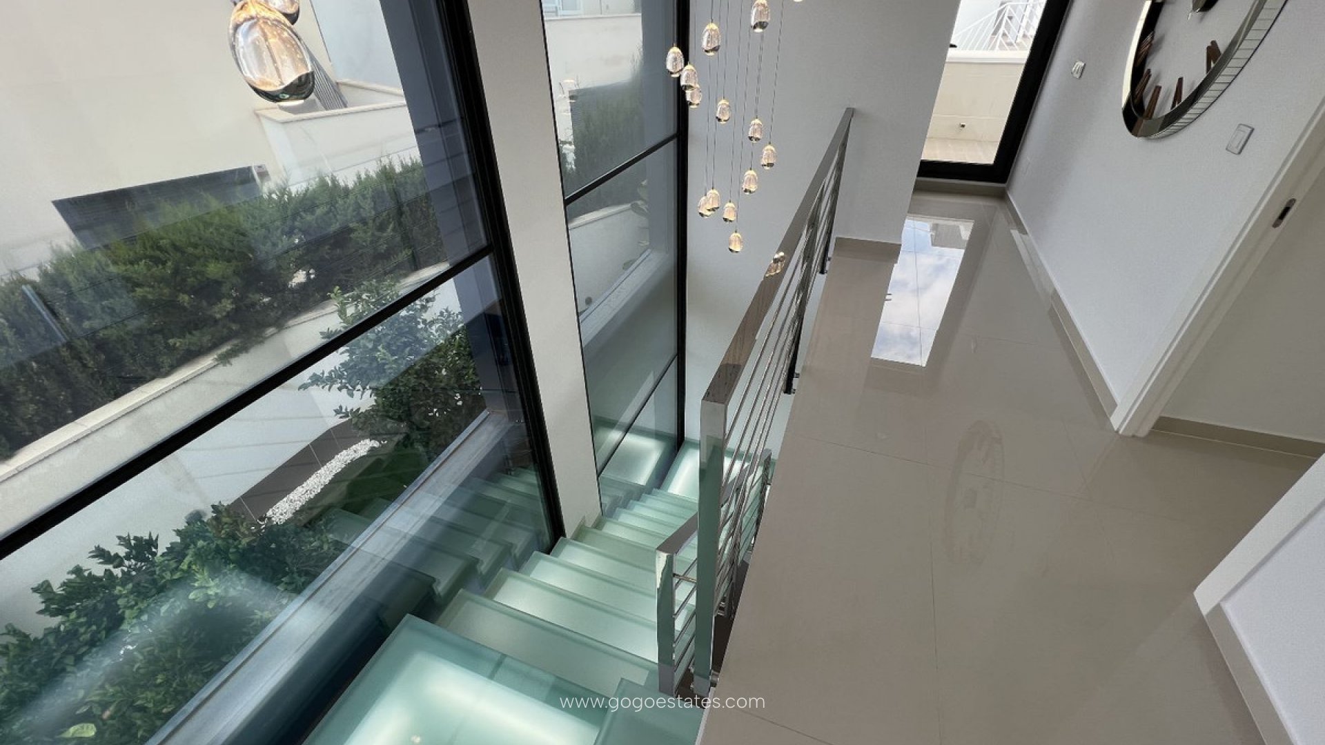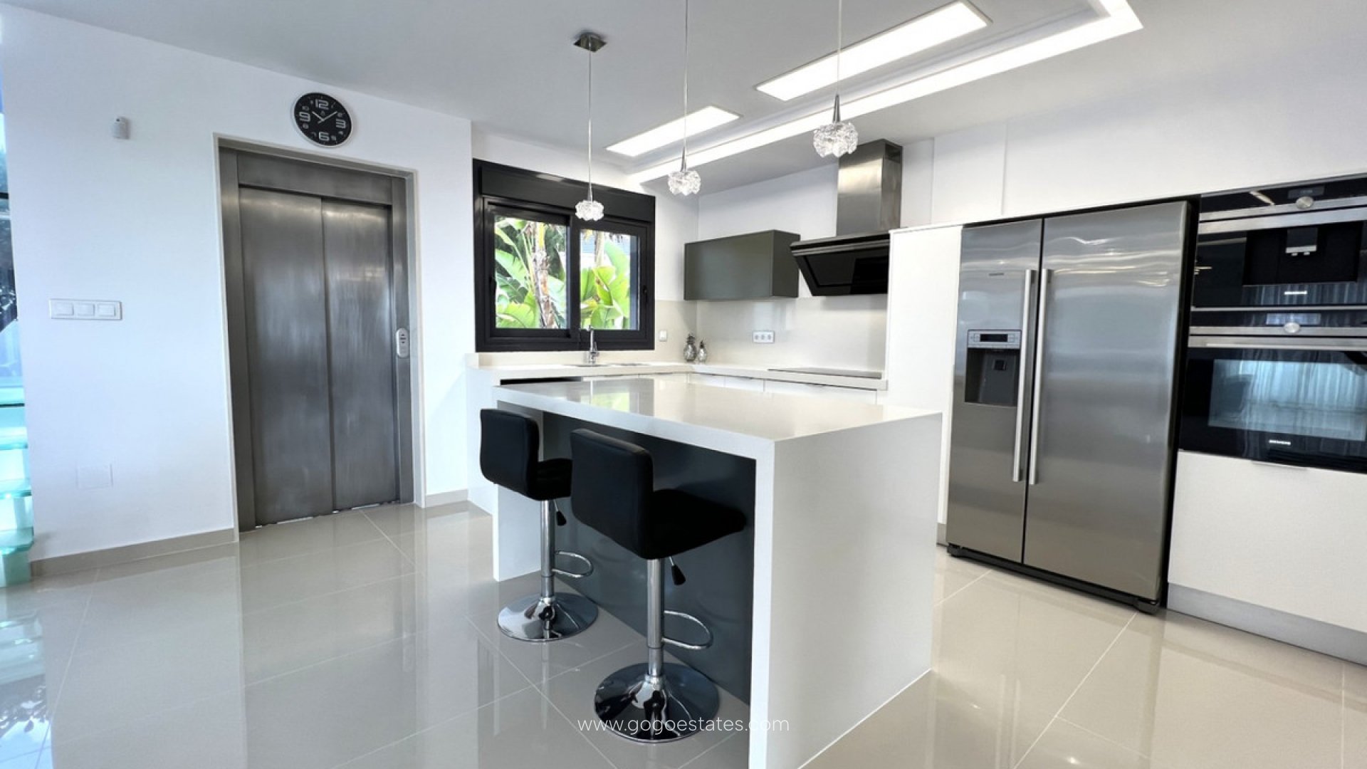 Deze luxe moderne villa beslaat drie verdiepingen en beschikt over 5 slaapkamers en 4 badkamers, met een prachtige glazen trap met ingebouwde led-accentverlichting en een handige commerciële lift die alle verdiepingen naadloos met elkaar verbindt. Het pand ligt in de wijk Las Comunicaciones, op een heuvel en biedt een prachtig open uitzicht op het zoutmeer en de kustlijn daarachter. Het is slechts 2-3 minuten rijden naar het stadscentrum van San Miguel de Salinas, terwijl Villamartin / Orihuela Costa slechts 7 minuten verderop liggen, waardoor alle voorzieningen en attracties van de Costa Blanca Zuid-kustlijn gemakkelijk bereikbaar zijn. De villa beschikt over 5 slaapkamers en 4 badkamers, verdeeld over twee verdiepingen en een XL-kelder. De villa wordt gemeubileerd verkocht. De begane grond verwelkomt u met een open conceptontwerp met een eersteklas keuken met centraal kookeiland, een ruime eethoek, een grote woonkamer met uitzicht op het zwembad en een aparte wasruimte naast de keuken met opbergruimte. Ook op dit niveau vindt u de hoofdslaapkamer met uitzicht op het zwembad, deze ruimte straalt stijl en comfort uit en omvat een grote en-suite badkamer en inloopkast/kleedkamer. De kelder is ontworpen voor entertainment, met een tweede volledige keuken met ontbijtbar, grote woon-/thuisbioscoopkamer, 2 slaapkamers, 1 badkamer met bad en grote berging/wijnkelder. Boven vindt u nog eens 2 en-suite slaapkamers, beide met toegang tot het terras en toegang tot het solarium. Alle niveaus met fantastisch open uitzicht. De tuin beschikt over een BBQ/buitenkeuken, privézwembad met waterval. Genoeg parkeergelegenheid buiten de straat op dit afgesloten beveiligde privéperceel. Neem vandaag nog contact met ons op voor meer informatie en om een bezichtiging te boeken voor deze zeer speciale luxe familievilla!