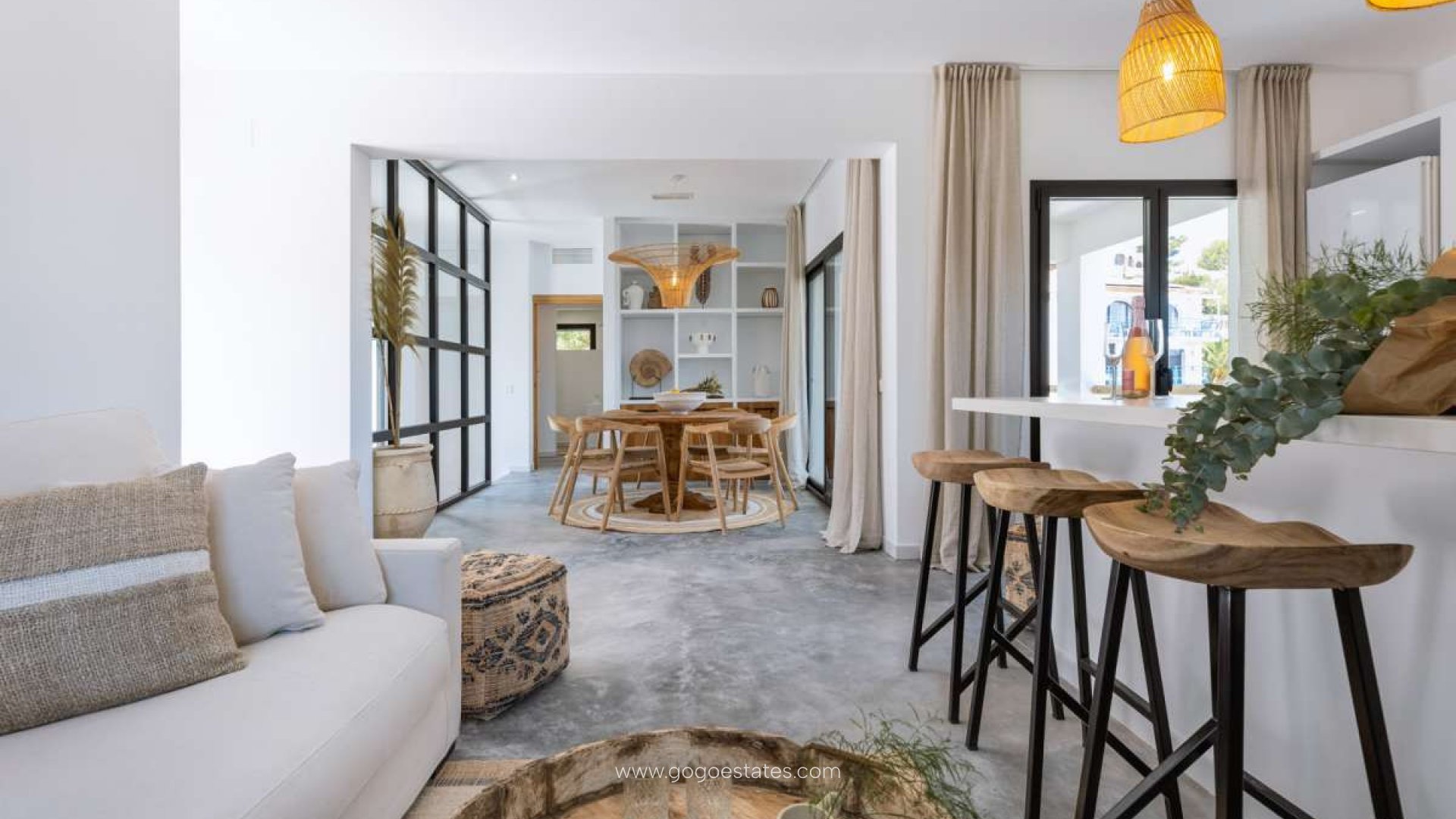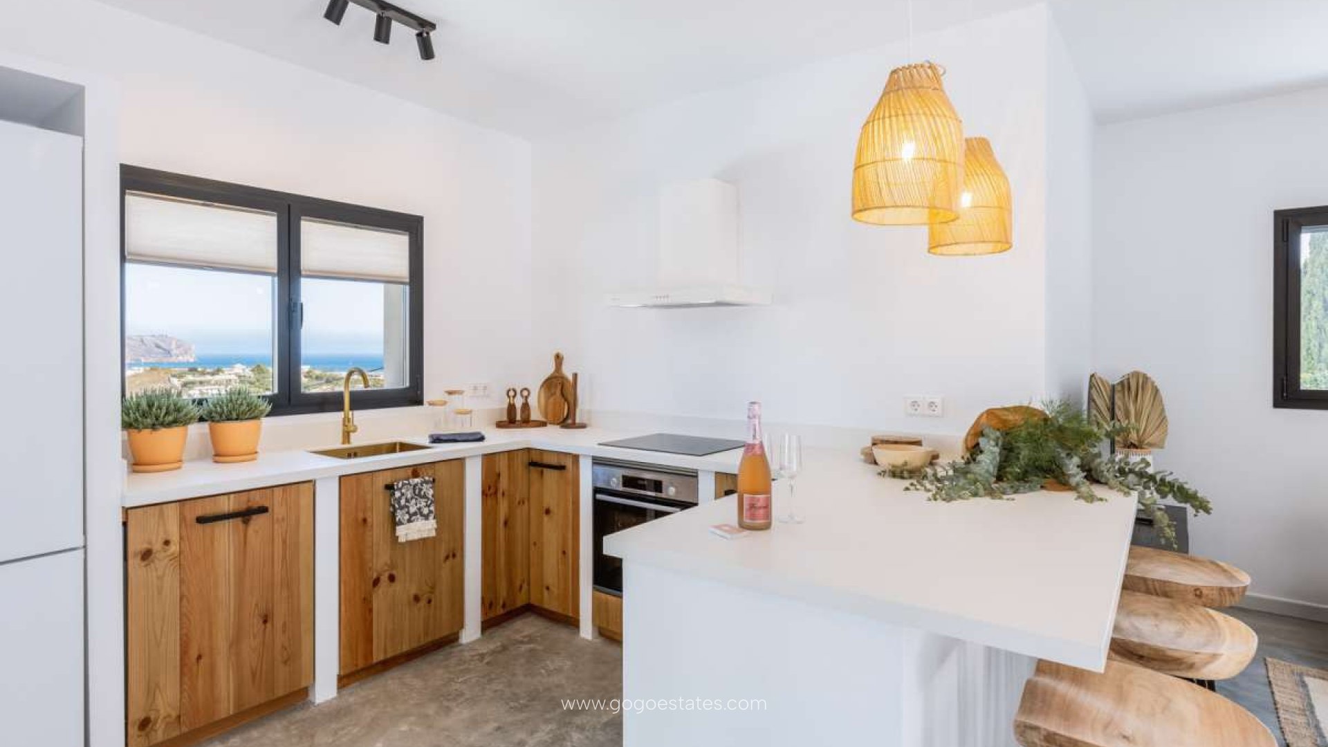 Deze mooie villa biedt een fantastisch uitzicht op Jávea, de baai en de zee. Er zijn drie slaapkamers, elk met een eigen badkamer. De villa bestaat uit twee verdiepingen en elke verdieping heeft een groot overdekt terras waar u kunt genieten van het prachtige uitzicht. Op de bovenste verdieping vindt u een mooie open ruimte met een keuken, een eethoek, een slaapkamer en een badkamer. Beneden zijn er nog twee slaapkamers, elk met een eigen badkamer en een gastentoilet. Buiten is er een terras met een privézwembad en een tuin met prachtige olijfbomen en gezellige zitjes. De renovatie van deze woning zal binnenkort worden afgerond. U kunt de woning ook gemeubileerd kopen, volledig nieuw meubilair.