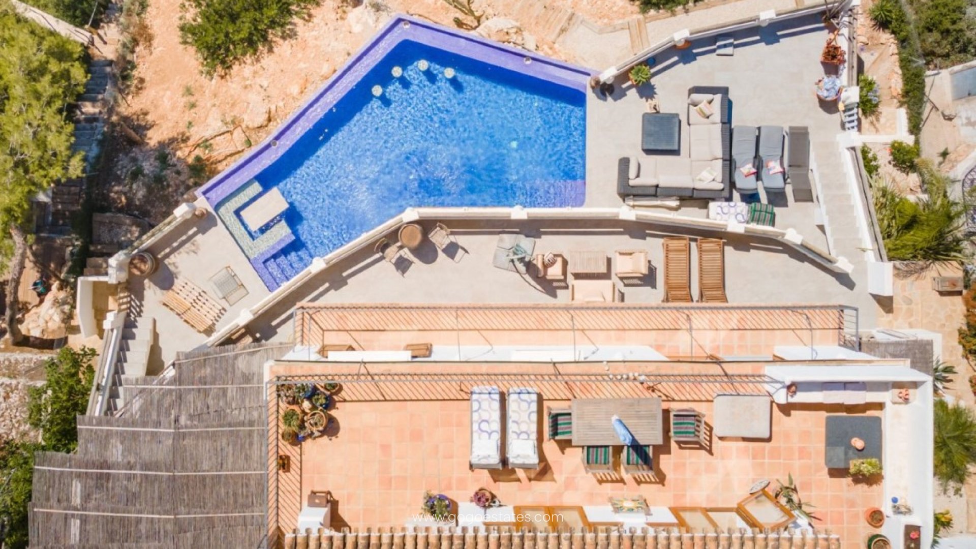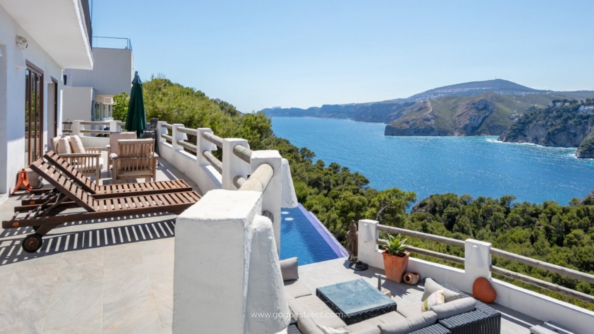 Deze mediterrane luxe villa in de prestigieuze wijk Ambolo – een van de meest exclusieve van de Costa Blanca – direct aan zee. Bij binnenkomst in de villa voelt u de charme en het welzijn die het uitstraalt dankzij diverse mediterrane elementen, zoals de lemen vloer, houten balken en toscaans stenen bogen. Het uitzicht op de groene zone met een overvloed aan bomen, gecombineerd met het oneindige blauw van de Middellandse Zee en de kust, biedt een afwisseling waar u nooit genoeg van zult krijgen. Het huis is verdeeld over 3 verdiepingen en beschikt over 3 slaapkamers en 3 badkamers, een andere ruimte die momenteel wordt gebruikt als kantoor en 2 keukens en woonkamers (waarvan 1 op de benedenverdieping, naast de prachtige buitenkeuken met barbecue voor extra comfort). De woning beschikt over vele terrassen, elk met hetzelfde fantastische uitzicht en de perfecte oriëntatie om de magnifieke zonsondergangen te bewonderen. Een unieke woning op een fantastische locatie en op korte afstand van een van de meest karakteristieke baaien van Jávea.