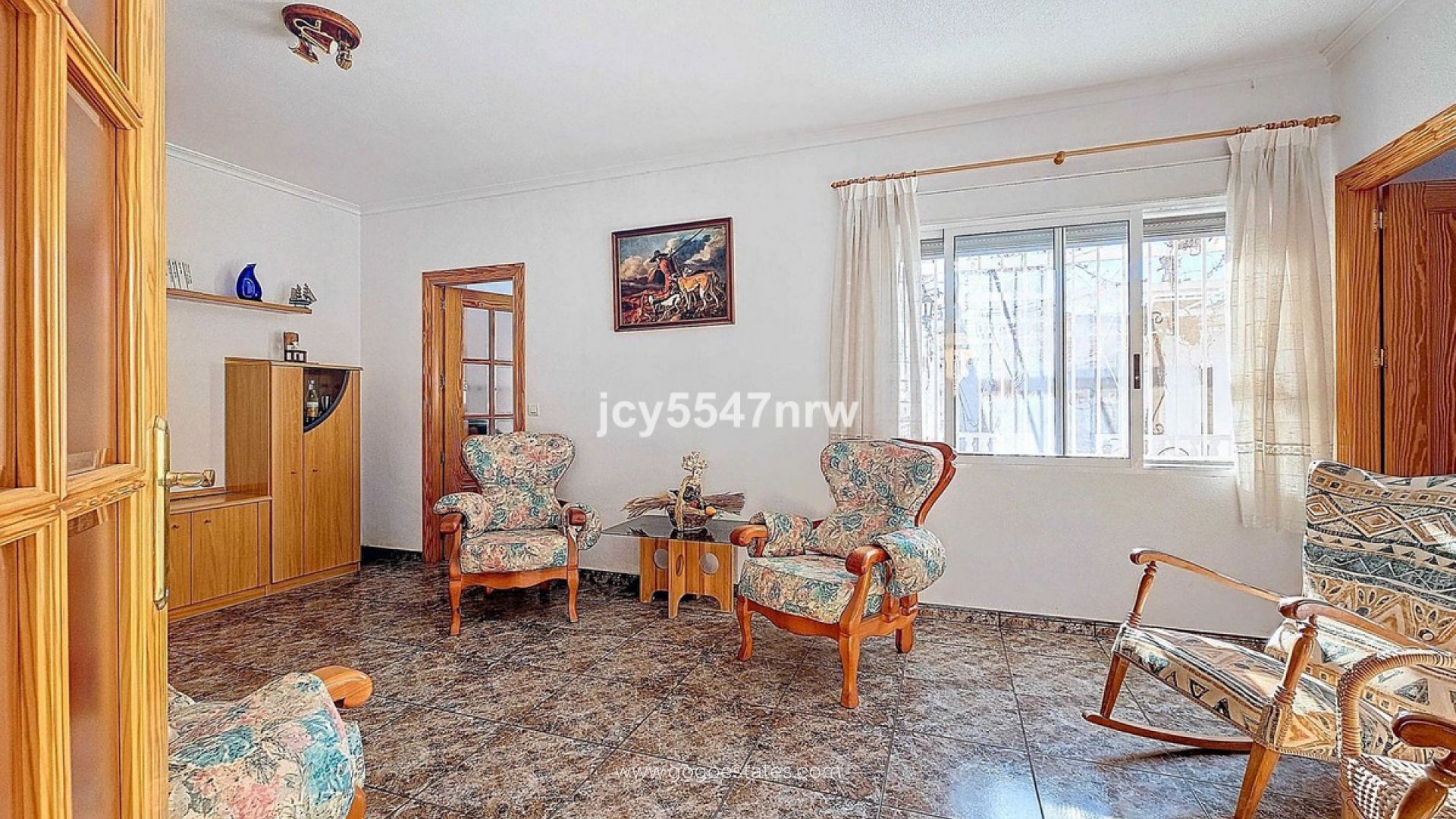 Dorpshuis met riante patio en garage in Pinoso Wonen in het gezellige Pinoso met alle voorzieningen op loopafstand? Op zoek naar een ruime woning met de mogelijkheid om vanuit huis te kunnen werken, gasten te ontvangen of een fijne werkplaats of garage te hebben? De woning Bij binnenkomst van de woning bevinden zich twee slaapkamers aan weerszijde van de gang. Een van de slaapkamers is voorzien van een ruime inbouwkast. Via dubbele deuren is de ruime woonkamer bereikbaar. De woonkamer biedt toegang tot de derde slaapkamer die voorzien is van een aangrenzende badkamer. Vanuit de woonkamer is er ook toegang tot een tweede woonkamer of eetkamer; een gezellige ruimte met open haard en airconditioning (warm/koud) en biedt toegang tot de ruime keuken en riante patio. Buitengedeelte De patio is een heerlijke plek om zowel in de zon als schaduw van het Spaanse leven te genieten. Er is meer dan genoeg ruimte voor het creëren van een barbecue gedeelte of denk aan het plaatsen van een jacuzzi. Vanuit de patio is een tweede badkamer bereikbaar, evenals een bergruimte. Bovendien biedt de patio toegang tot de ruime garage. Er is parkeergelegenheid genoeg in de straat dus deze ruimte zou ook prima kunnen worden gebruikt als bedrijfsruimte aan huis of als gastenverblijf. De patio heeft een aparte toegangsdeur vanuit de achterliggende straat. Pinoso In Pinoso zijn alle dagelijkse voorzieningen beschikbaar, waaronder supermarkten, scholen, een medisch centrum en sportfaciliteiten, evenals een uitgebreid aanbod aan restaurants. Zowel de luchthavens van Alicante en Murcia als de stranden zijn binnen een uur te bereiken. Deze ruime dorpswoning biedt een geweldige kans om te kunnen wonen in het geliefde Pinoso en wordt aangeboden voor een aantrekkelijke vaste prijs die ruimte biedt om desgewenst nog te moderniseren. De woning is aangesloten op elektriciteit, riolering en water en is in goede en nette staat. Laat deze kans niet voorbij gaan en maak nu een afspraak voor een bezichtiging.