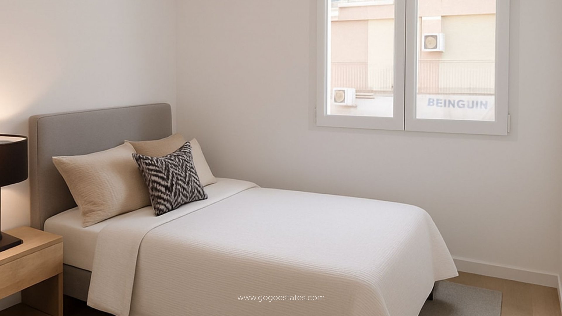 Welkom in uw nieuwe appartement met zeezicht in het kloppende hart van Benidorm. Dit onberispelijke appartement is volledig gerenoveerd tot een zeer hoge standaard en beschikt over twee tweepersoonsslaapkamers, twee badkamers met inloopdouches (waarvan één ensuite) en een ruime en lichte open woonkamer met een volledig ingerichte Franse keuken en een groot raam met een prachtig uitzicht op zee. Het appartement is voorzien van warme en koude airconditioning met wifi in de woonkamer en beide slaapkamers, nieuwe zachte vloeren, hoogwaardige dubbele beglazing in het hele appartement, nieuwe elektrische installaties en sanitair, plus tv-aansluitingen in beide slaapkamers en de woonkamer. Gelegen op 120 meter van het strand en op loopafstand van alle voorzieningen die u nodig heeft, plus de haven, Parque de Elche (Duivenpark), Cala del Mal Pas (het oorspronkelijke stadsstrand) en de oude stad. Properties Spain by eXp voegt bovendien een meubelpakket toe om u te helpen "uw leven in uw nieuwe huis te beginnen". Twee driedeurs kledingkasten, vier nachtkastjes, een queensize hemelbed met matras, twee eenpersoonsbedden van 90 cm met matras, een chaise longue, een salontafel, een eettafel, vier eetkamerstoelen en een tv-meubel. Deze worden na aankoop geleverd en gemonteerd.
