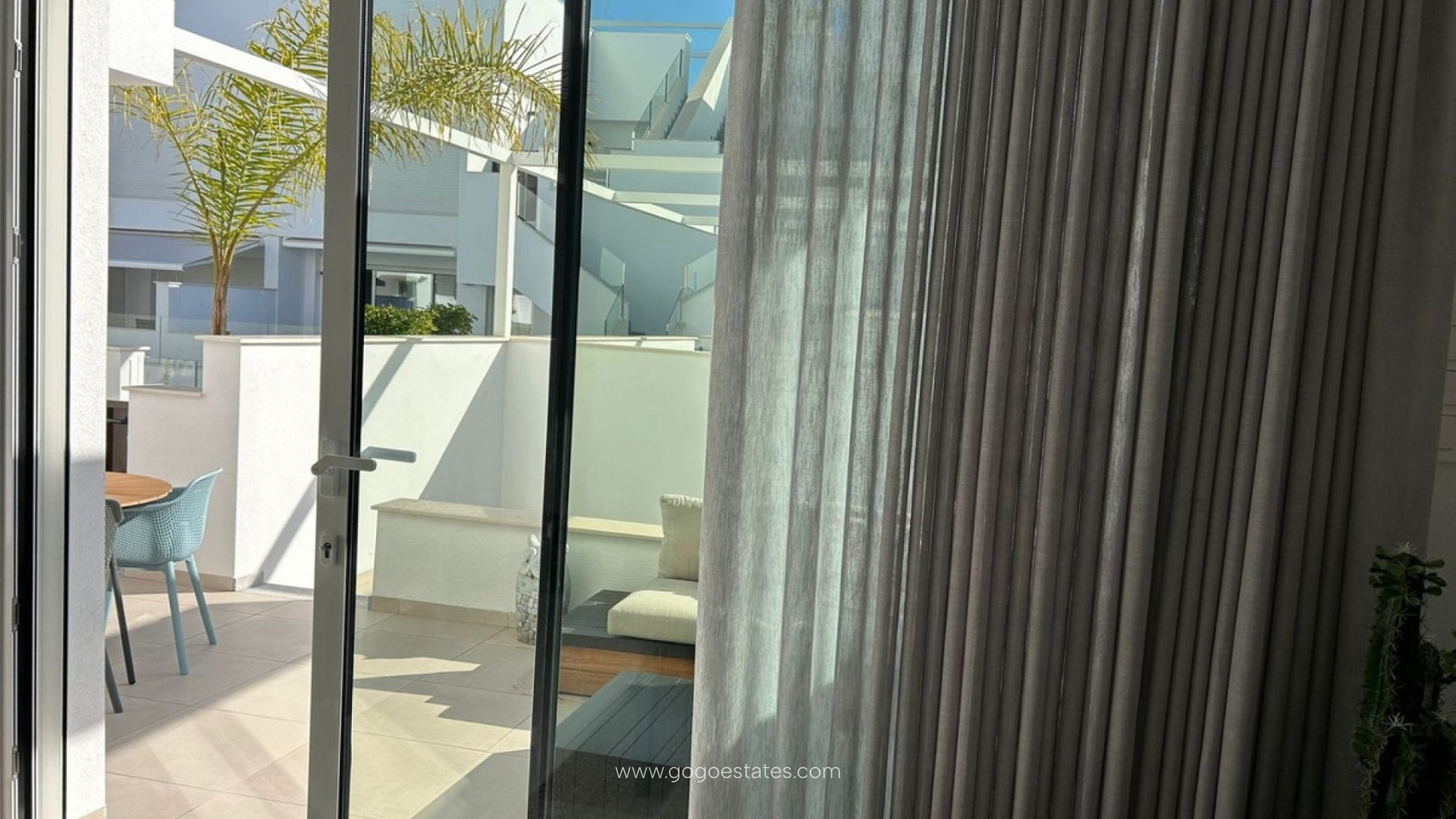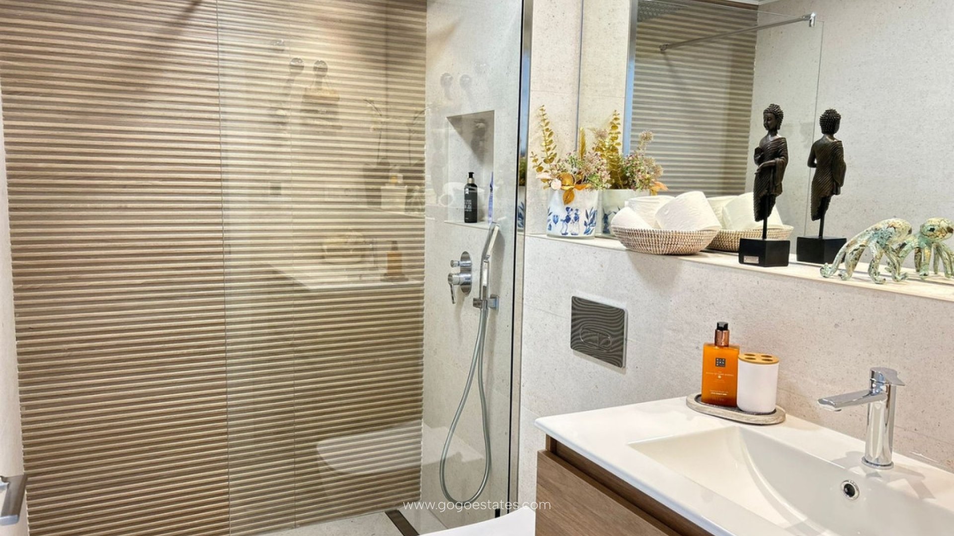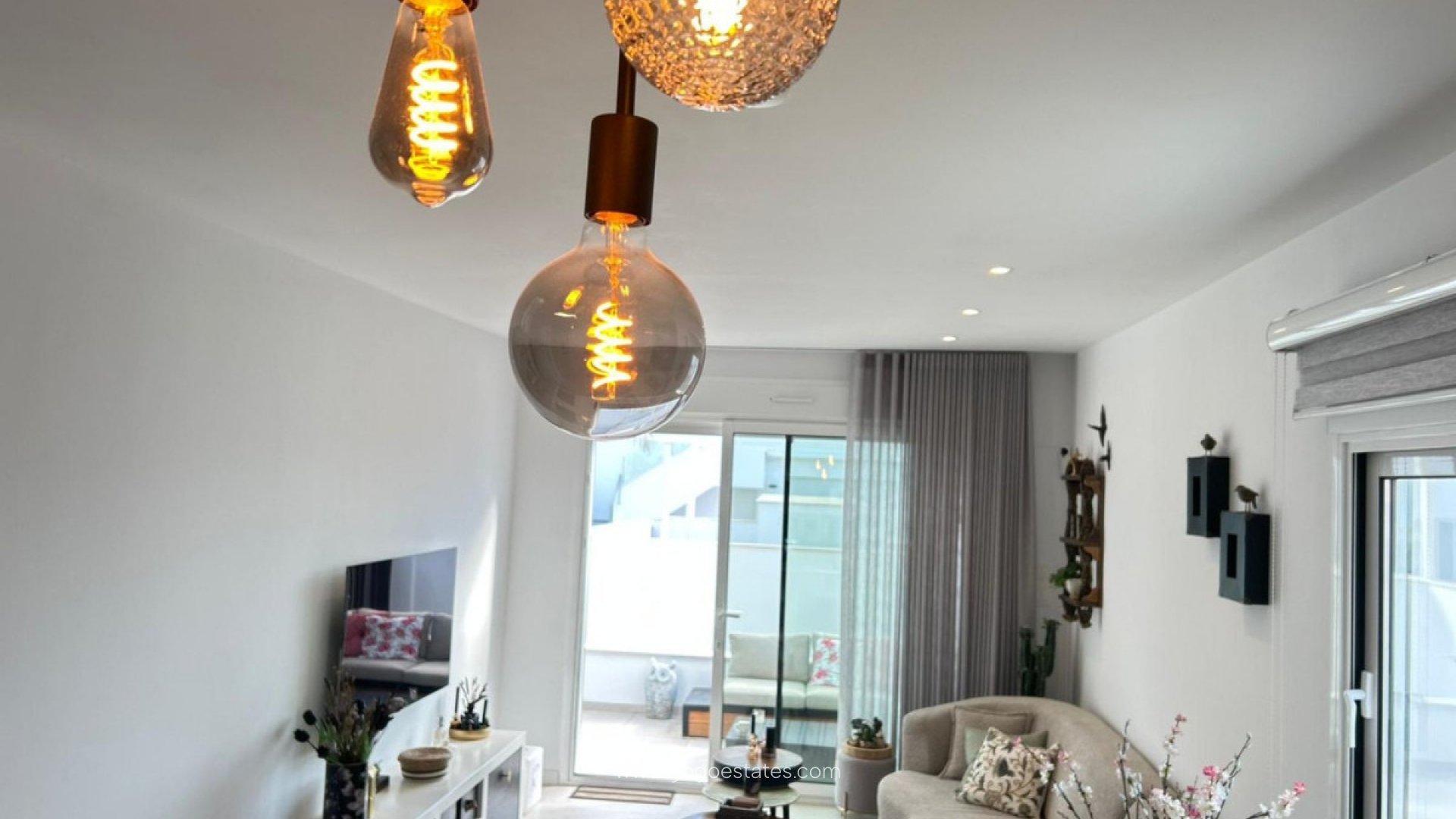 De buitenruimtes zijn ideaal om het hele jaar door van het mediterrane klimaat te genieten. De achtertuin biedt ruimte voor zonnebaden, terwijl u in de voortuin kunt ontspannen in de schaduw. Als hoek appartement profiteert deze woning van extra privacy en een ruimtelijk gevoel.