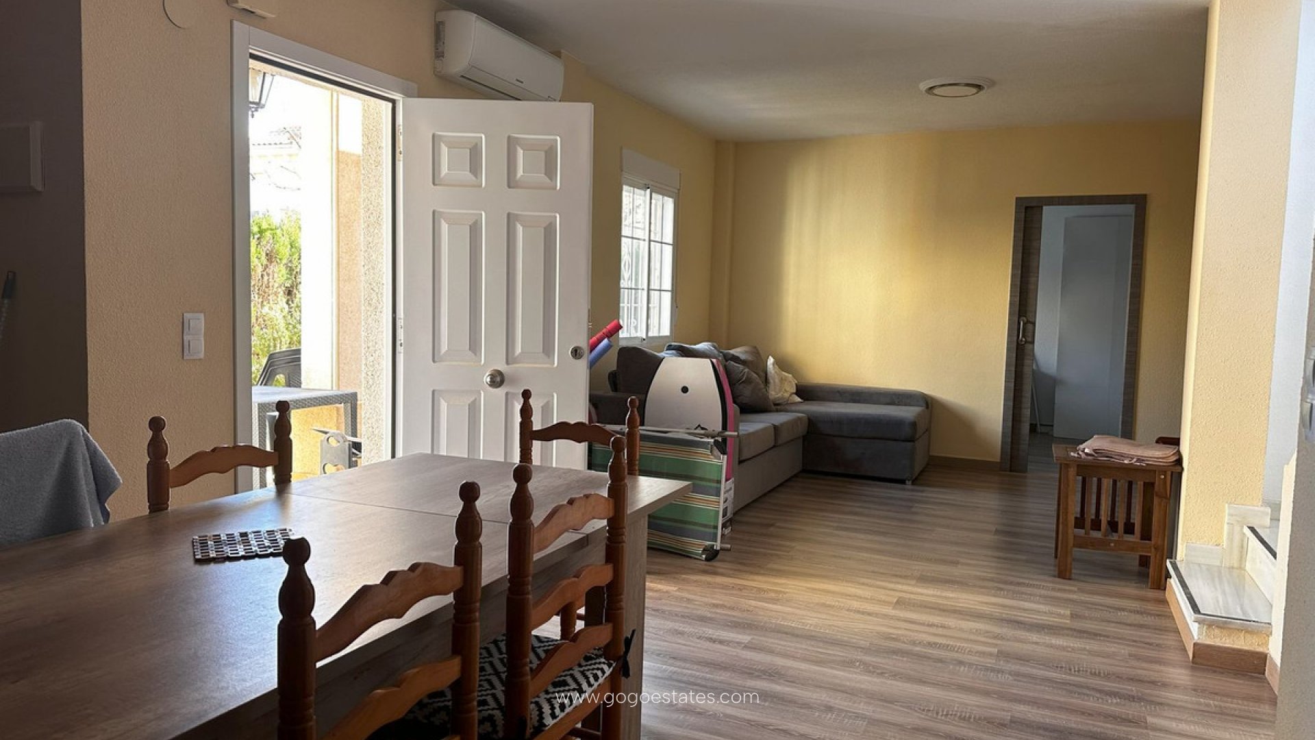 Tussen de twee meren van Torrevieja, op een steenworp afstand van alles! Vandaag presenteren wij deze woning met 3 slaapkamers, een ruime woon-eetkamer, een kleine tuin, een solarium en een zwembad op een steenworp afstand. Ideaal gelegen op 8 minuten van het strand en dicht bij alle voorzieningen! 3 slaapkamers, 2 badkamers, eetkamer + woonkamer 38 m², zomerwoonkamer 10 m², airconditioning op de begane grond, ingerichte keuken, terras en tuin met bomen, groot solarium 22 m², gemeenschappelijk zwembad op een steenworp afstand van de woning. Locatie: 8 min. van het strand van La Mata, 3 min. met de auto naar de supermarkt, 5 min. met de auto naar het Quiron-ziekenhuis, 40 min. van de luchthaven van Alicante.