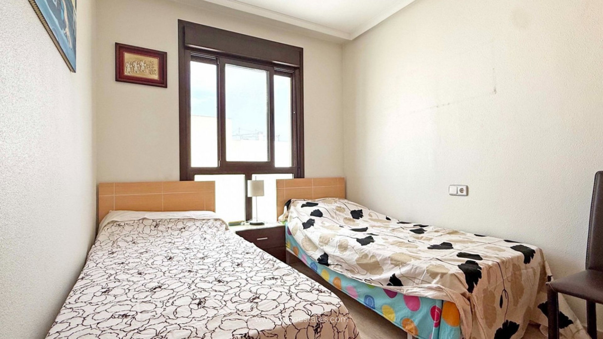 Welkom in dit lichte en ruime appartement op de vierde verdieping, midden in het centrum van Torrevieja, op loopafstand van de boulevard, winkels en voorzieningen. Het appartement beschikt over 3 slaapkamers, 2 badkamers en een oostelijk gelegen balkon met uitzicht op het gemeenschappelijke zwembad – ideaal om 's ochtends van de zon te genieten. De woon- en eetkamer heeft airconditioning en wordt gemeubileerd verkocht, klaar om in te trekken. Gelegen in een goed onderhouden gebouw met lift en groot gemeenschappelijk zwembad, perfect als vakantieverblijf, vaste woning of verhuurinvestering.