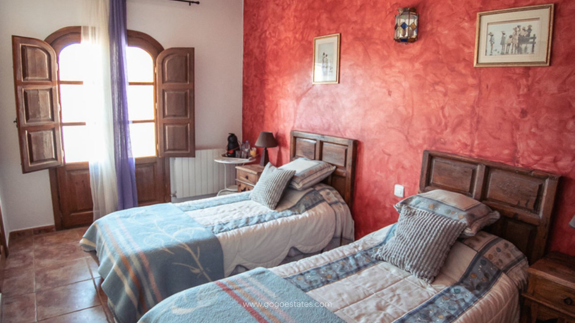 Gelegen in 18 hectare (ca. 45 hectare) grond die volledig rondom het pand ligt, geeft deze woning een compleet en rustig gevoel in een prachtige omgeving met uitzicht op de bergen in alle richtingen. Er zijn veel volgroeide tuinen en 3 patio's waar u kunt zitten en ontspannen en samen met dit is er een prachtig zwembad van 12m x 5m, diepte 1 meter tot 1,4 meter met een buitendouche. De woning heeft leidingwater, elektriciteit en wifi. Dit gevestigde fantastische landhuis is in de loop van een aantal jaren volledig gerenoveerd tot een uitzonderlijk hoge standaard met behoud van veel van de karakters die u zou verwachten van een traditioneel Spaans landhuis en het pand is gemakkelijk toegankelijk vanaf een geasfalteerde weg met een eigen oprit die leidt naar een grote parkeerplaats. Ook hier vindt u een garage en paddock met aparte werkplaats en opslagruimte voor iedereen die paarden wil houden. Er zijn zoveel extra kenmerken van kwaliteit en uitzonderlijke smaak die echt moeten worden gezien om te worden gewaardeerd dat het een must is om dit huis aan uw kijklijst toe te voegen. Hier zijn enkele van de belangrijkste kenmerken van de accommodatie. Hoofdgebouw - 1e verdieping: 2 grote loungeruimtes, beide met open haarden, een heeft beneden toilet en bergkast met trapopgang naar de 2e verdieping. Slaapkamer volledig ingericht met een en-suite. Ontvangstruimte met open haard. Kantoor met bergkast. Keuken inclusief groot fornuis, 2 spoelbakken, 3 koelkasten, wasmachine en vaatwasser en centrale tafel met marmeren blad en opslag. Slaapkamer met en-suite off keuken de binnenplaats, met kasten, rekken en een en-suite. Hoofdhuis - 2e verdieping: 5 grote slaapkamers allemaal met en-suites en allemaal volledig ingericht, allemaal met Juliet balkons en een spectaculair uitzicht op de bergen. De accommodatie heeft een hotellicentie voor 5 verhuurkamers, die momenteel worden gebruikt voor motorklanten die normaal gesproken jaarlijks bezoeken en als een potentiële nieuwe eigenaar het rijbewijs wil voortzetten en het pand als een klein landhotel wil runnen, is dit indien nodig beschikbaar. Gehecht aan het pand op de 2e verdieping met eigen binnenplaats en ingang is een zelfstandige flat bestaande uit een slaapkamer met inbouwkasten, een badkamer en een lounge met ingebouwde keuken met koelkast en fornuis. Kortom een geweldige woning met een huidig inkomen dat geschikt is voor iedereen die rechtstreeks naar een zakelijke kans in de zon wil lopen. * 2 verdiepingen * Bebouwde 404 m² * Grond 10,83 hectares * Prive zwembad * Openbaar waternet * Elektriciteit aangesloten op het netwerk * Telefoon mogelijk * Internet mogelijk * Meubelen over te nemen * Privé terras * Prive parkeerplaats * IBI onroerende voorheffing: 197,92€ per jaar * Vuilnis ophaling: 47,36€ per jaar
