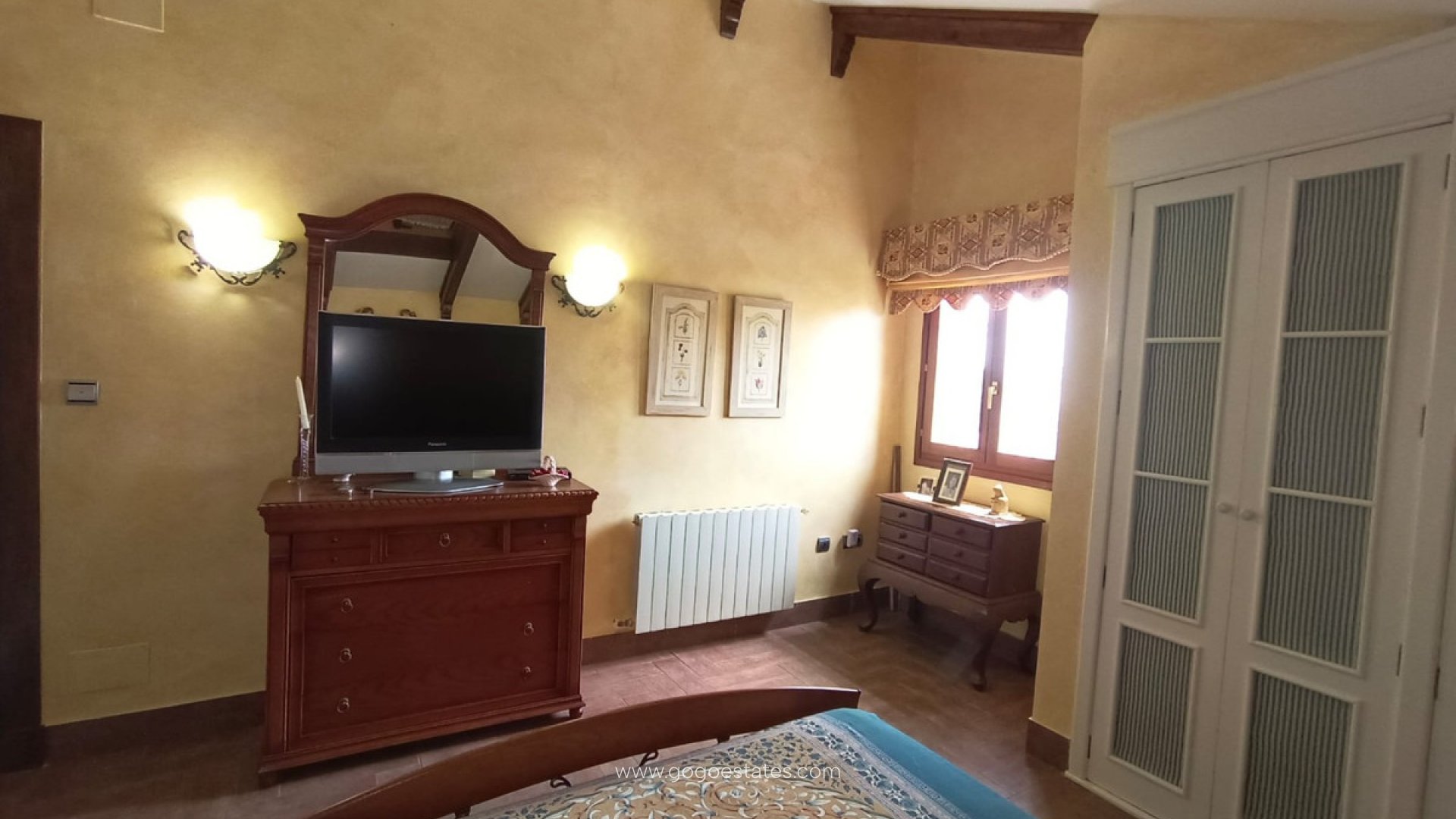 Finca in Paraje del Copo de Piñero, Tercia, Lorca Situatie: Gelegen in de omgeving van Copo de Piñero, in de regio Tercia, gemeente Lorca, in de regio Murcia, Spanje, bevindt dit landelijke huis zich in een rustige en schilderachtige landelijke omgeving. Algemene kenmerken: Totale grootte van de eigendom: De eigendom is volledig omheind en biedt privacy en veiligheid. Omgeving: Omgeven door de natuur, biedt de finca een serene omgeving met uitzicht op het typische landelijke landschap van de regio. Perifere gebieden: Zwembad: Privézwembad om te genieten van de warmere maanden. Tuin: Goed onderhouden groene ruimtes, ideaal voor buitenactiviteiten. Overdekte garage: overdekte parkeerplaats beschermd tegen de elementen. Overdekte veranda: Een grote overdekte glazen veranda, ideaal om te ontspannen en te genieten van de omgeving in elk seizoen. Accommodatie: De eigendom beschikt over twee onafhankelijke accommodaties, beide gedeeltelijk gemeubileerd, die mogelijkheden bieden voor persoonlijk gebruik en mogelijke verhuur- of plattelandstoerismeprojecten. Eerste huis: Indeling: Hal: Ingang met hoge plafonds die een gevoel van ruimte geven. Ruime woon-/eetkamer: ruim en licht, met bar en open haard, ideaal voor bijeenkomsten en ontspanningsmomenten. Keuken: Volledig uitgerust, met aangrenzende bijkeuken. Complete badkamer: ruim en comfortabel. Voorzieningen: Radiatoren met stookolieketel voor verwarming, wat comfort garandeert tijdens de koude maanden. Tweede huis (twee verdiepingen): Benedenverdieping: Eetkamer: gezellige en functionele ruimte. Keuken: Volledig uitgerust, met bijkeuken. Complete badkamer: comfort en functionaliteit. Slaapkamer: Een slaapkamer op de begane grond, praktisch en toegankelijk. Bovenverdieping: Toegankelijk via een mooie houten trap. Vier slaapkamers: ruim, allemaal met inbouwkasten. Complete badkamers: Twee badkamers, een ervan en suite, voor meer comfort. Ontspanningsruimte: Extra ruimte om te ontspannen of als speel-/werkruimte. Voorzieningen: Elektrische ramen en dakramen die uitstekende natuurlijke verlichting bieden. Omgevingsmuzieksysteem in het hele huis voor een aangename sfeer. Radiatoren met stookolieketel en warmtepomp verdeeld over slaapkamers en woonkamer voor optimale airconditioning gedurende het hele jaar. Samenvatting: Deze cortijo gelegen in de wijk Copo de Piñero, Tercia, Lorca, is ideaal voor wie op zoek is naar een oase van rust op het platteland, met alle moderne gemakken. Met zijn twee onafhankelijke huizen, privézwembad, ruime tuinen, overdekte garage en glazen terras biedt het meerdere mogelijkheden voor woongenot en de ontwikkeling van toeristische of verhuurprojecten. De combinatie van modern en rustiek, samen met een uitzonderlijke natuurlijke omgeving, maken deze eigendom tot een juweel van de regio Murcia.