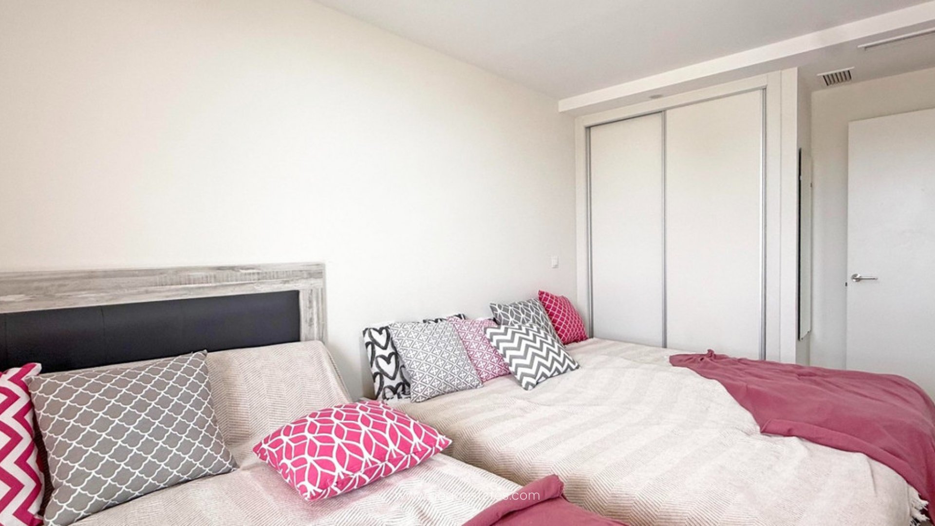 Geniet van luxe wonen aan zee in dit moderne appartement op de 8e verdieping van het prestigieuze wooncomplex Los Flamencos in Playa Paraíso, Cartagena. Gelegen direct aan het strand, biedt dit volledig gemeubileerde appartement een adembenemend uitzicht op de Mar Menor en de Middellandse Zee vanaf een ruim balkon. De woning heeft 3 slaapkamers, 2 badkamers, airconditioning, een ondergrondse parkeerplaats en berging – ideaal als vakantiewoning, permanente bewoning of investering. Belangrijkste kenmerken: 3 slaapkamers 2 badkamers Groot balkon met zeezicht Gemeubileerd & met airco Ondergrondse garage & berging Gemeenschappelijke voorzieningen: Zwembad aan het strand Binnen-spa Fitnessruimte Tuinen en picknickzone Kantoorruimte & evenementenruimte Hondenpark & vogeluitkijktoren Speeltuin