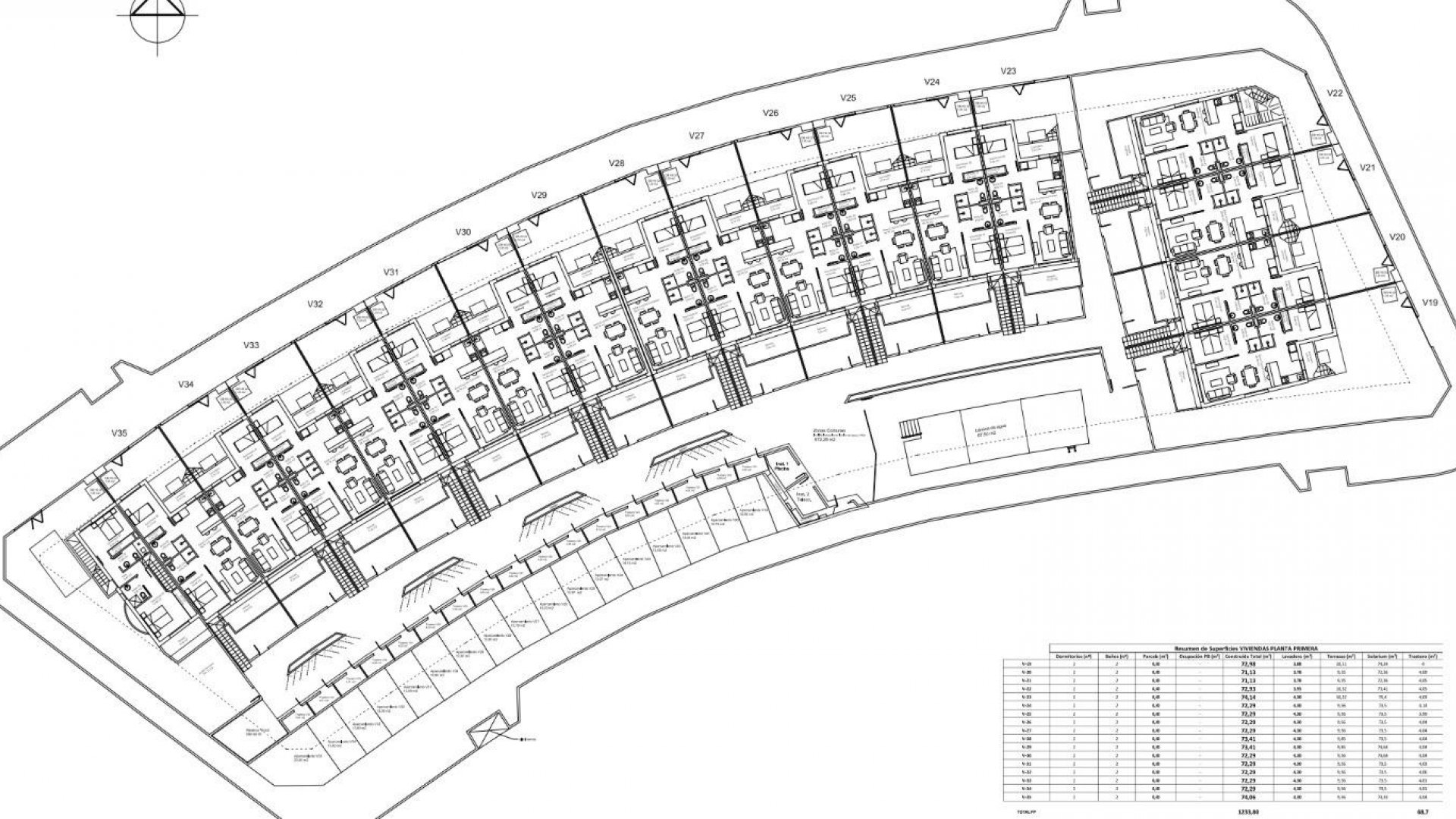 NIEUWBOUW VAN BUNGALOWAPPARTEMENTEN IN PILAR DE LA HORADADA Nieuwbouw van moderne bungalowappartementen in Pilar de la Horadada. Nieuwbouw bungalows hebben 2 slaapkamers, 2 badkamers, open keuken met ruime woonkamer, inbouwkasten, terras. Bungalows op de begane grond met privétuin en bungalows op de bovenste verdieping met privésolarium. Alle woningen hebben een eigen parkeerplaats en berging. Pilar de la Horadada is een typisch Spaans dorp in het meest zuidelijke deel van de Costa Blanca. De grote hoofdstraat heeft supermarkten, veel winkels, restaurants en bars en een aantal mooie pleinen. De prachtige stranden van Torre de la Horadada en Mil Palmeras met boulevard van fijn zand liggen op slechts 5 minuten afstand. De luchthavens van Corvera (Murcia) en Alicante liggen op respectievelijk 40 en 55 minuten afstand.